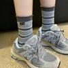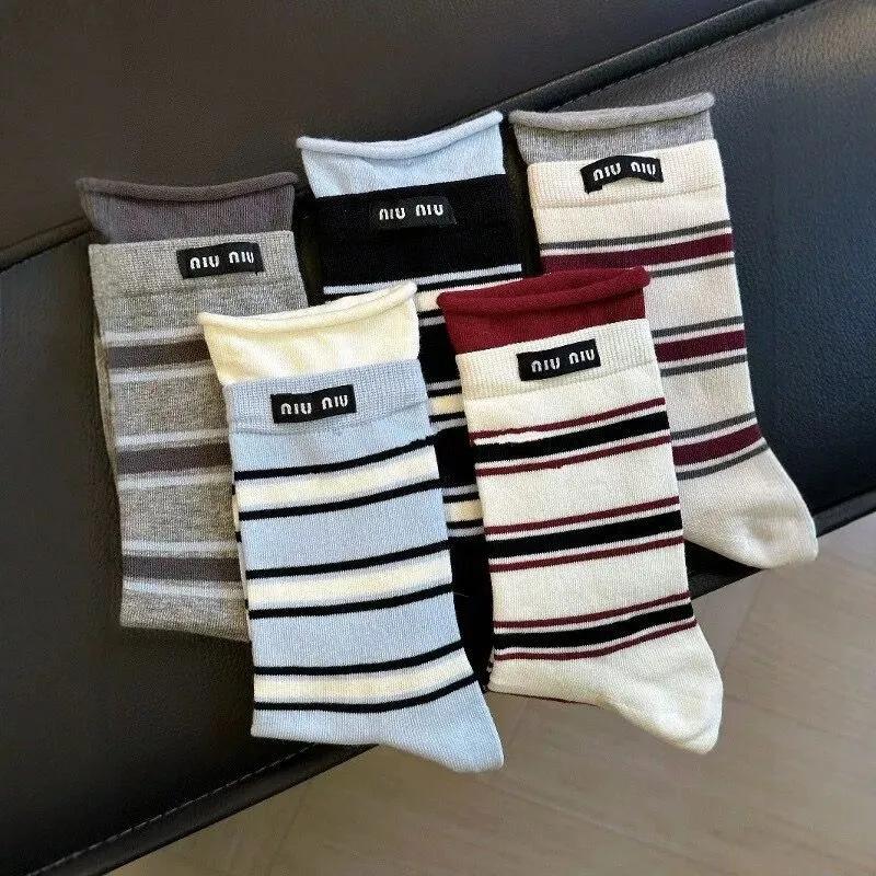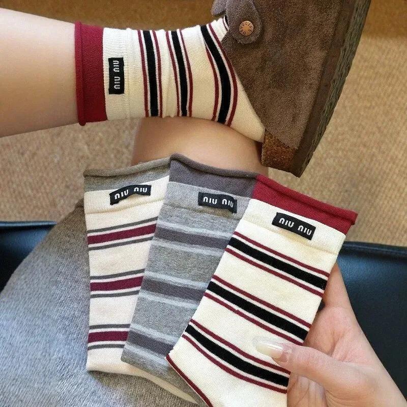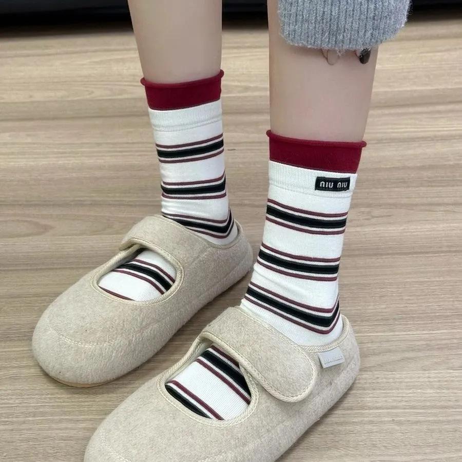 Calcetines a Rayas Estilo Coreano para Mujer, Calcetines a Media Pantorrilla, Verano Bloque de Color Nuevo Ins Retro Japonés Primavera y Otoño Versátil Deportivo Moderno