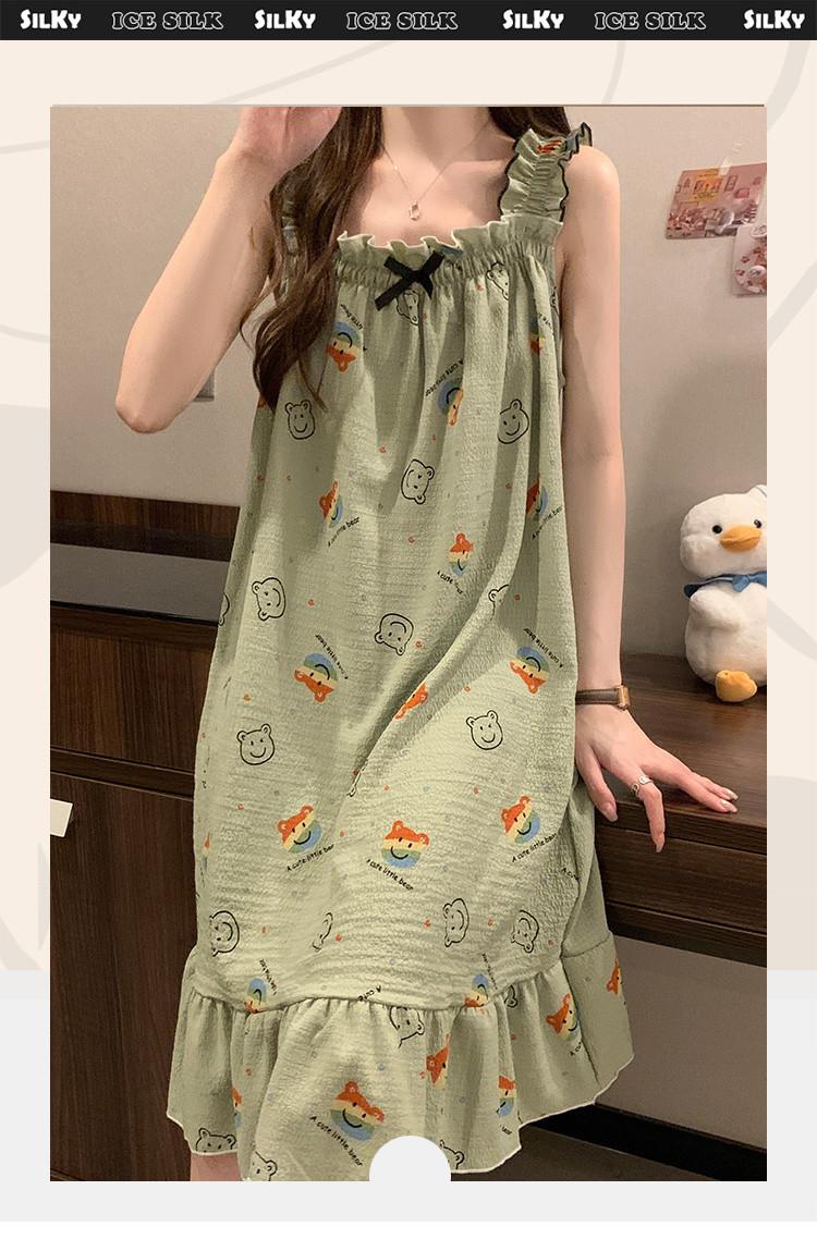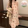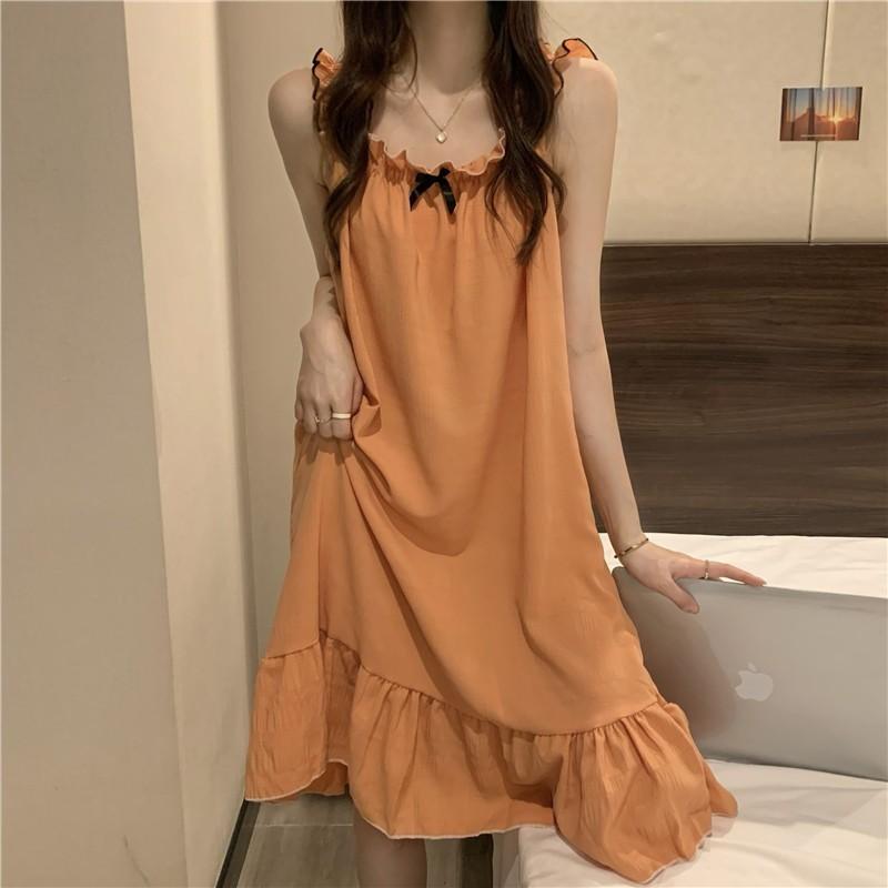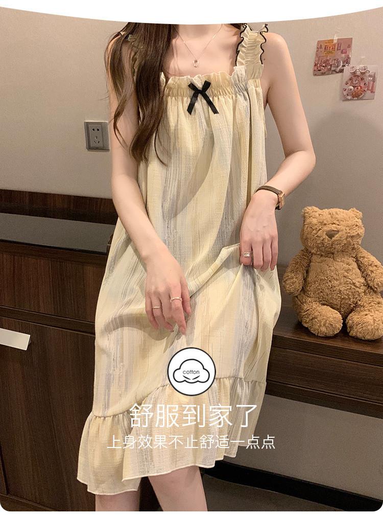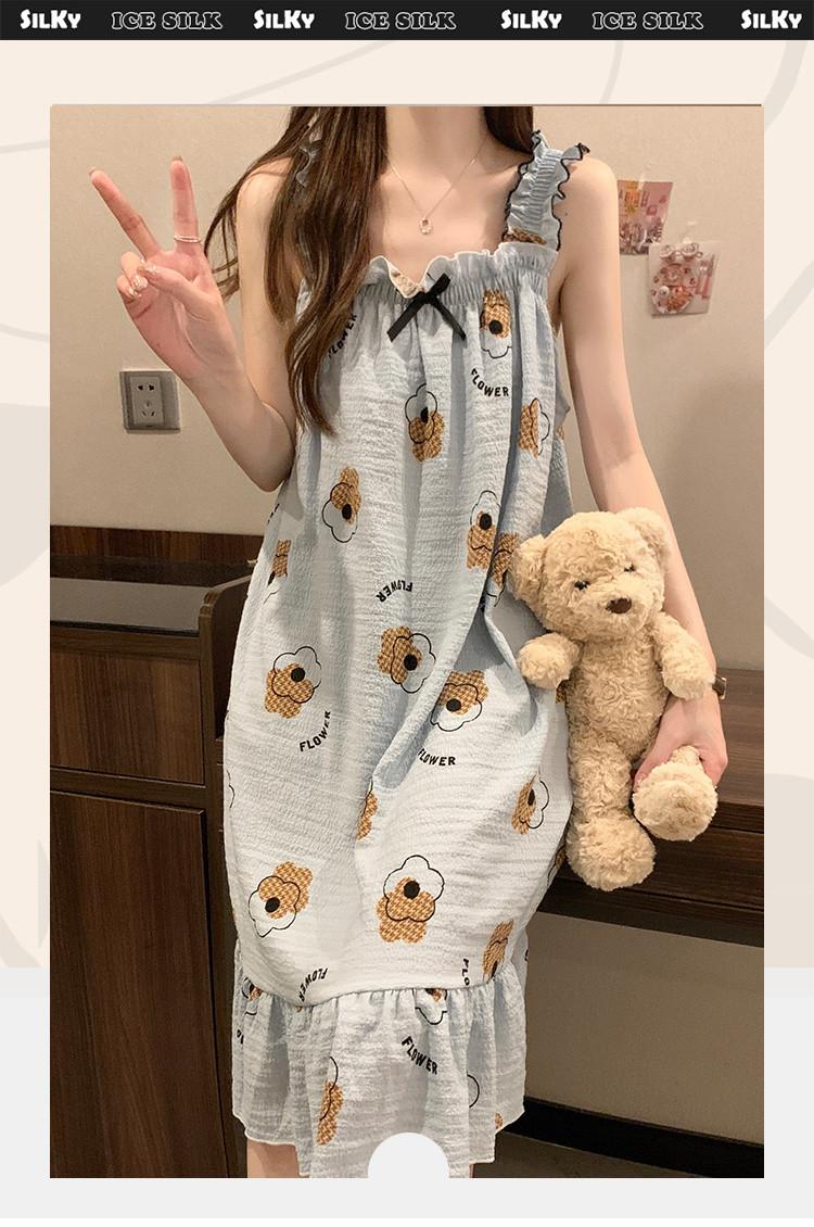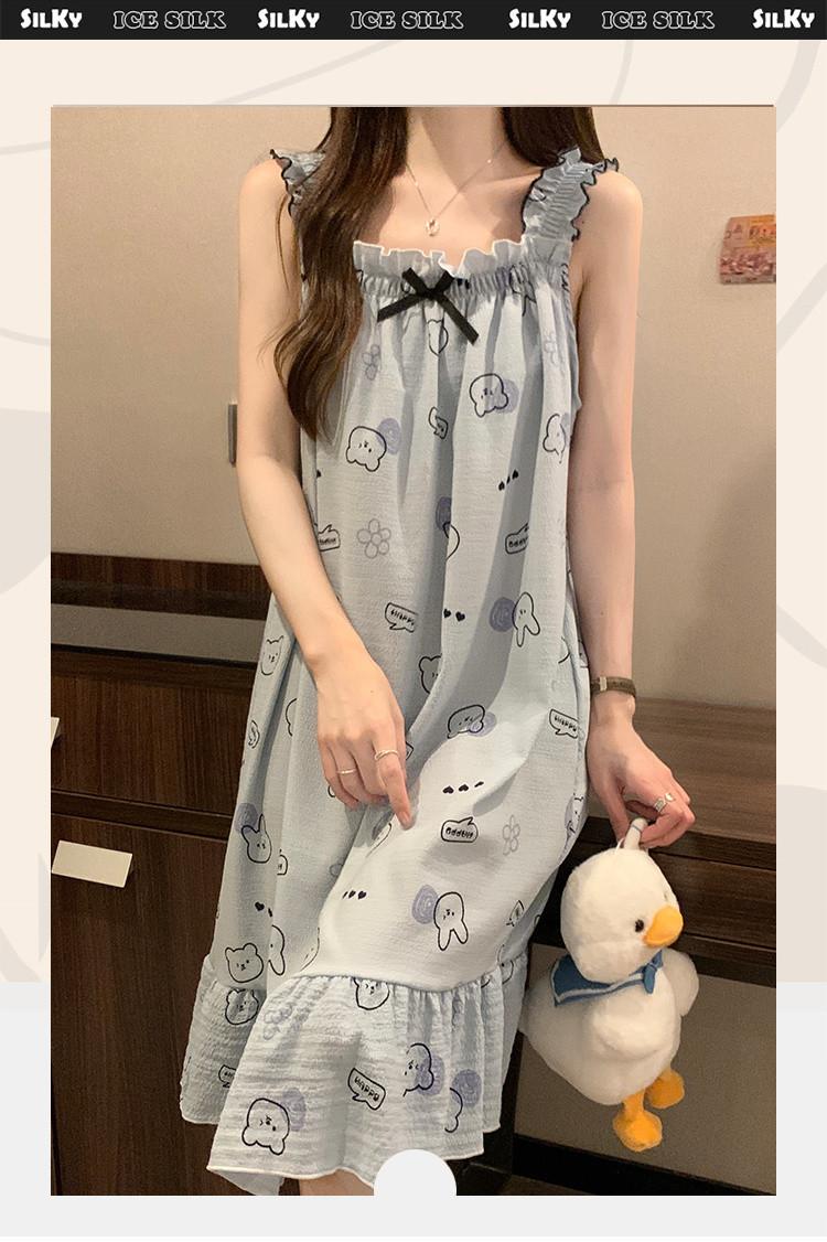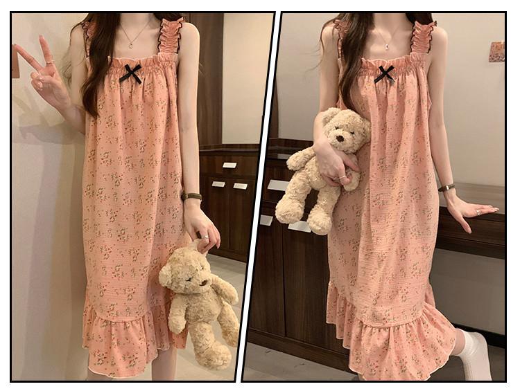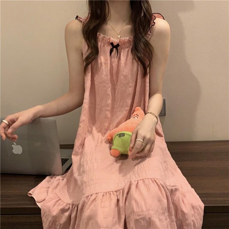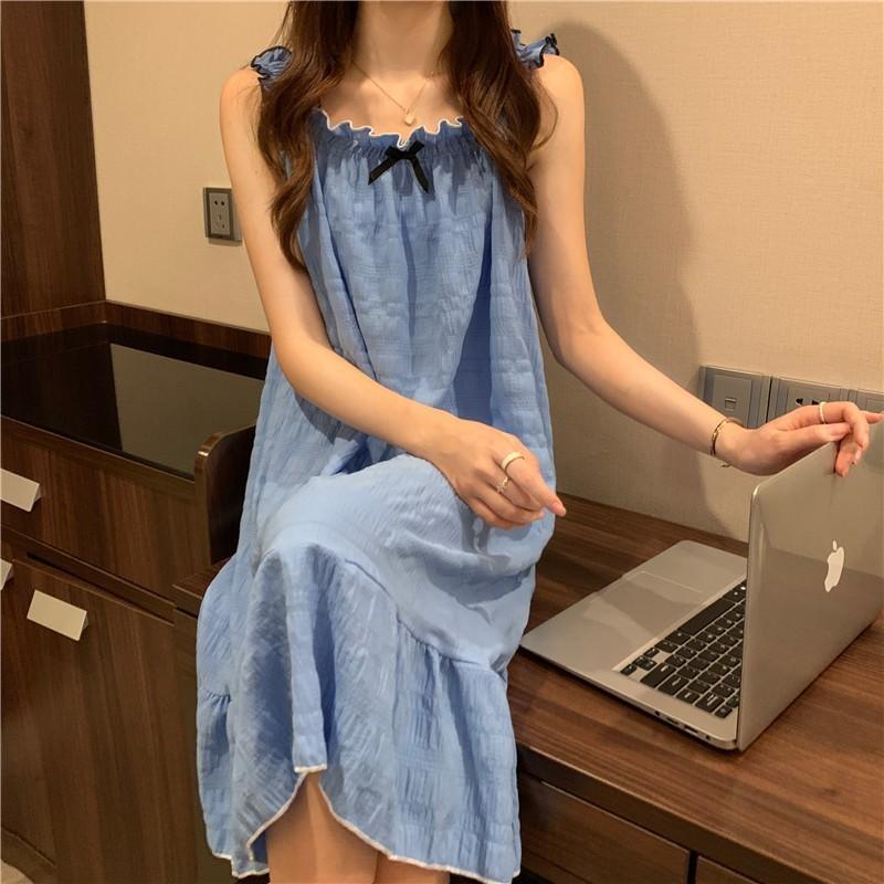 Gran Venta Pijamas Estilo Princesa con Almohadillas para el Busto Verano Nuevo Estilo Puro Lujuria Camisón de Tirantes de Largo Medio y Manga Corta Ropa de Casa para Mujer