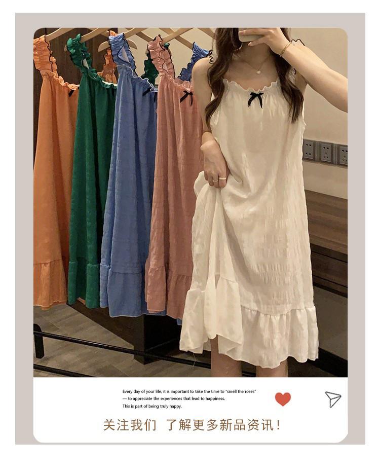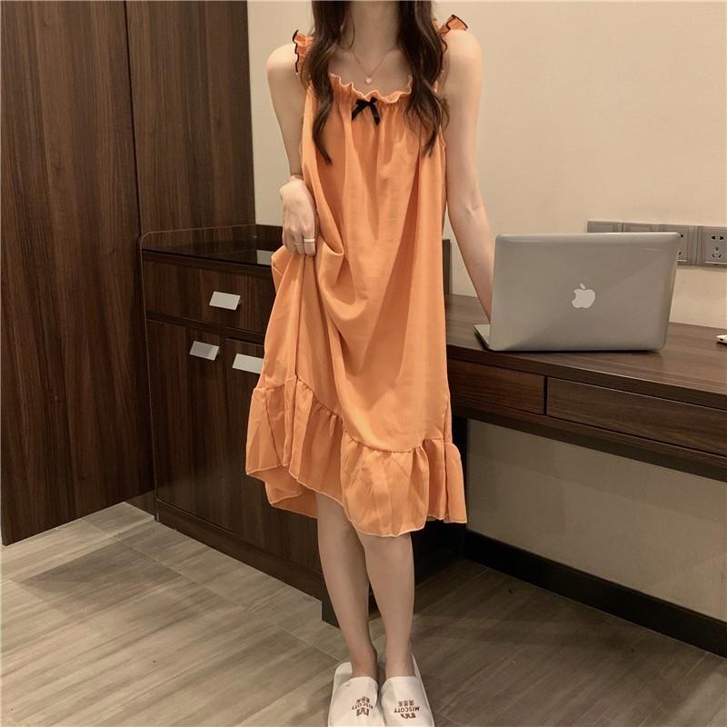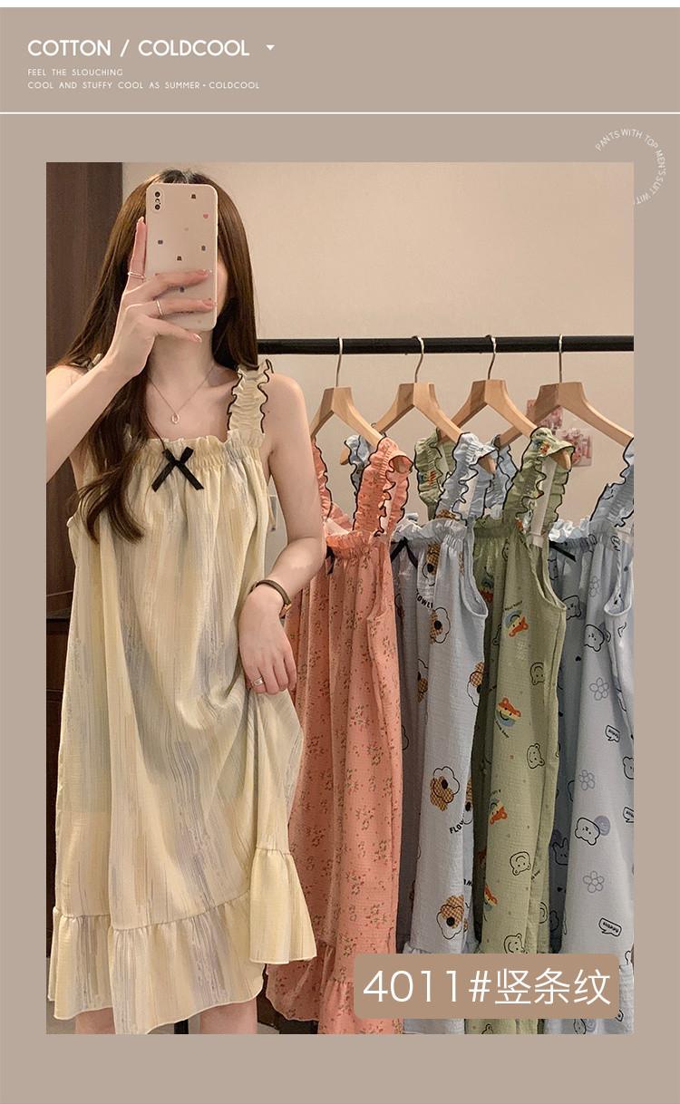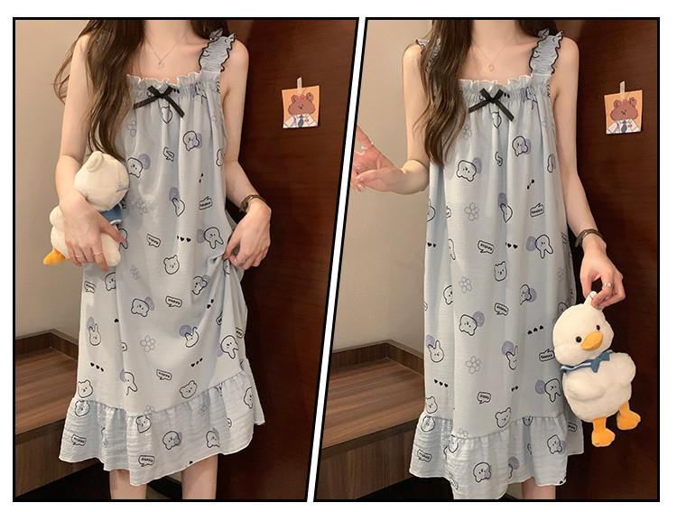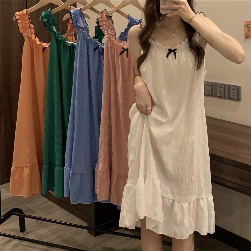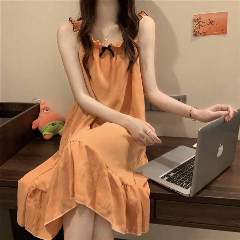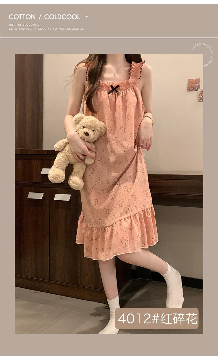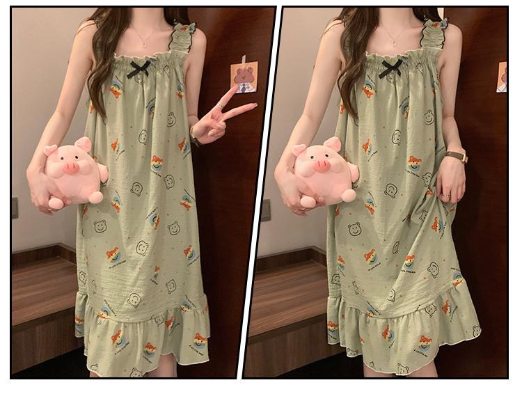 Gran Venta Pijamas Estilo Princesa con Almohadillas para el Busto Verano Nuevo Estilo Puro Lujuria Camisón de Tirantes de Largo Medio y Manga Corta Ropa de Casa para Mujer