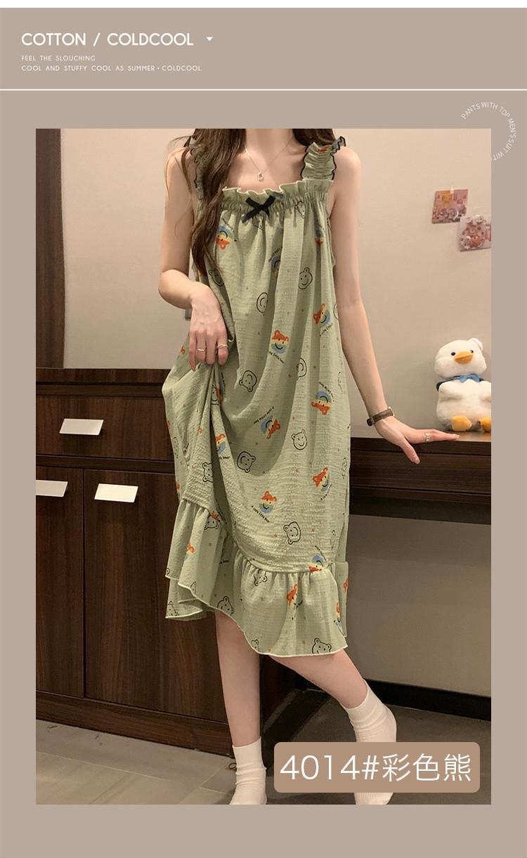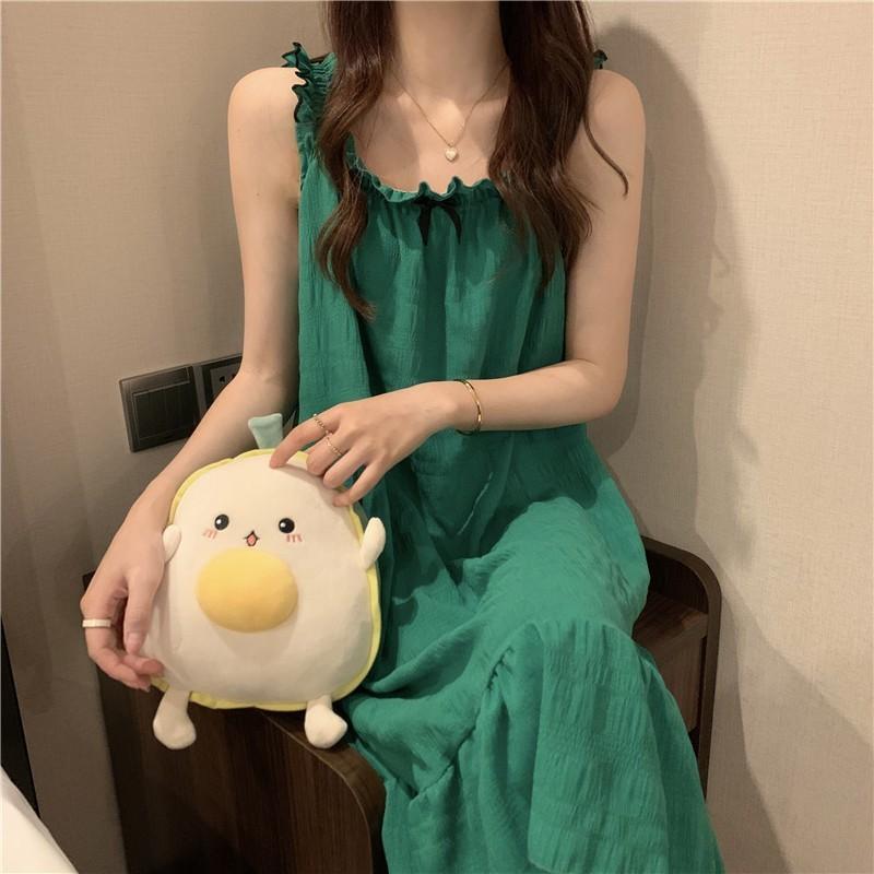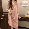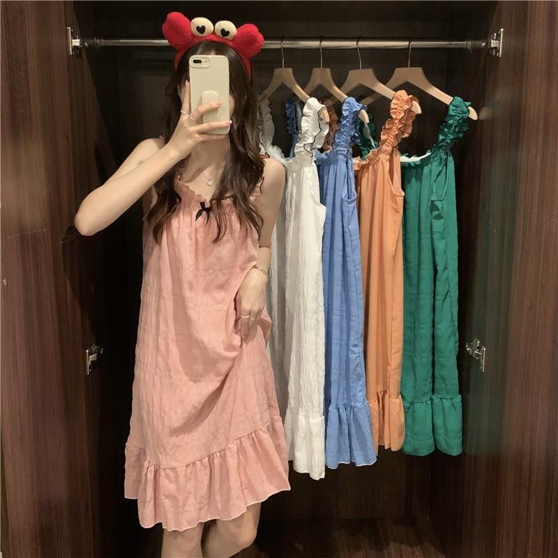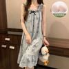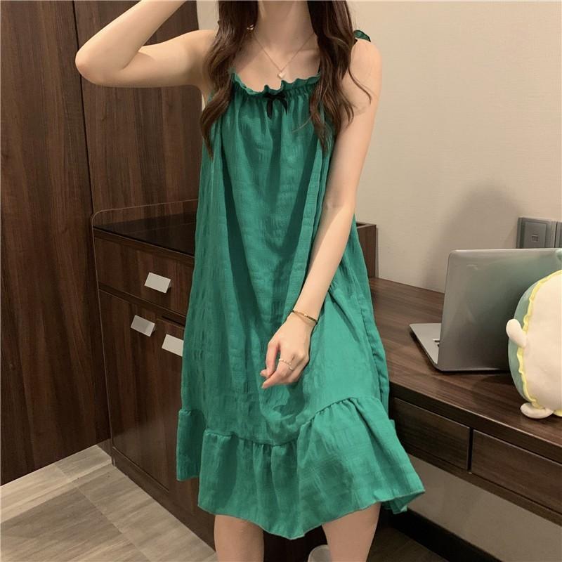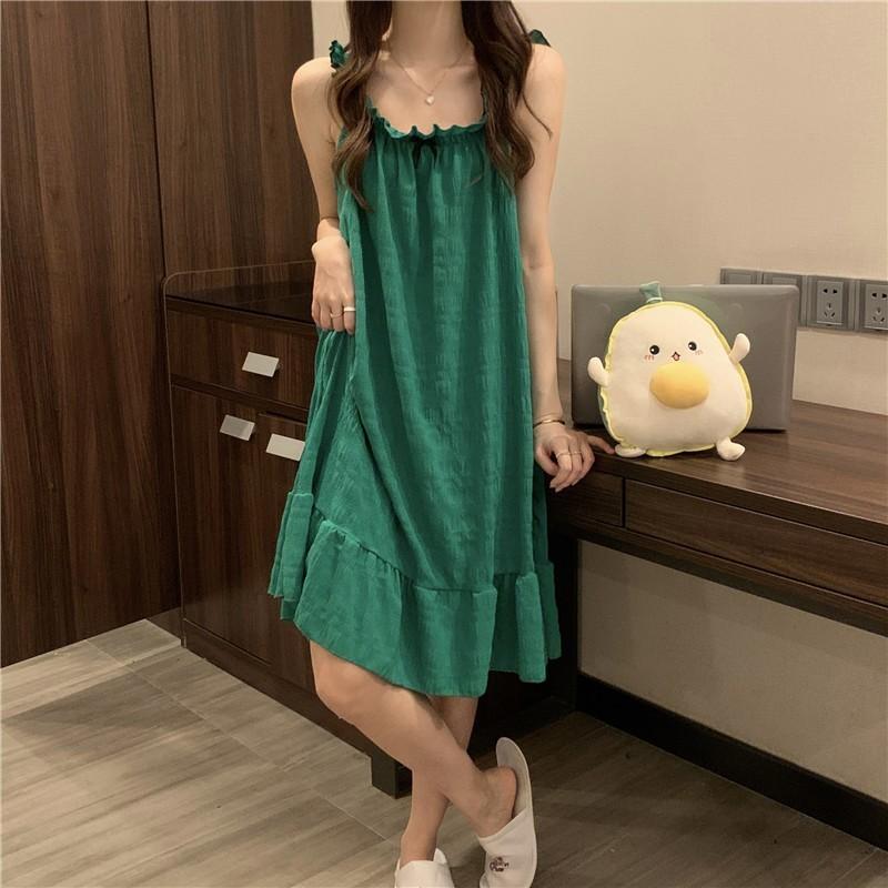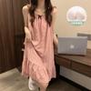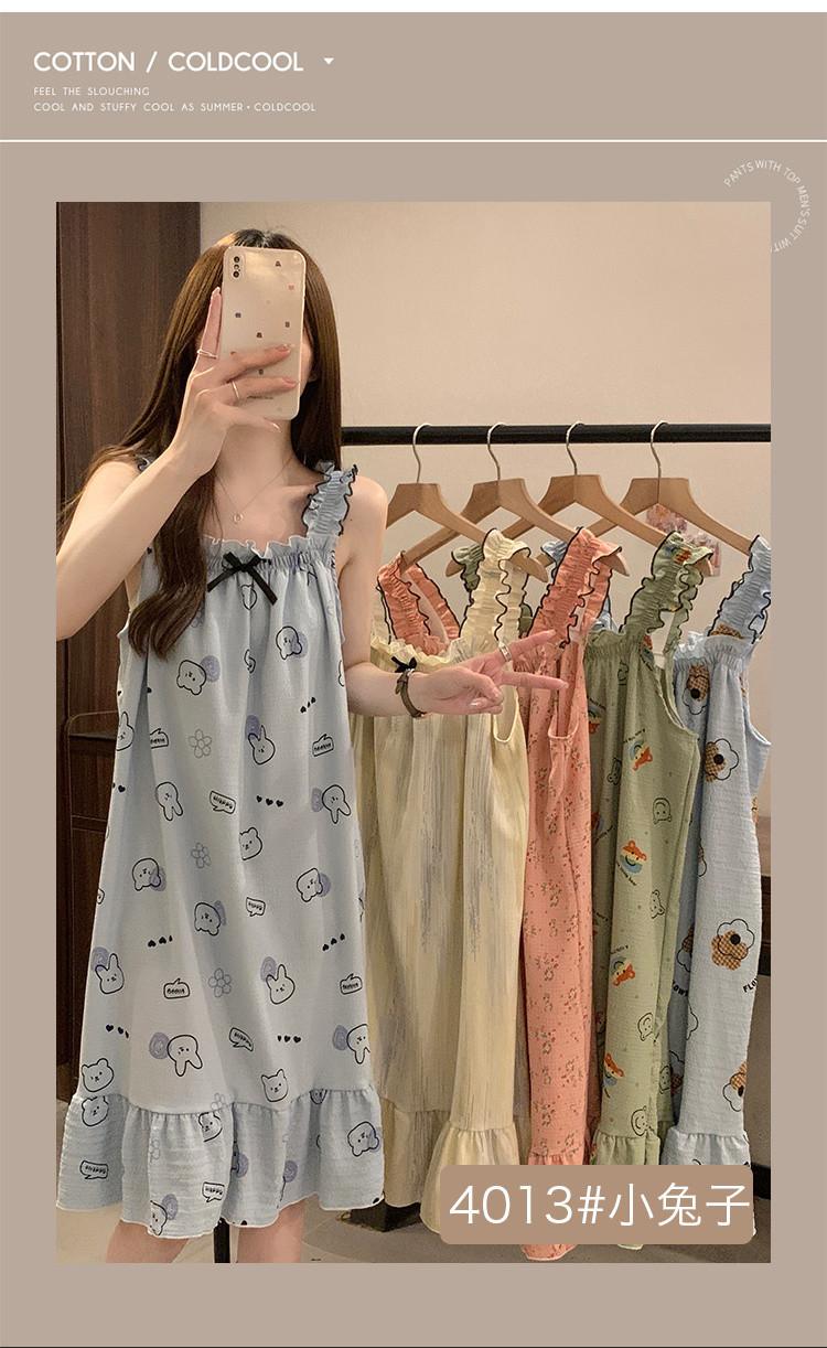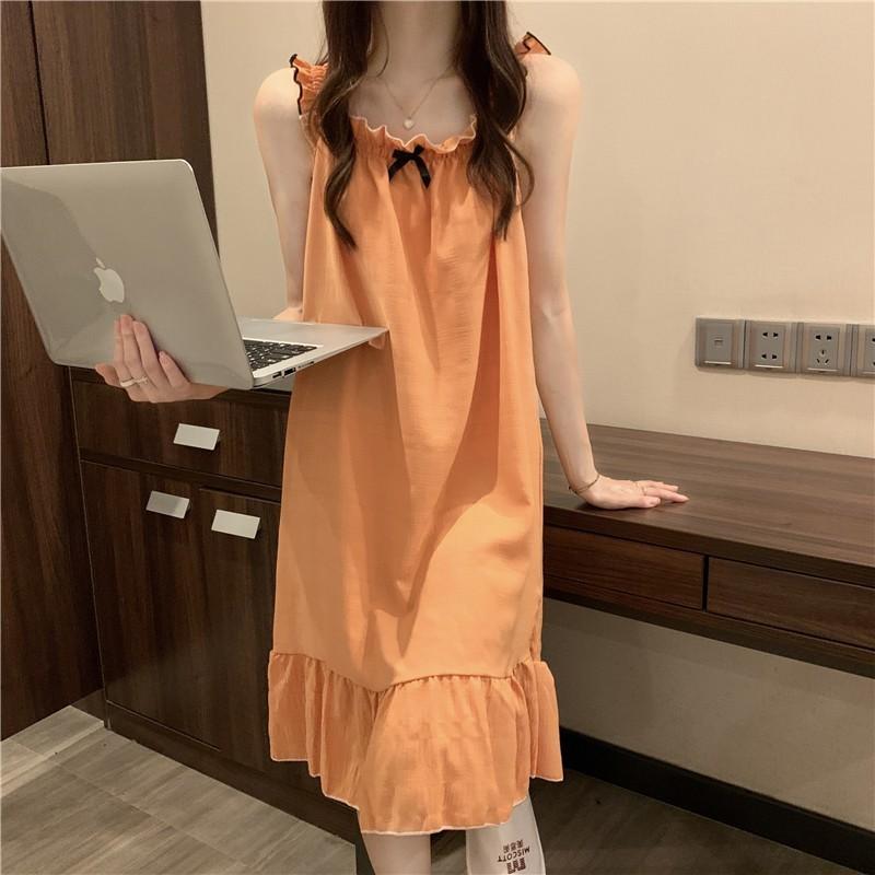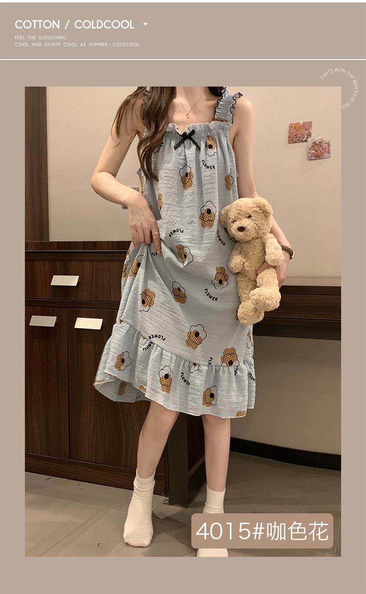Gran Venta Pijamas Estilo Princesa con Almohadillas para el Busto Verano Nuevo Estilo Puro Lujuria Camisón de Tirantes de Largo Medio y Manga Corta Ropa de Casa para Mujer