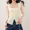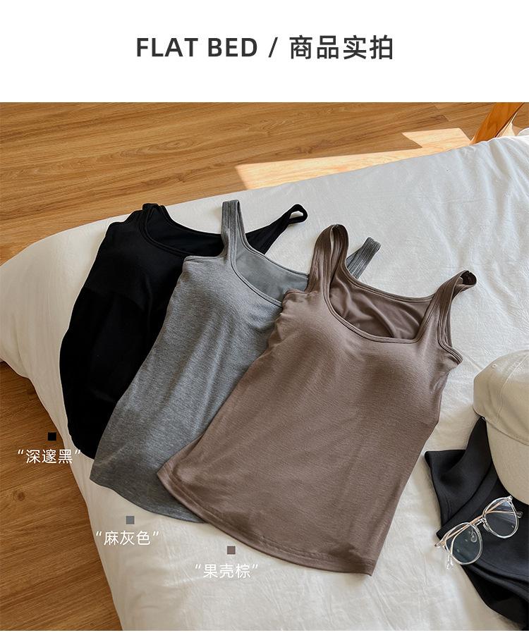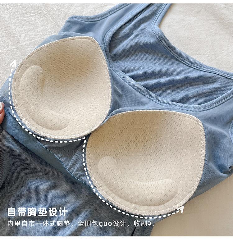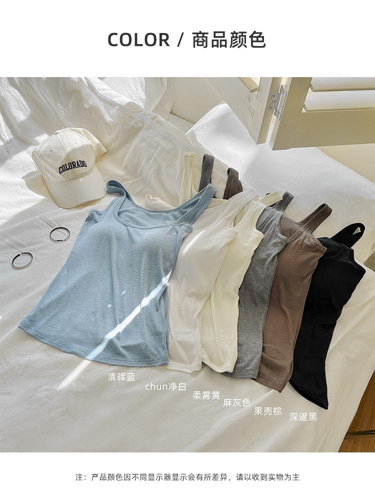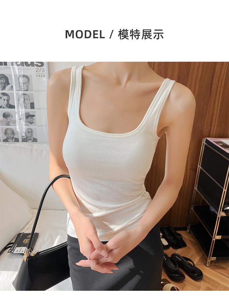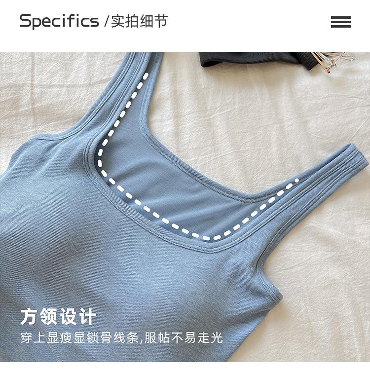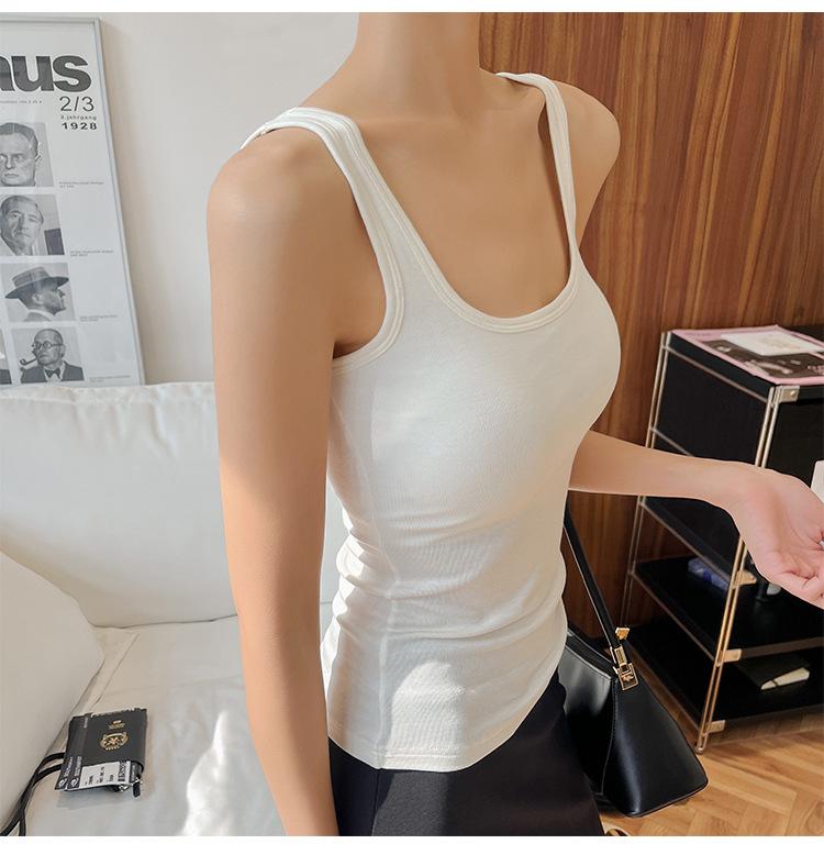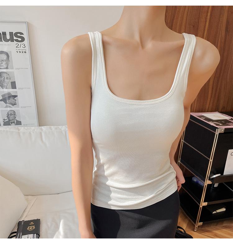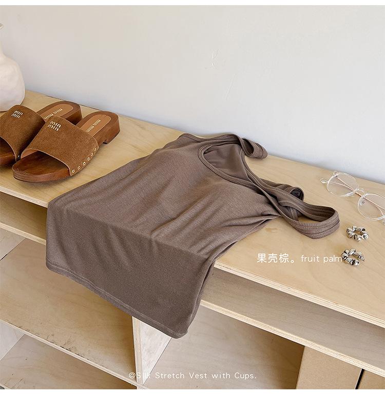 Chaleco elástico fresco de seda con cuello cuadrado para mujer con almohadilla en el pecho, sling básico, primavera y verano, nuevo estilo, top interior sin mangas