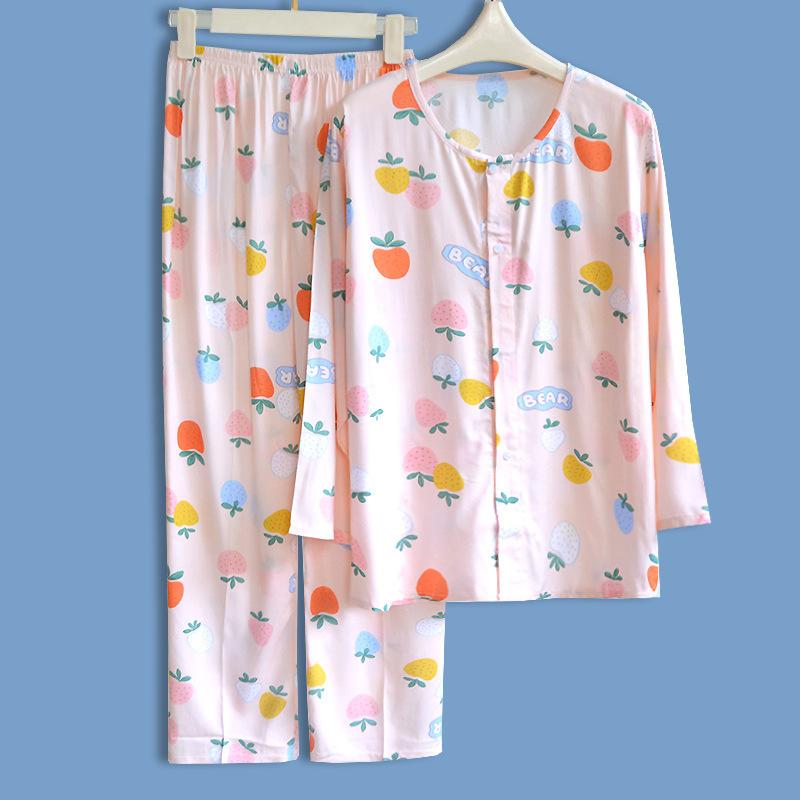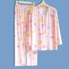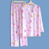 Pijamas de seda de algodón para mujer, de verano, finos, dulces, nuevos, de manga larga, cárdigan de algodón artificial, ropa de aire acondicionado para el hogar, traje de seda de algodón