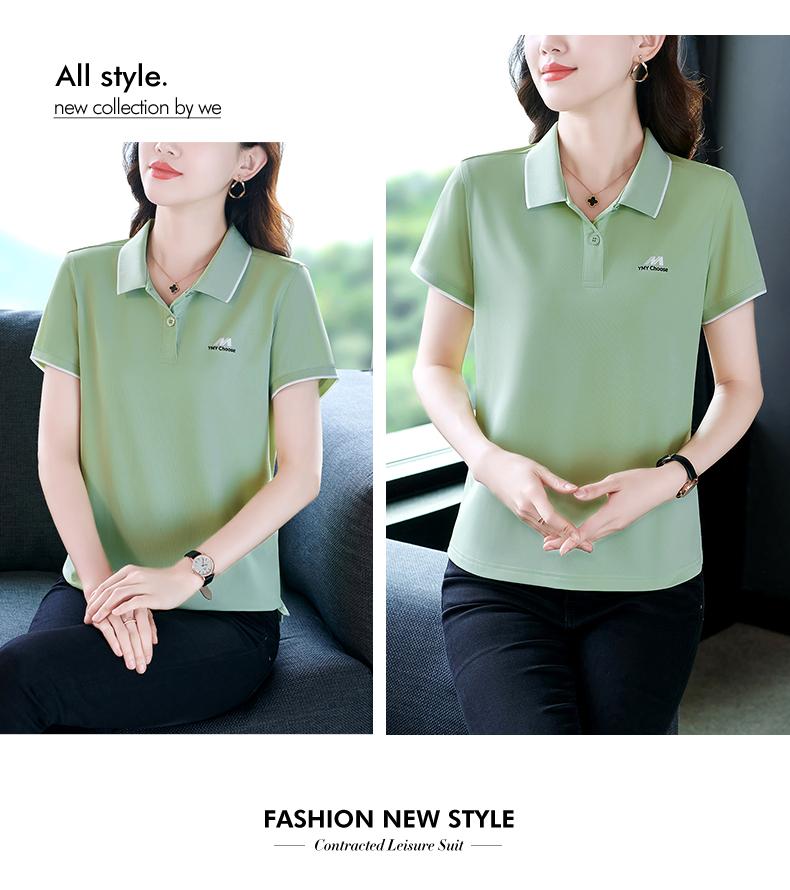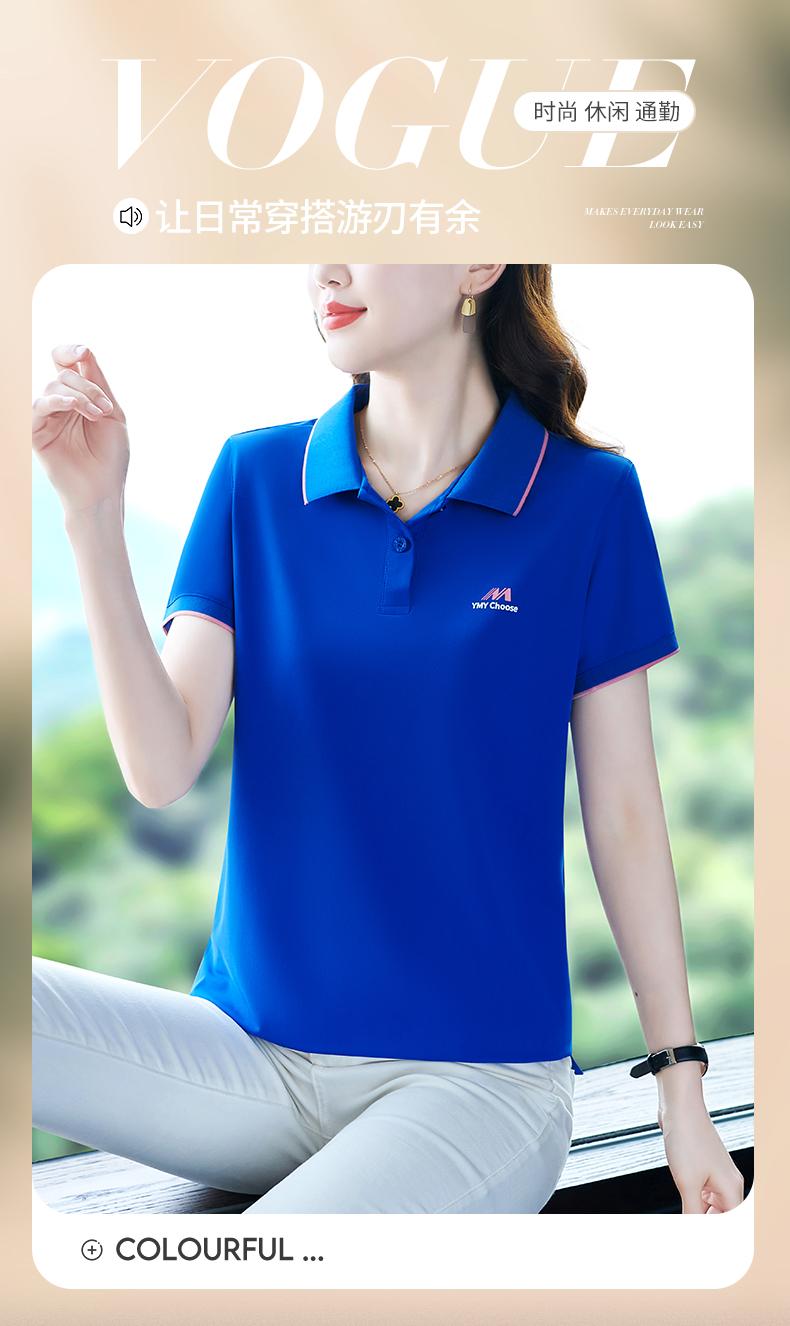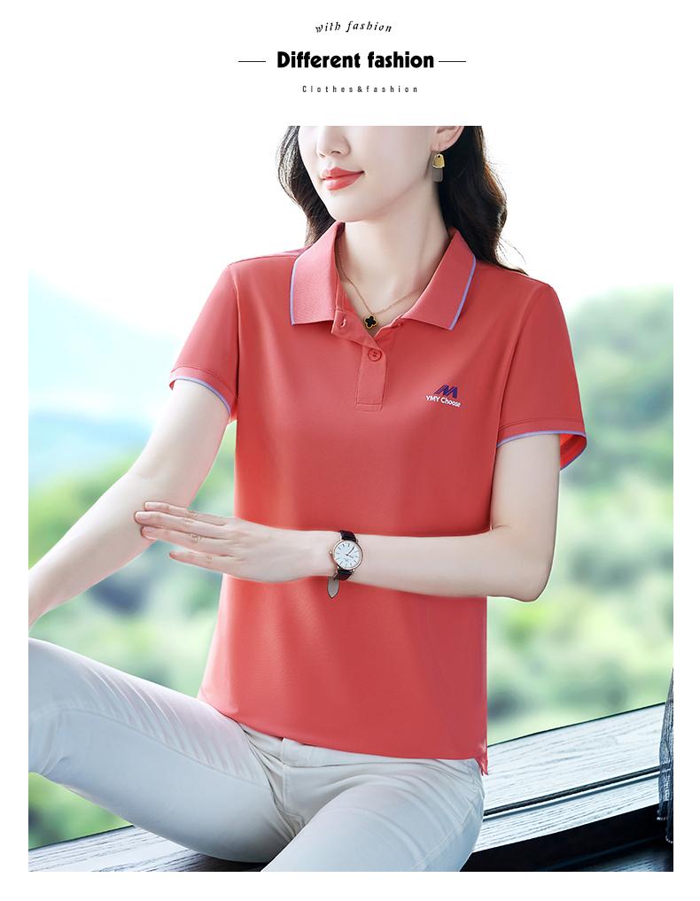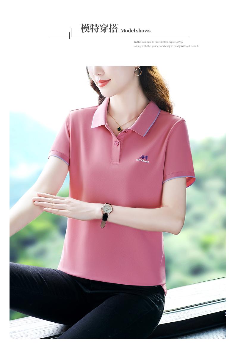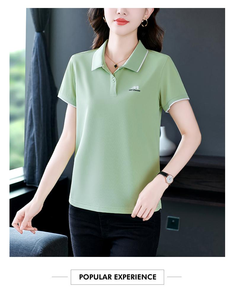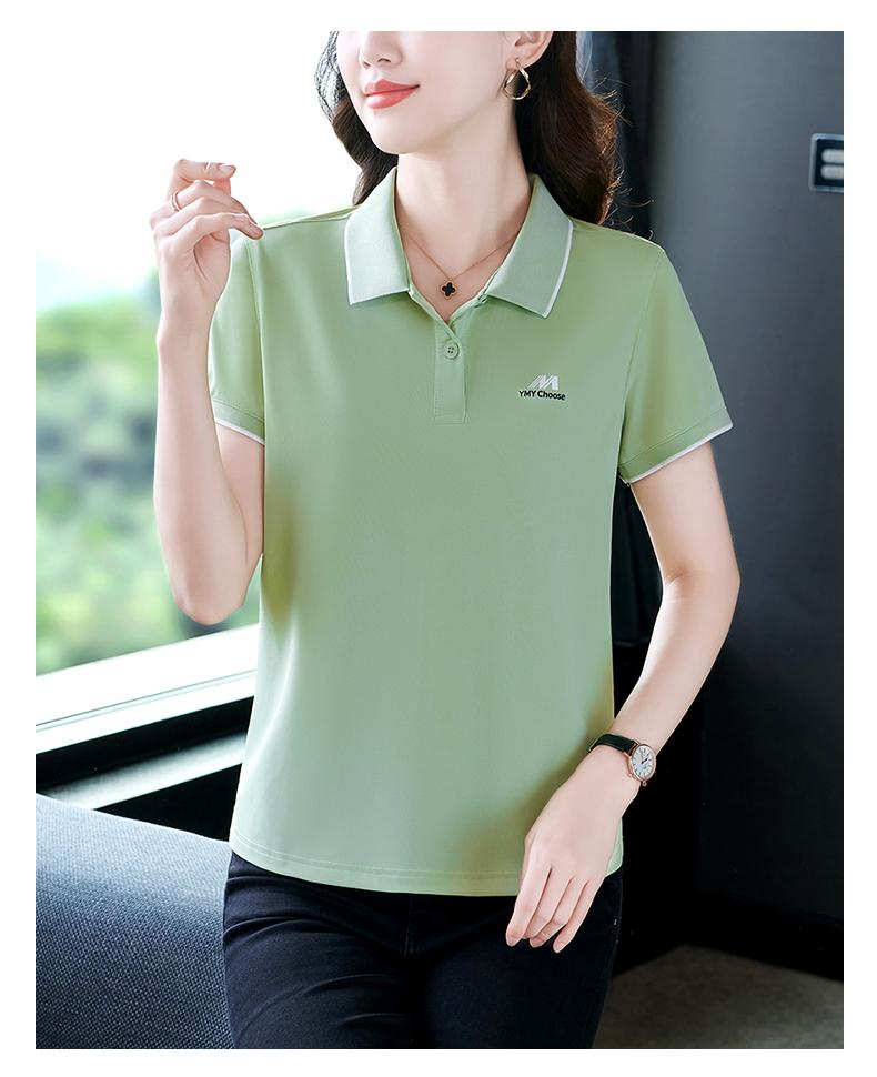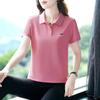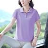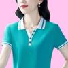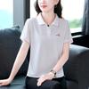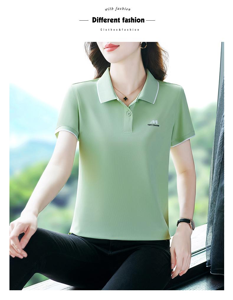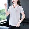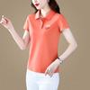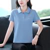 Camiseta de manga corta marca Yalu para mujer verano mediana edad seda helada solapa top moderno madre casual slim polo