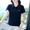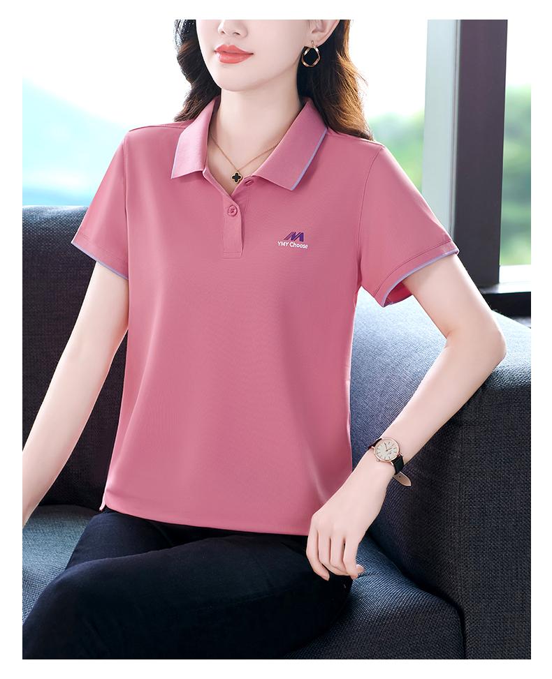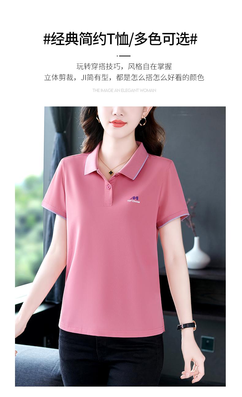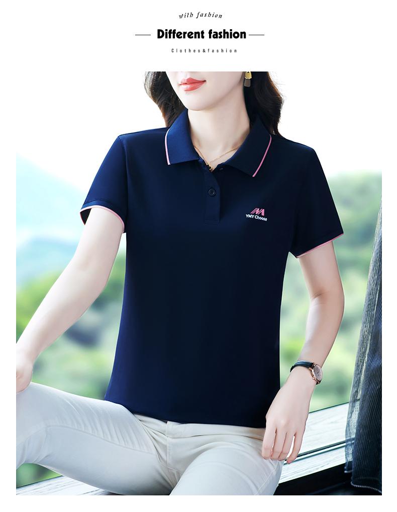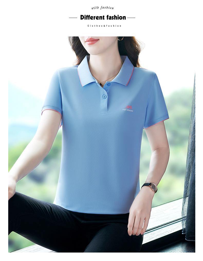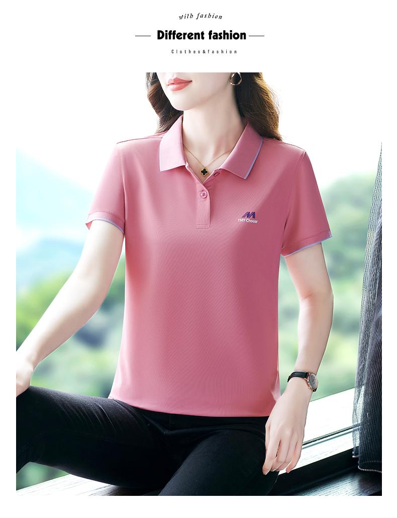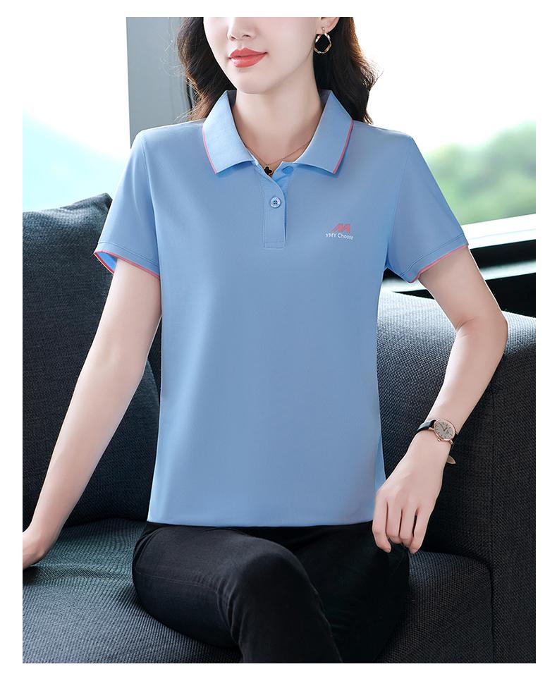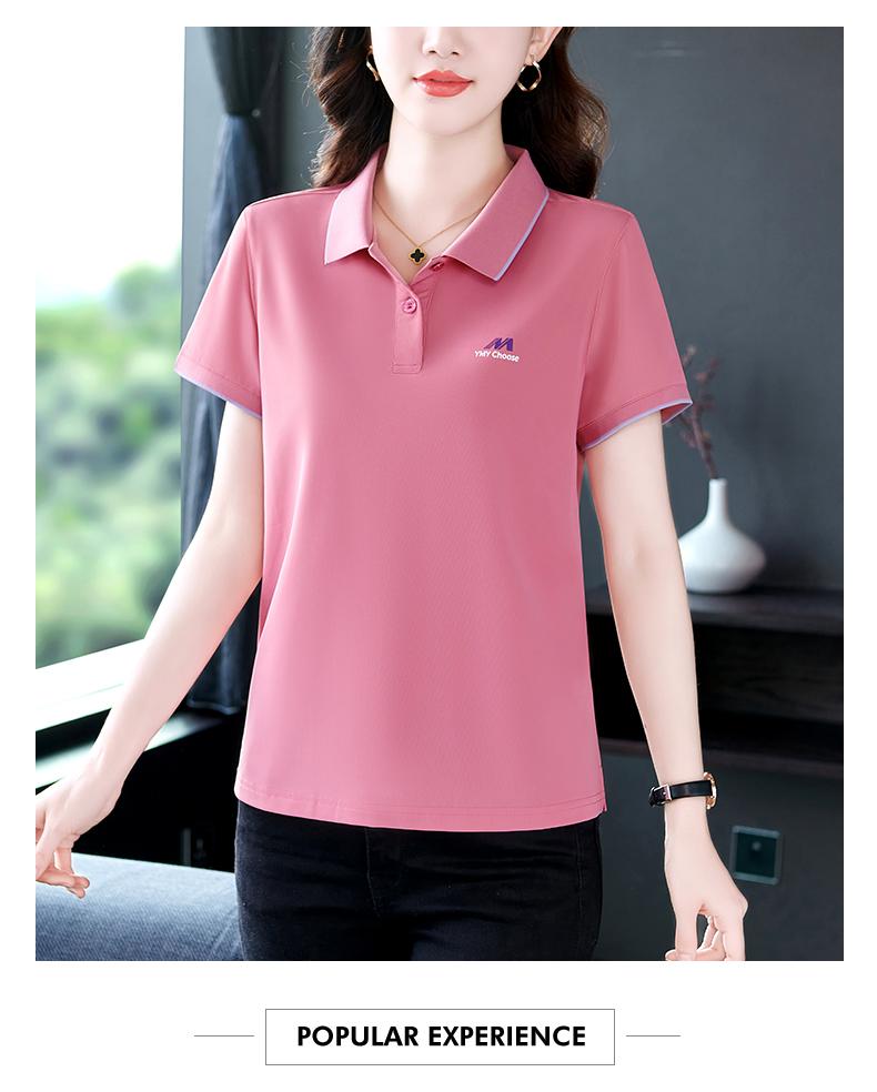 Camiseta de manga corta marca Yalu para mujer verano mediana edad seda helada solapa top moderno madre casual slim polo