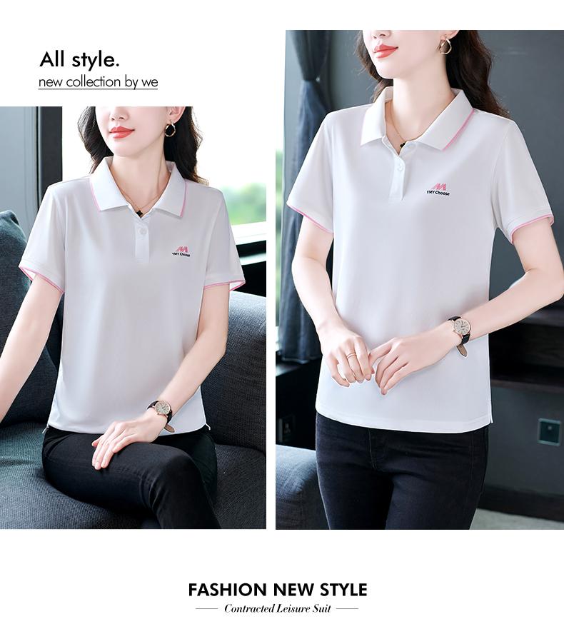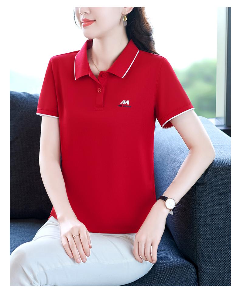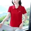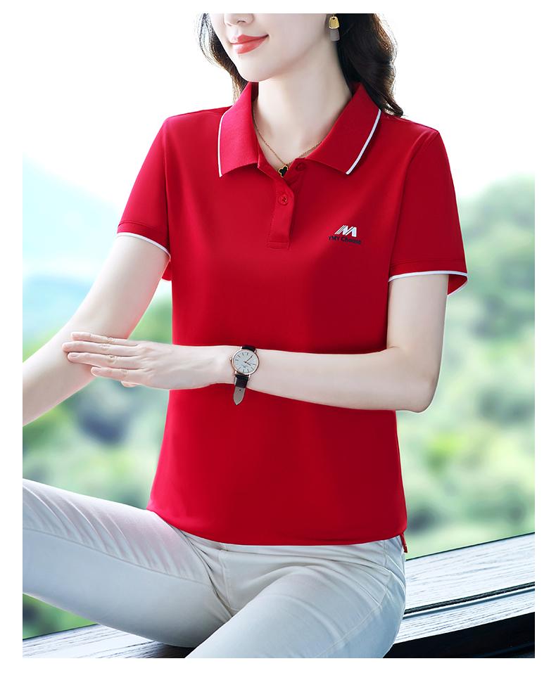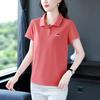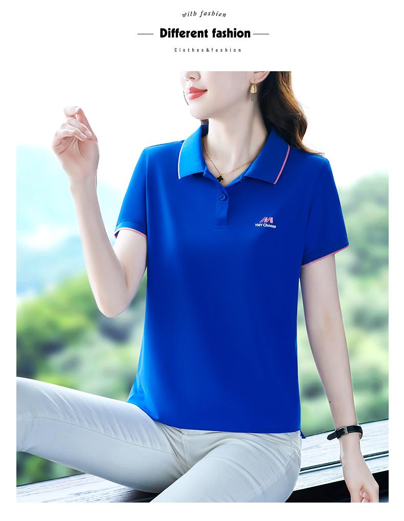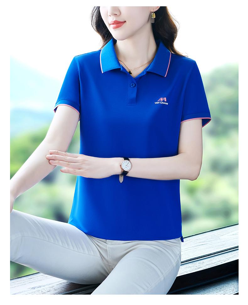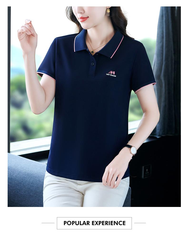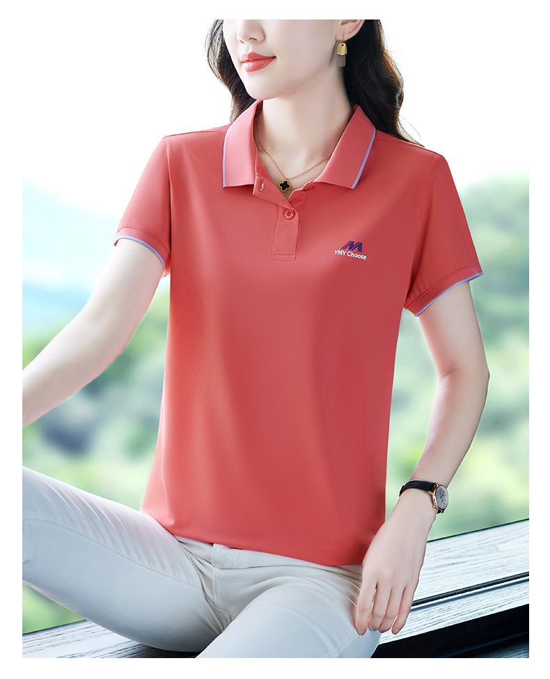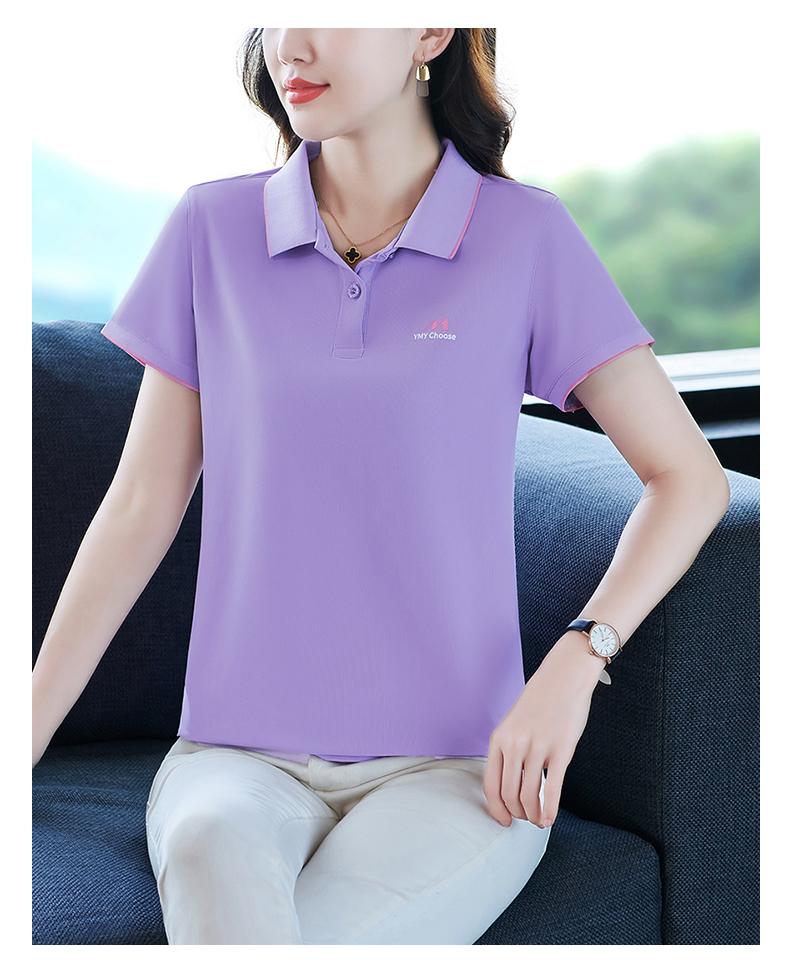 Camiseta de manga corta marca Yalu para mujer verano mediana edad seda helada solapa top moderno madre casual slim polo