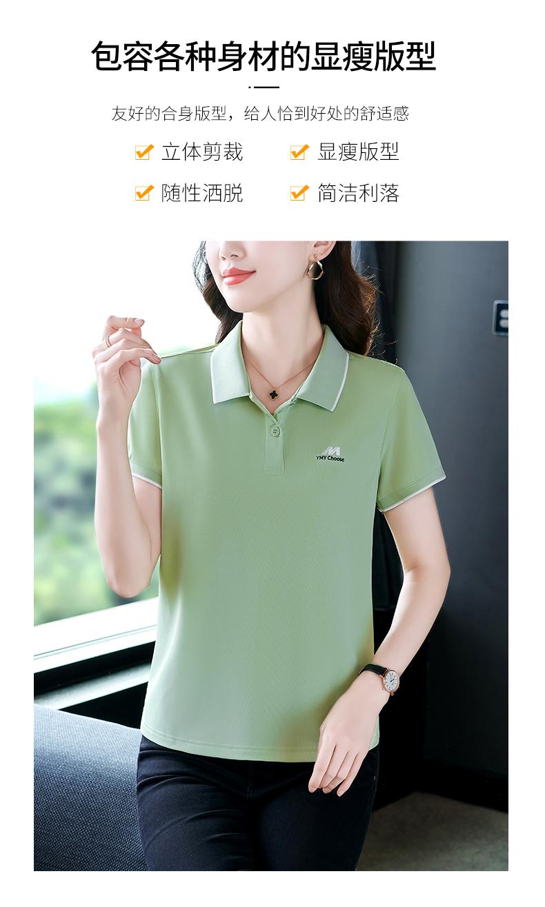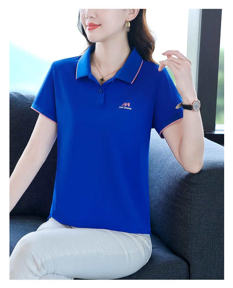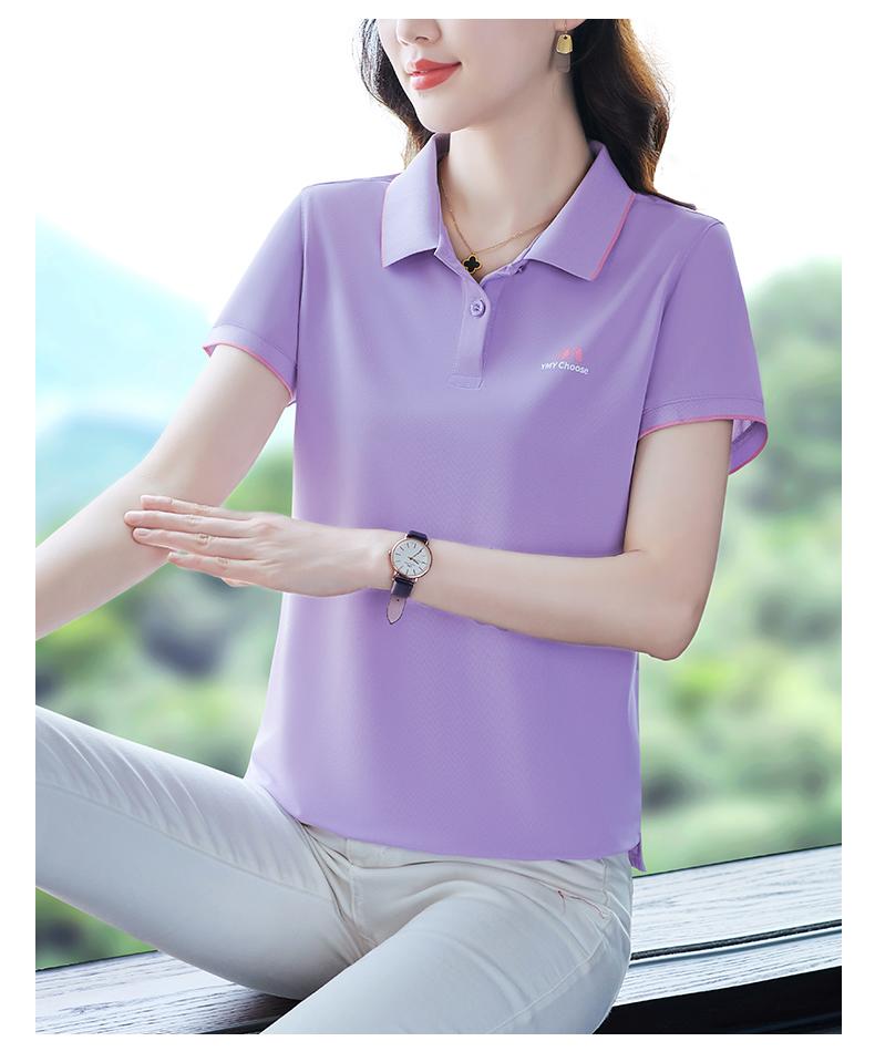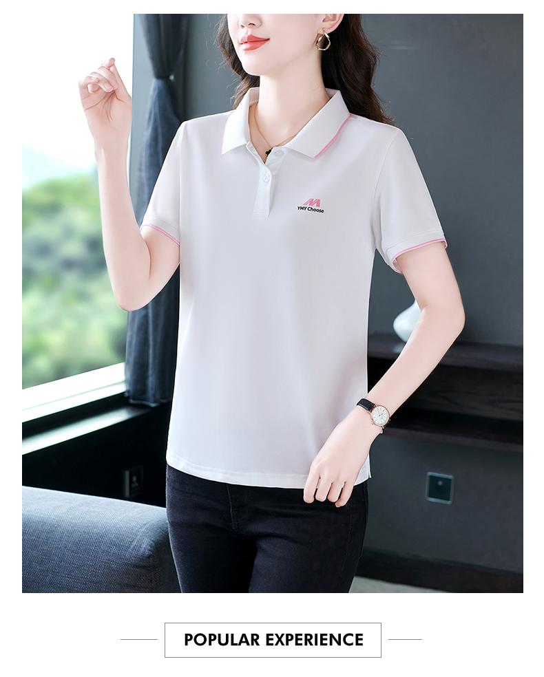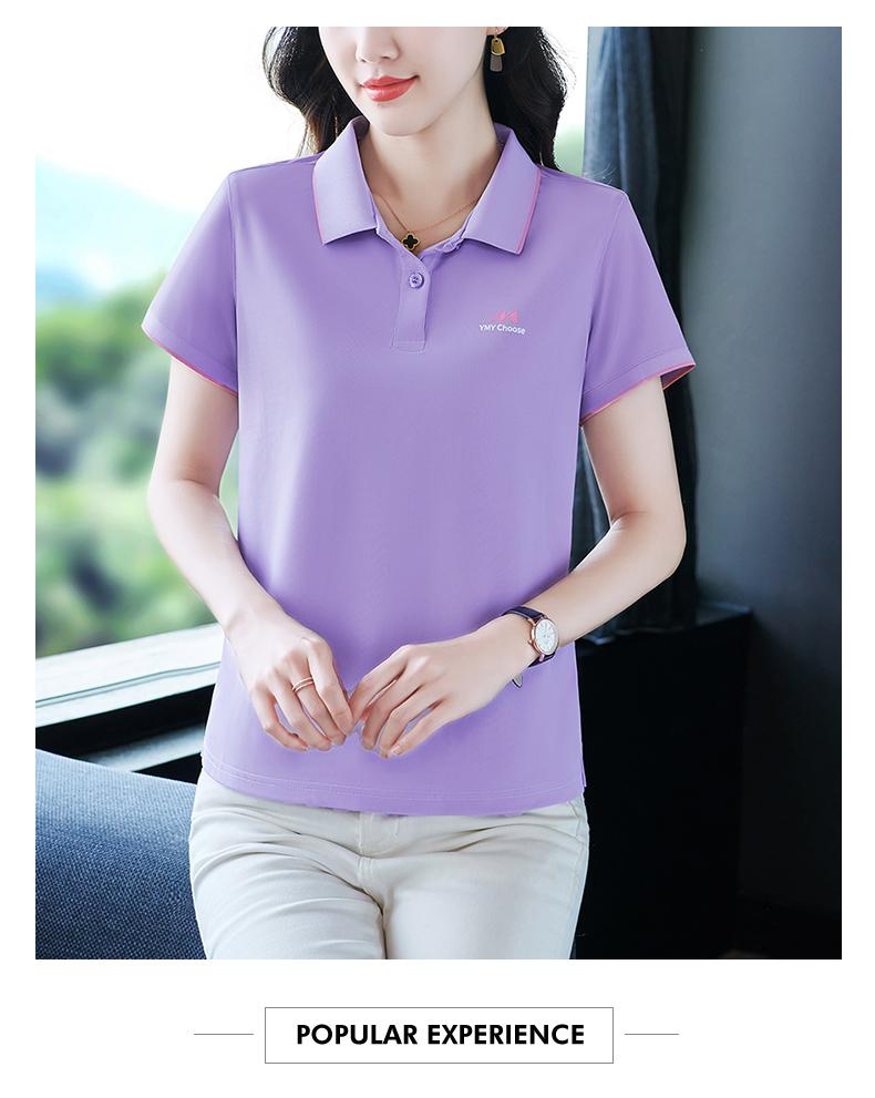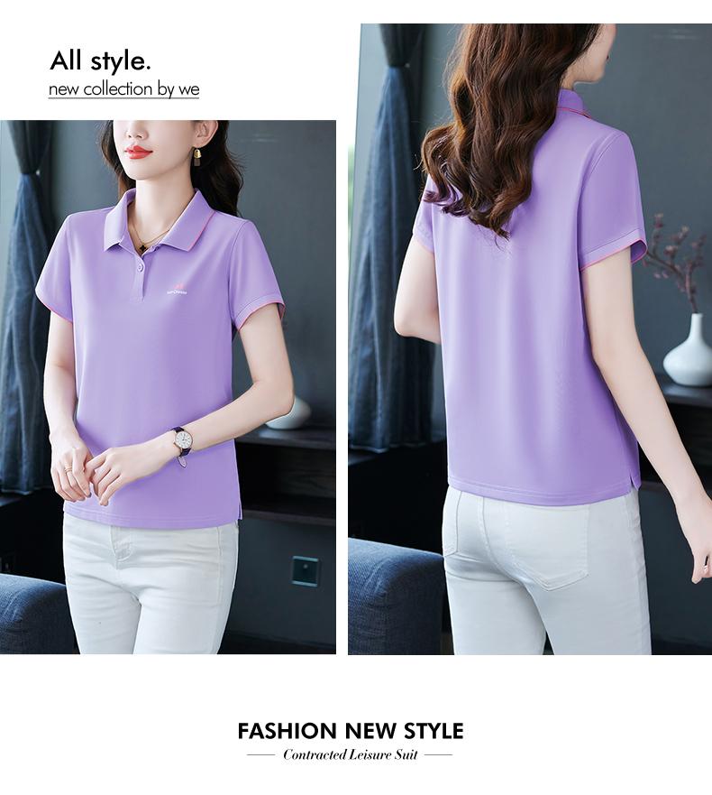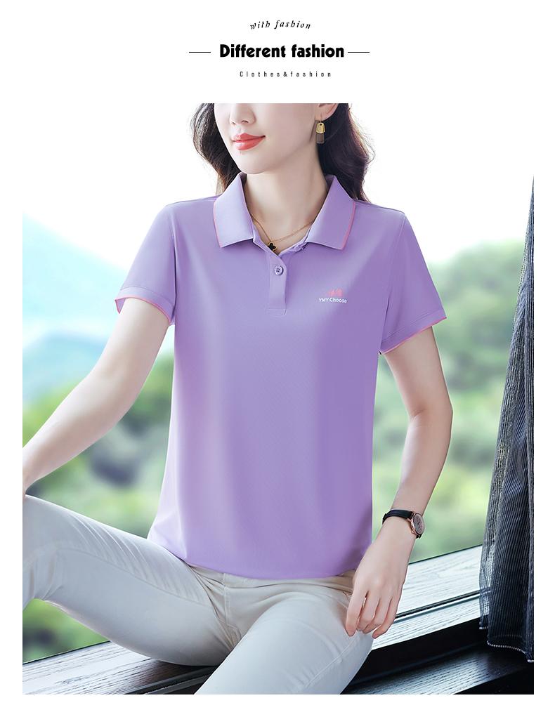 Camiseta de manga corta marca Yalu para mujer verano mediana edad seda helada solapa top moderno madre casual slim polo