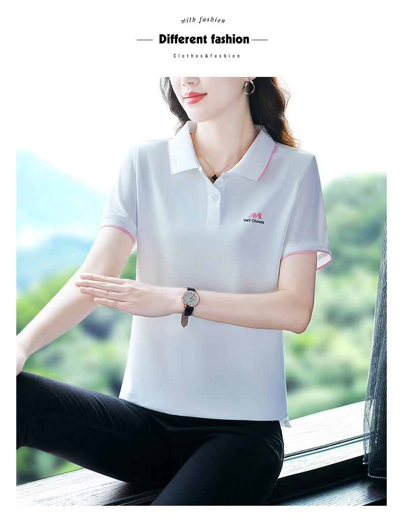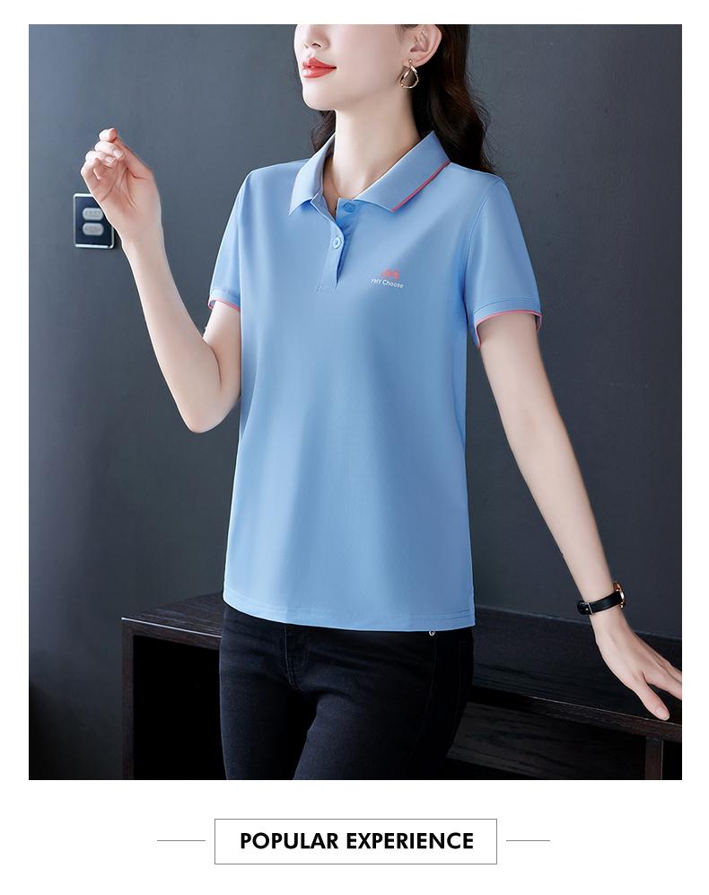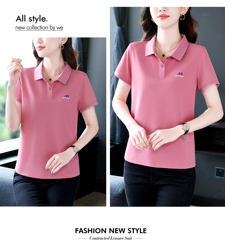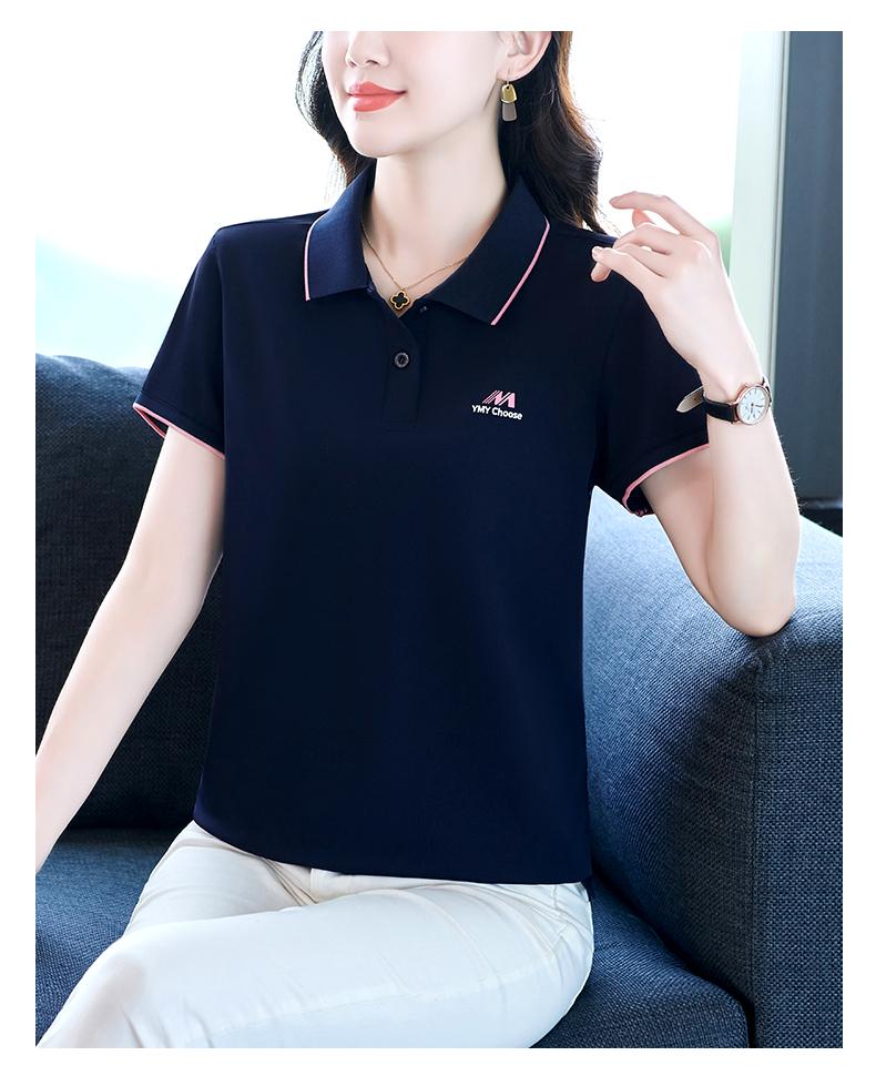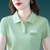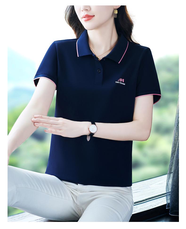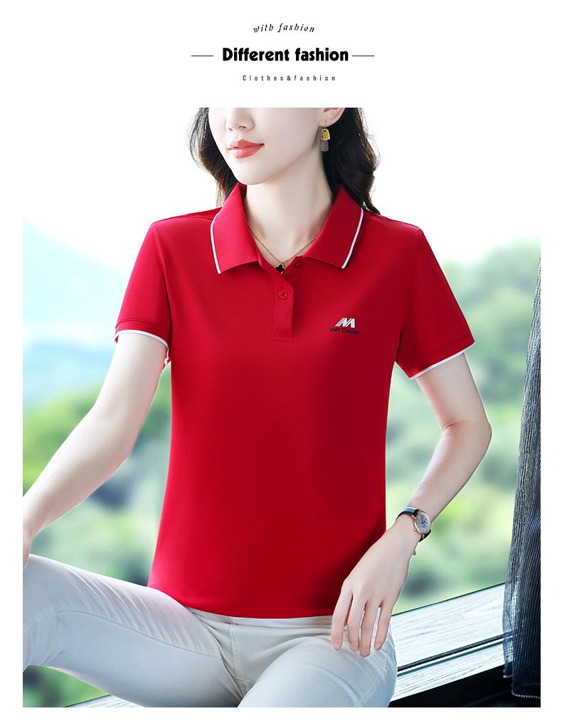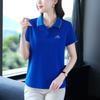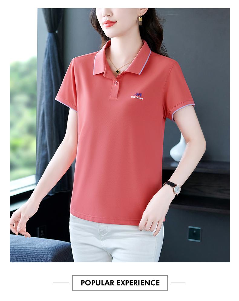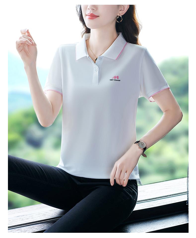 Camiseta de manga corta marca Yalu para mujer verano mediana edad seda helada solapa top moderno madre casual slim polo