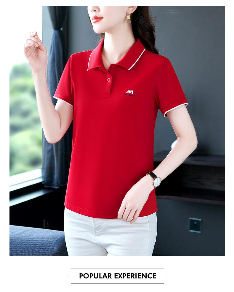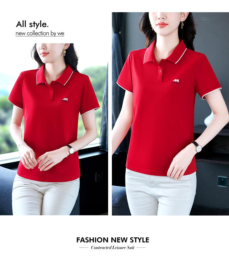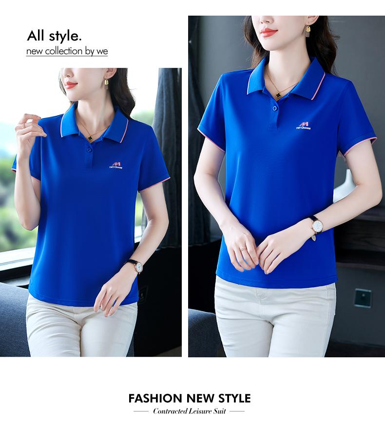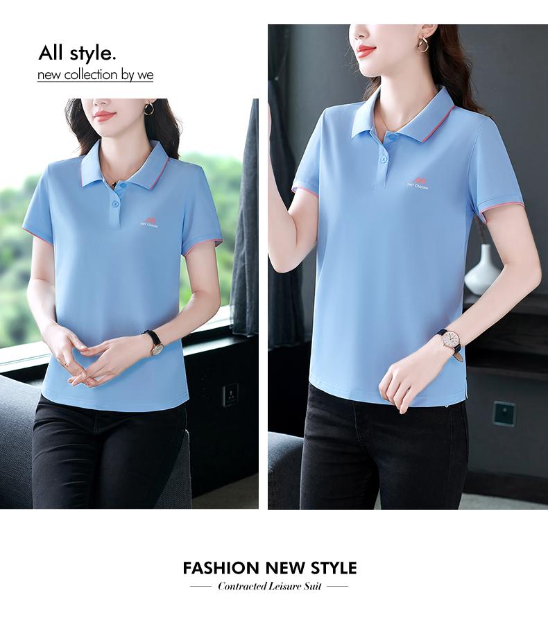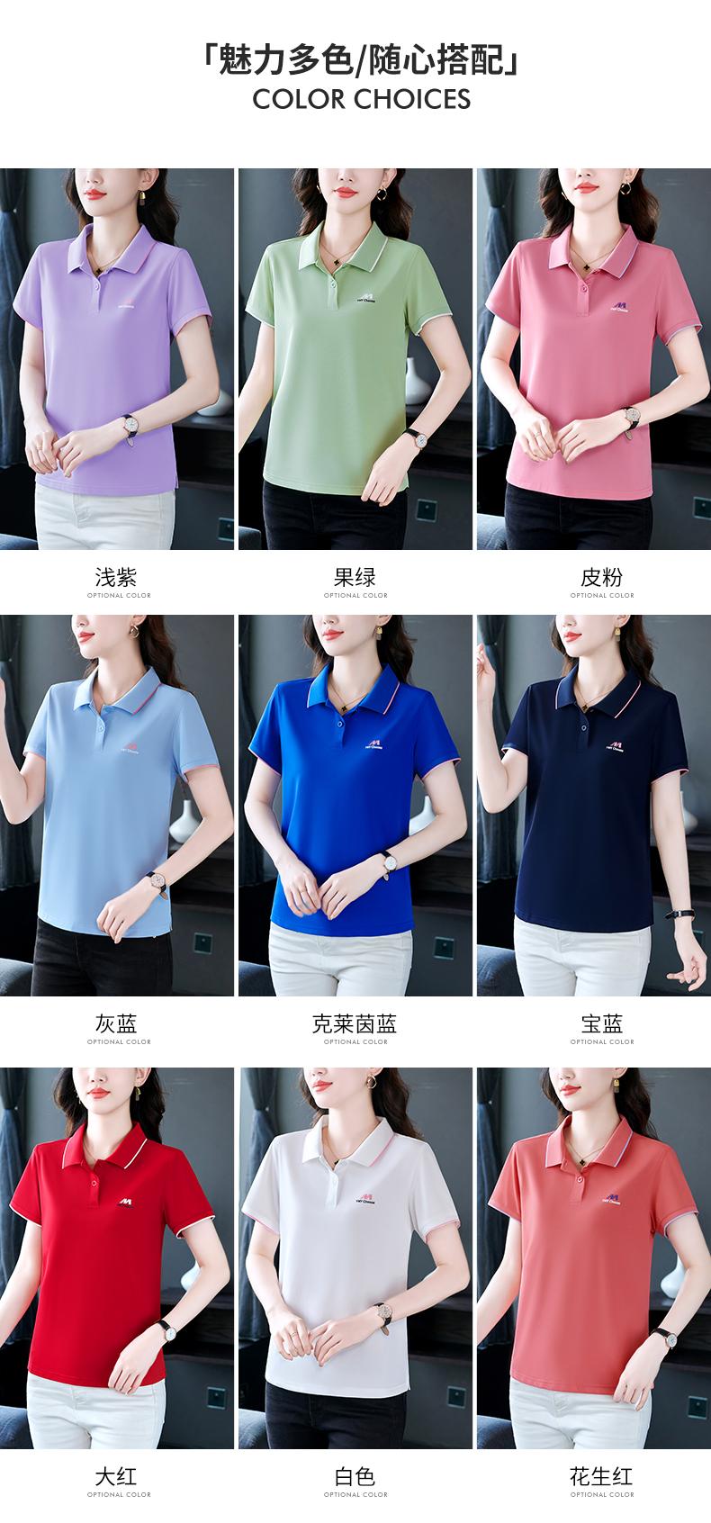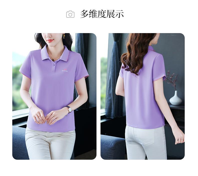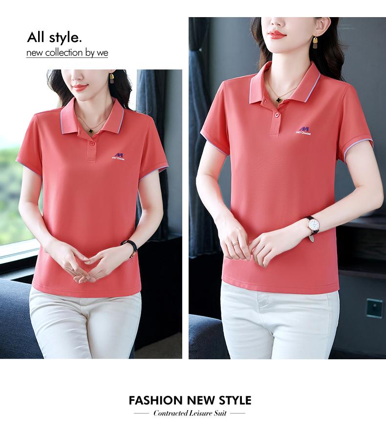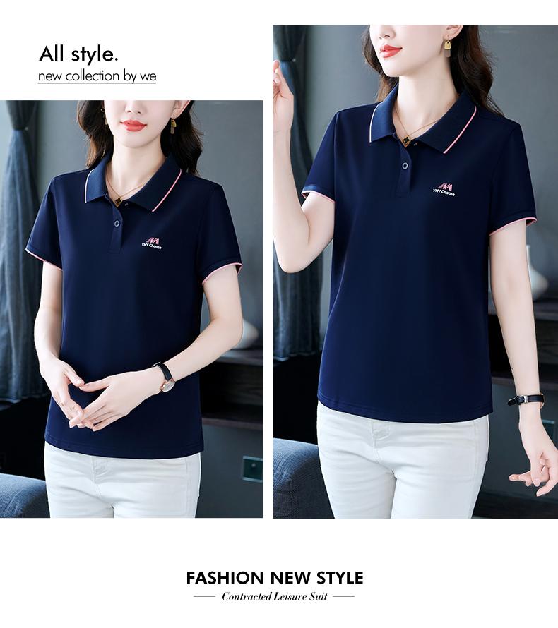 Camiseta de manga corta marca Yalu para mujer verano mediana edad seda helada solapa top moderno madre casual slim polo