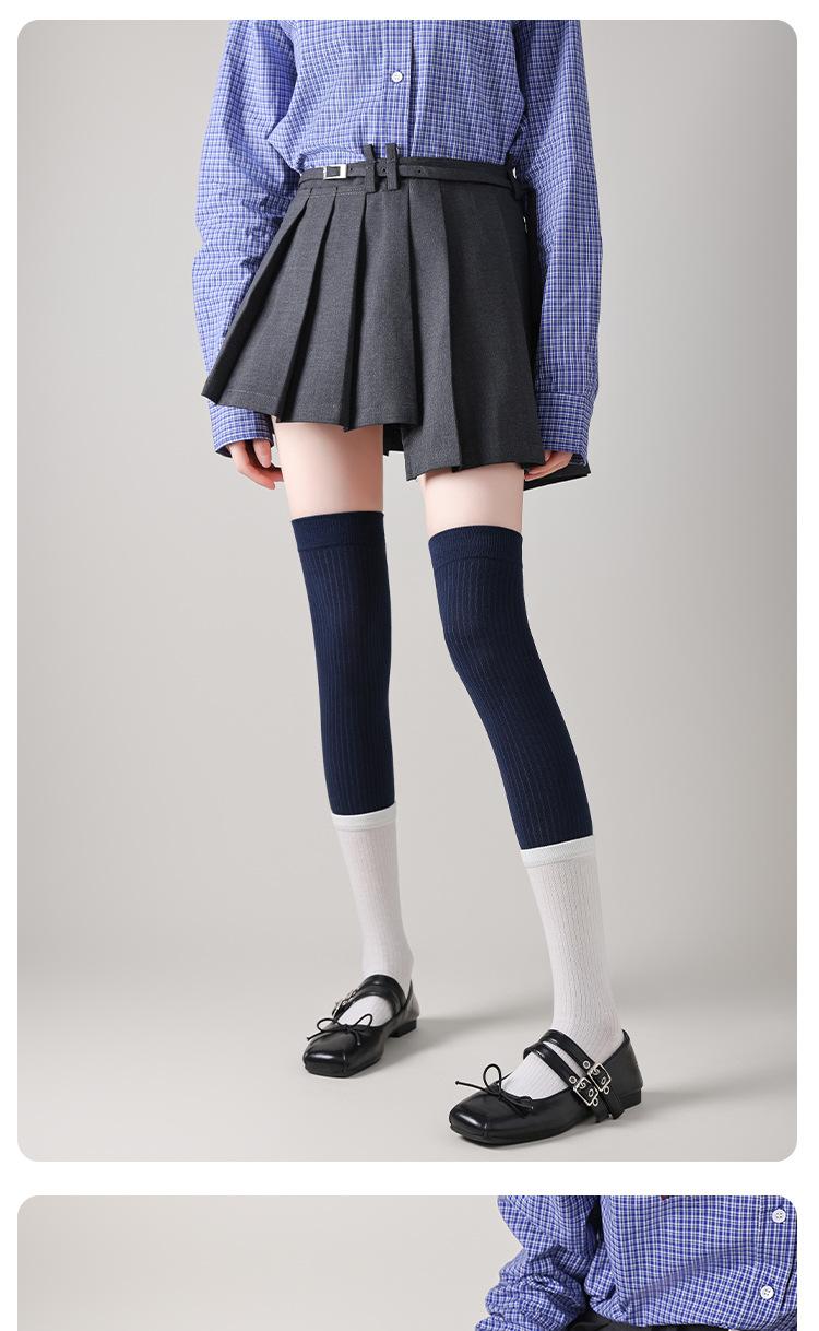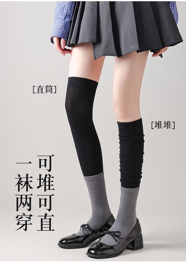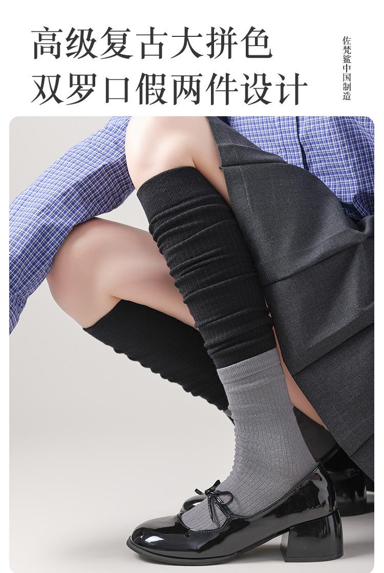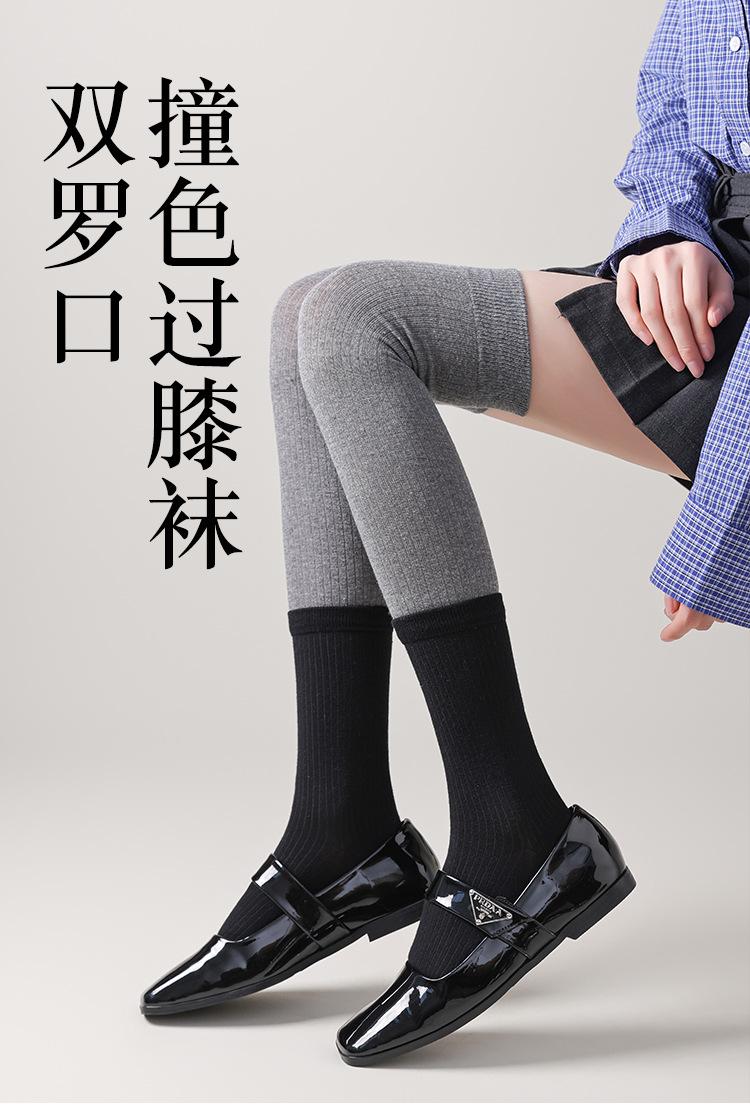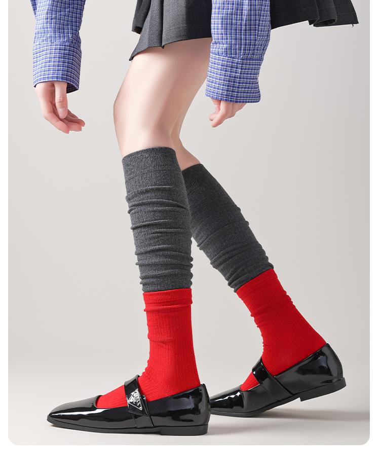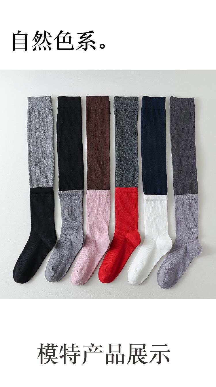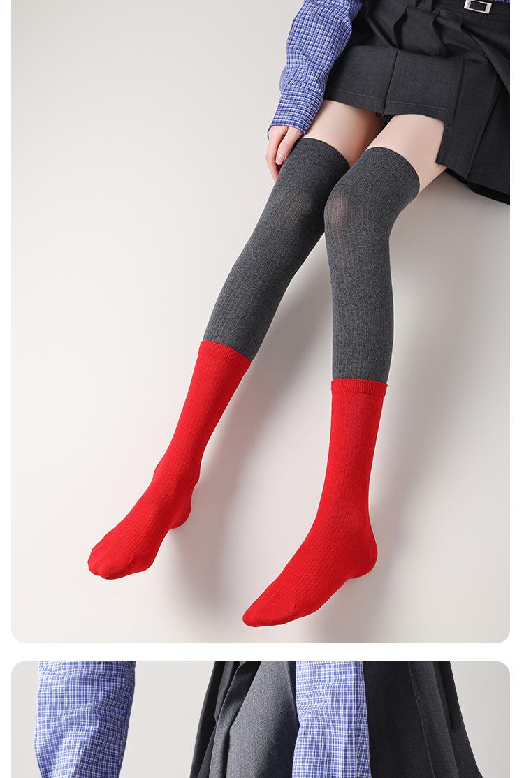 Calcetines grises de gran tamaño con contraste de color, estilo universitario, doble Luo Kou, hasta la rodilla, para mujer, medias altas, botas, calcetines rojos.