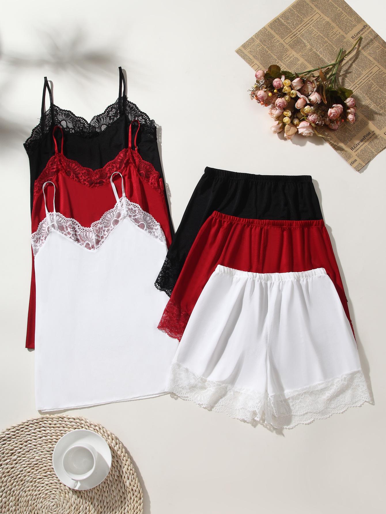Pijama rojo sexy para damas de comercio exterior europeo y americano, ropa para el hogar de primavera y verano, traje de tirantes con encaje de moda al por mayor