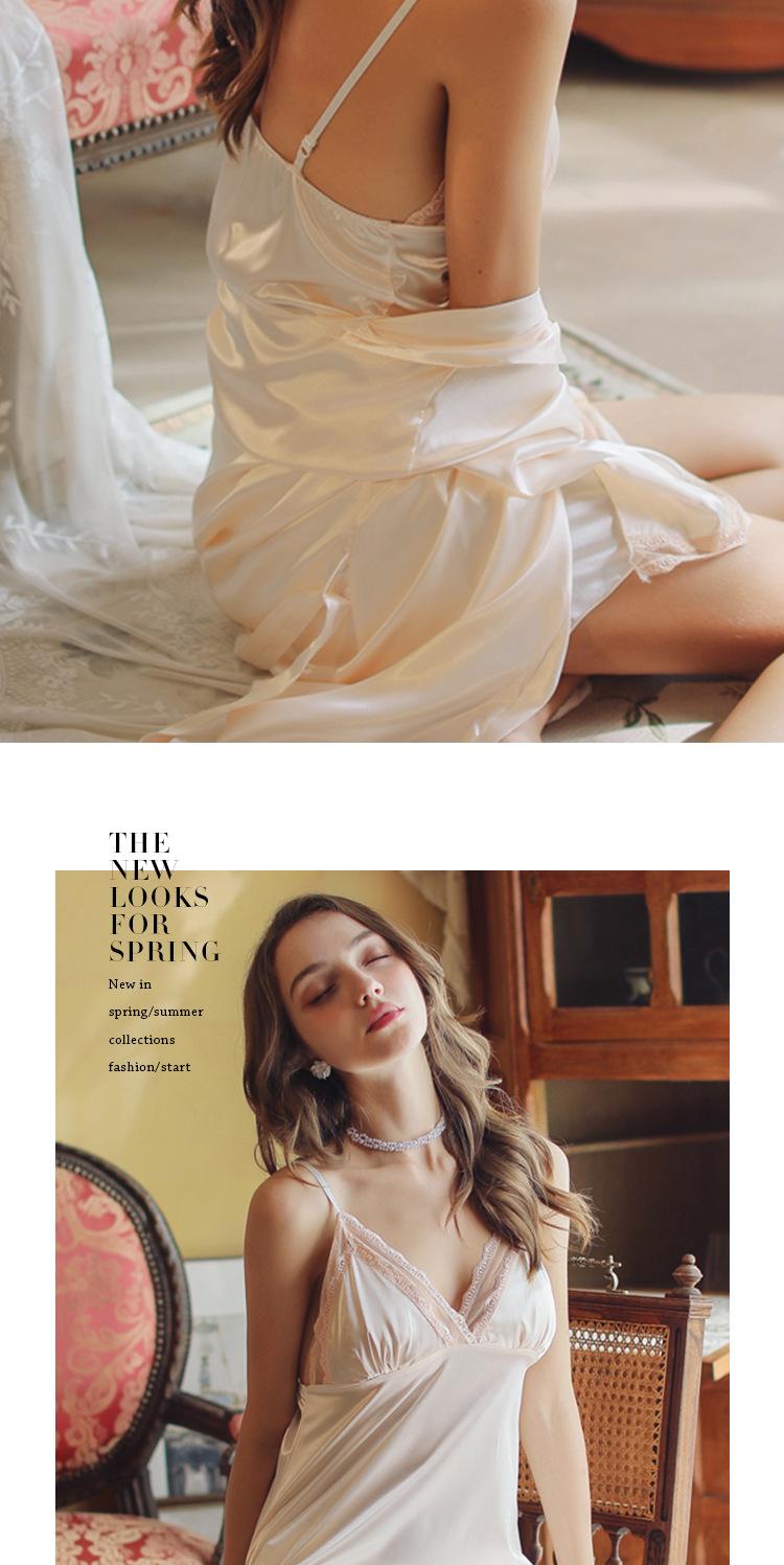 Pijamas sexys de seda de hielo para mujer, primavera y otoño, nuevos camisones de encaje de alta gama, estilo Pure Desire, camisón con tirantes, venta al por mayor