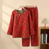 Pijama de manga larga con encaje floral estilo coreano para mujer, ropa de casa con cuello de muñeca, primavera