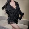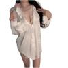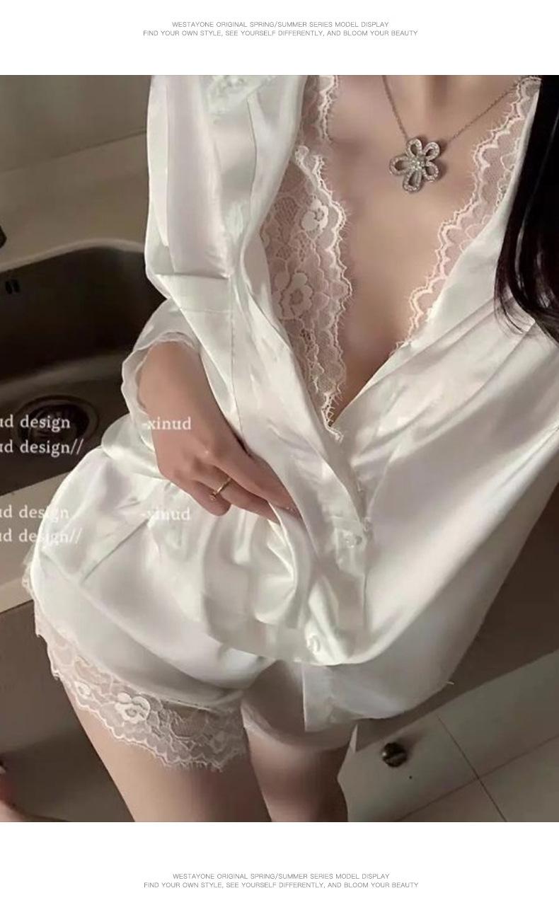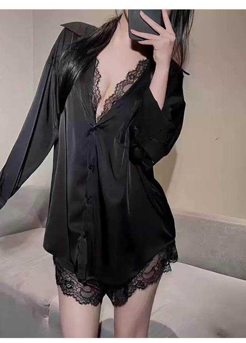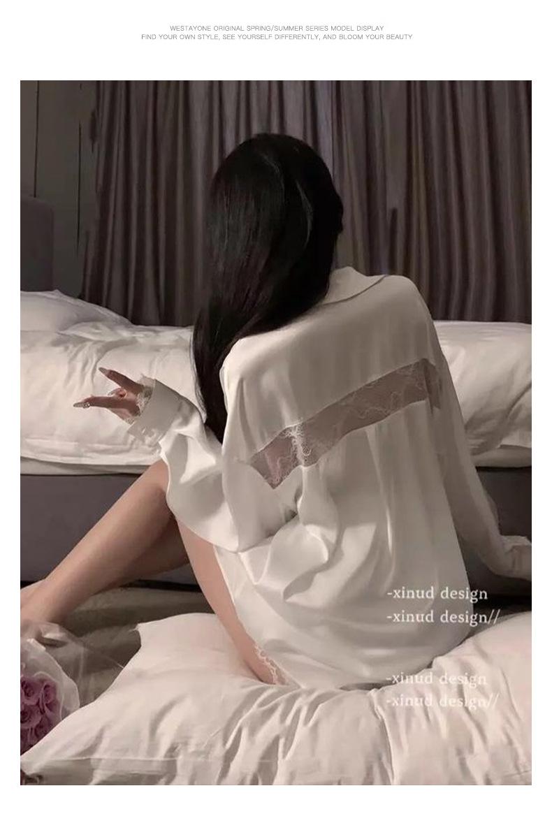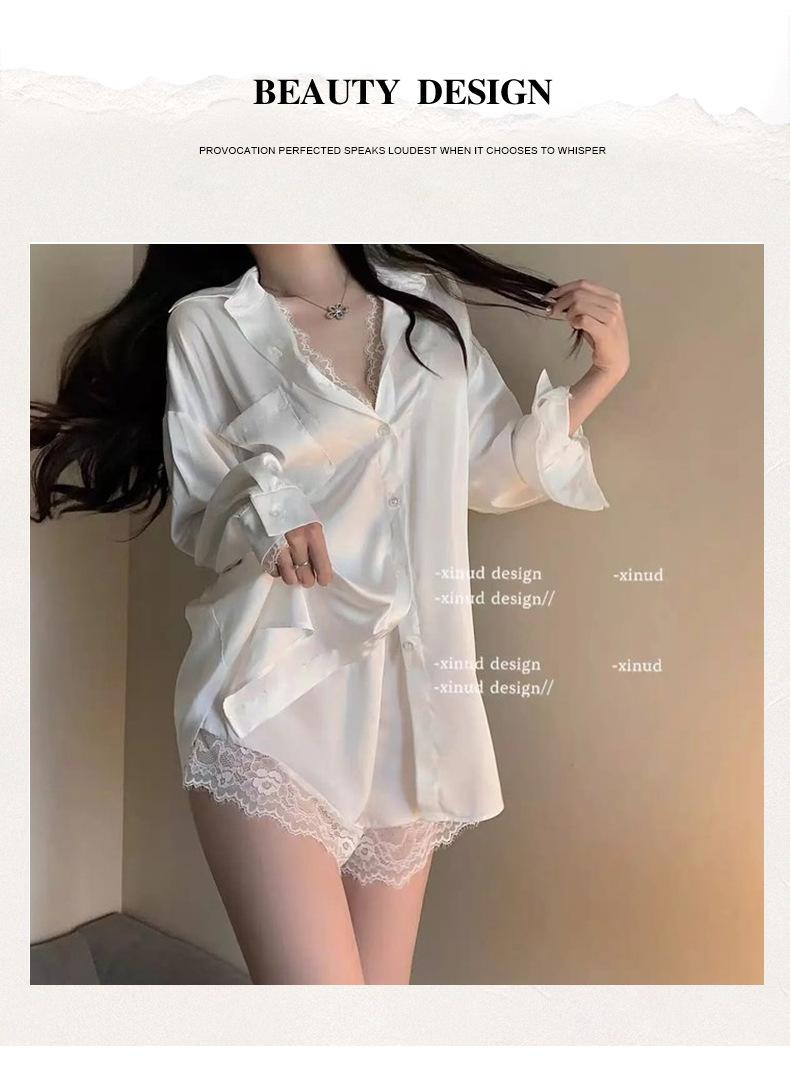 Camisa de Verano Estilo Novio Sexy Talla Grande Pijamas Deseo Puro Encaje Falso Dos Piezas Camisón Ropa para el Hogar Traje