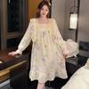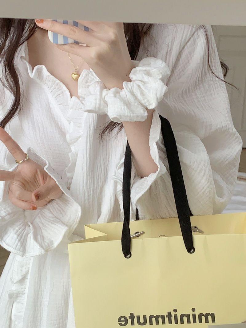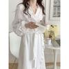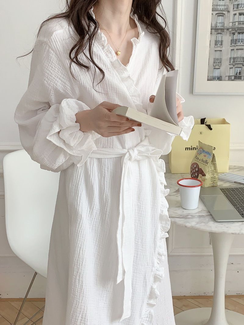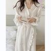 Camisón largo blanco nieve dulce de manga larga para mujer primavera y otoño nuevo pijama exterior suelto con volantes ropa de casa