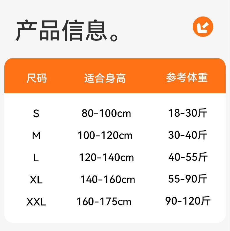 S size recommended height 80-100cm, M size recommended height 100-120cm, L size recommended height 120-140cm, ...