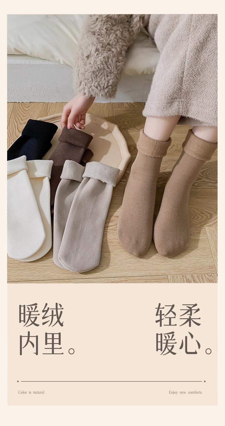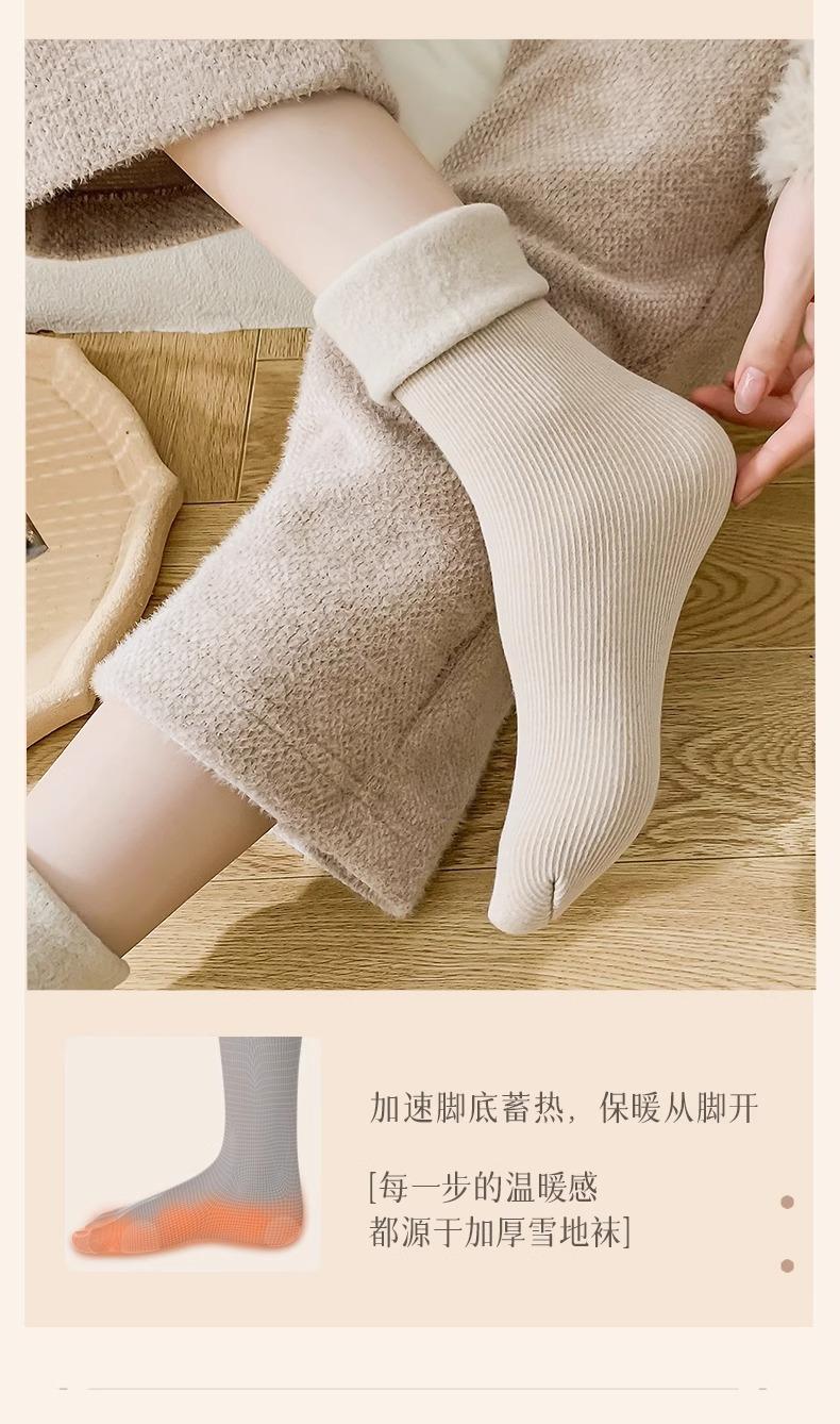 Calcetines de mujer de invierno con forro polar, calcetines gruesos de tubo alto, calcetines cálidos para la nieve de otoño e invierno, calcetines casuales para el hogar, calcetines de piso antideslizantes