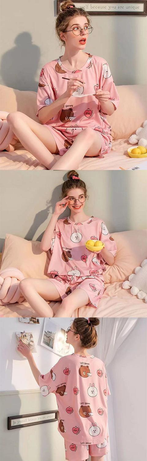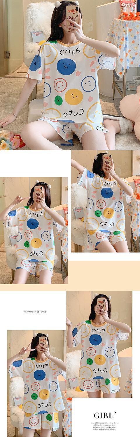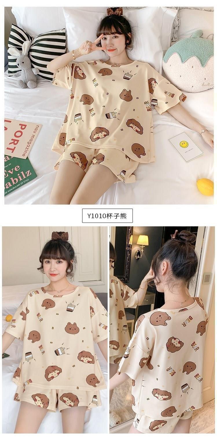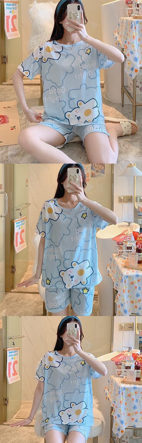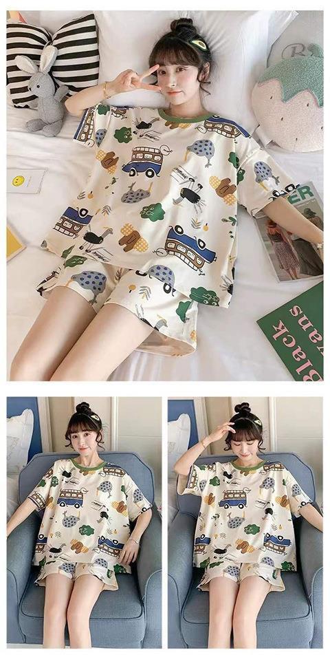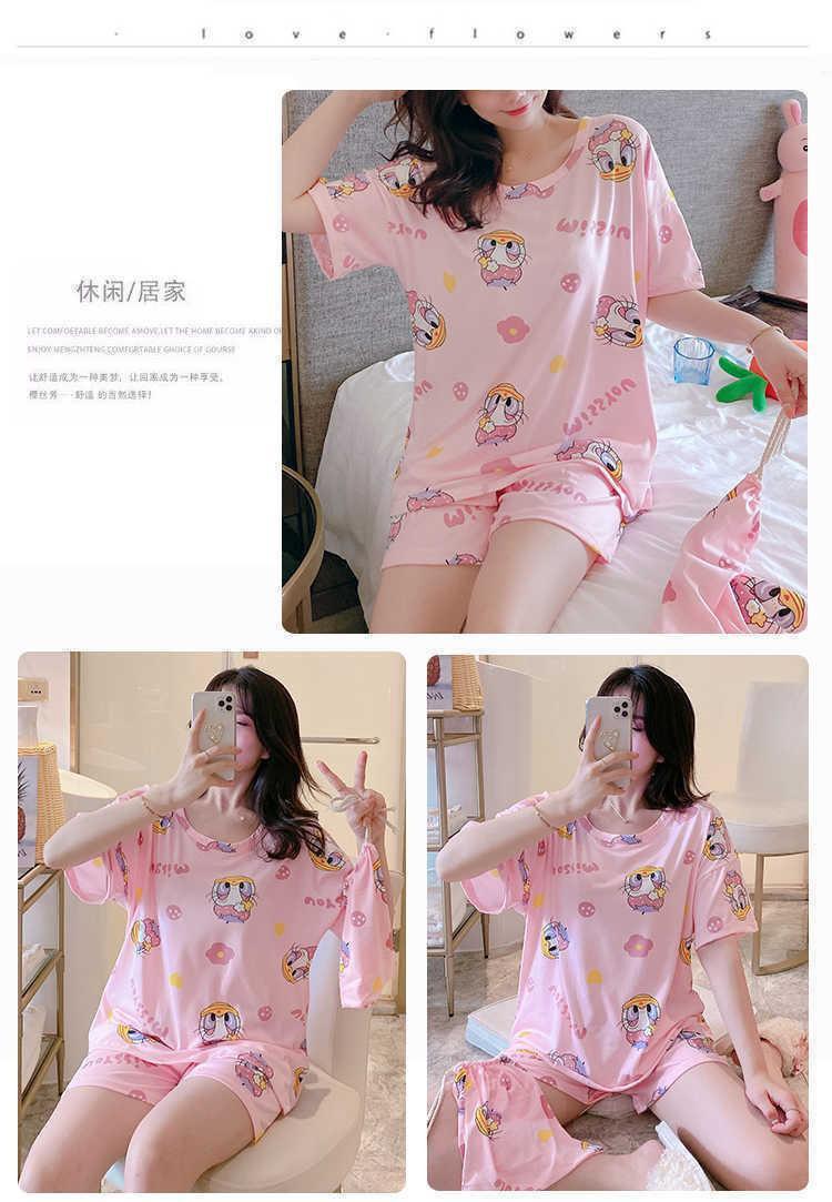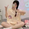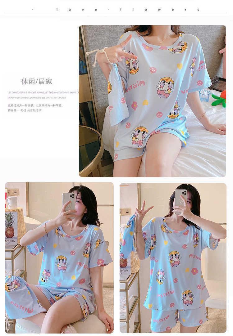 2025 Novos Pijamas Femininos Verão Plus Size Manga Curta Shorts Desenho Animado Bonito Pequenas Roupas de Verão Femininas Terno para Casa