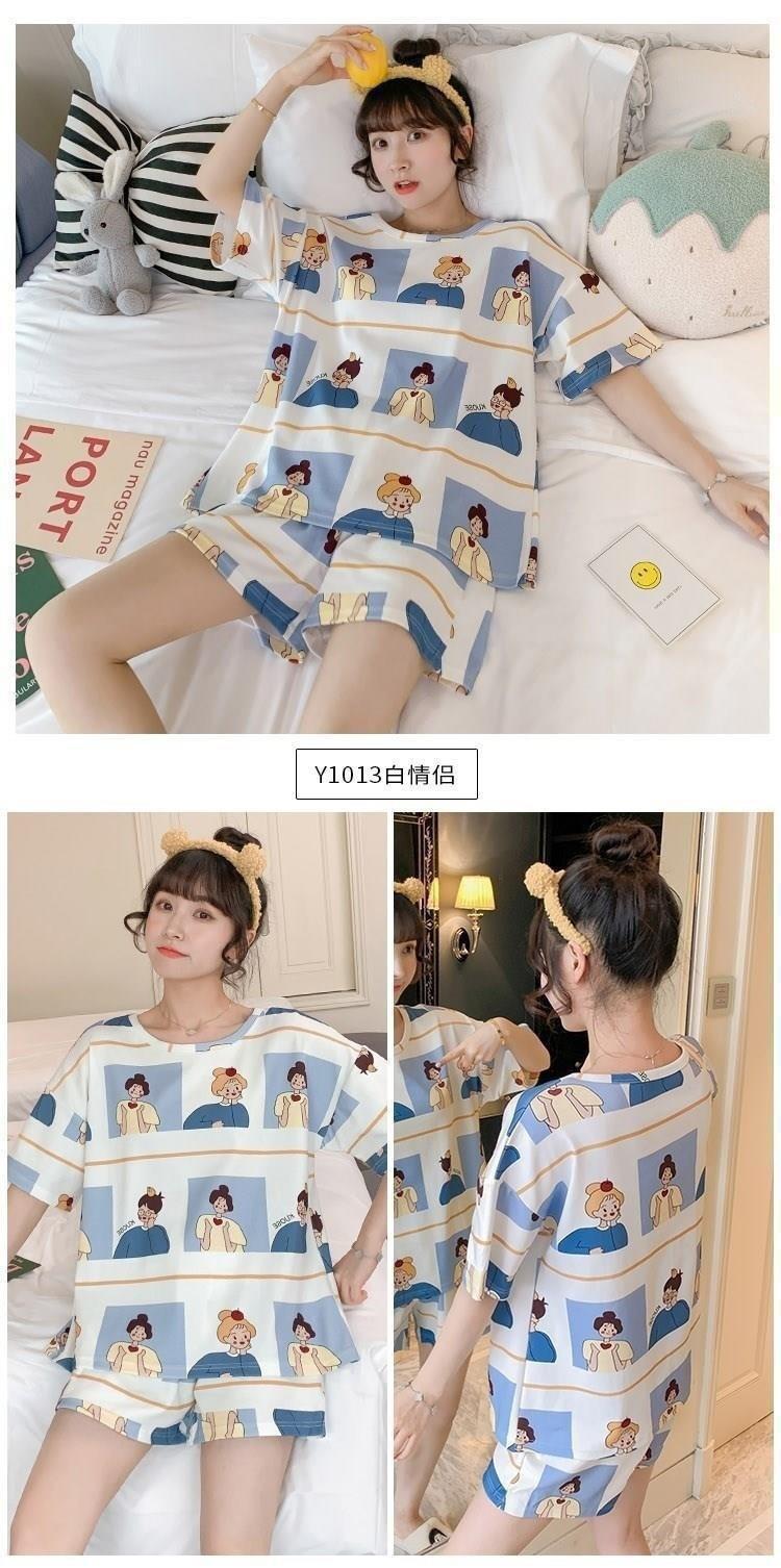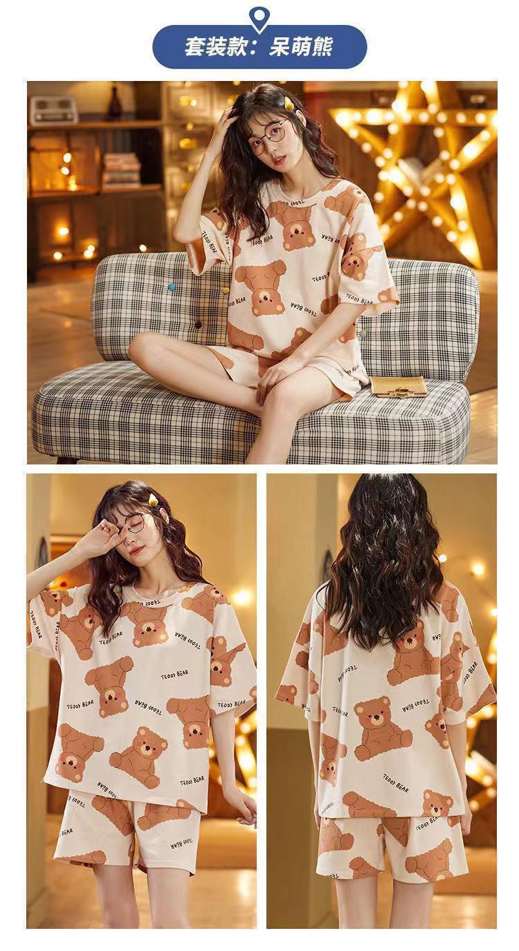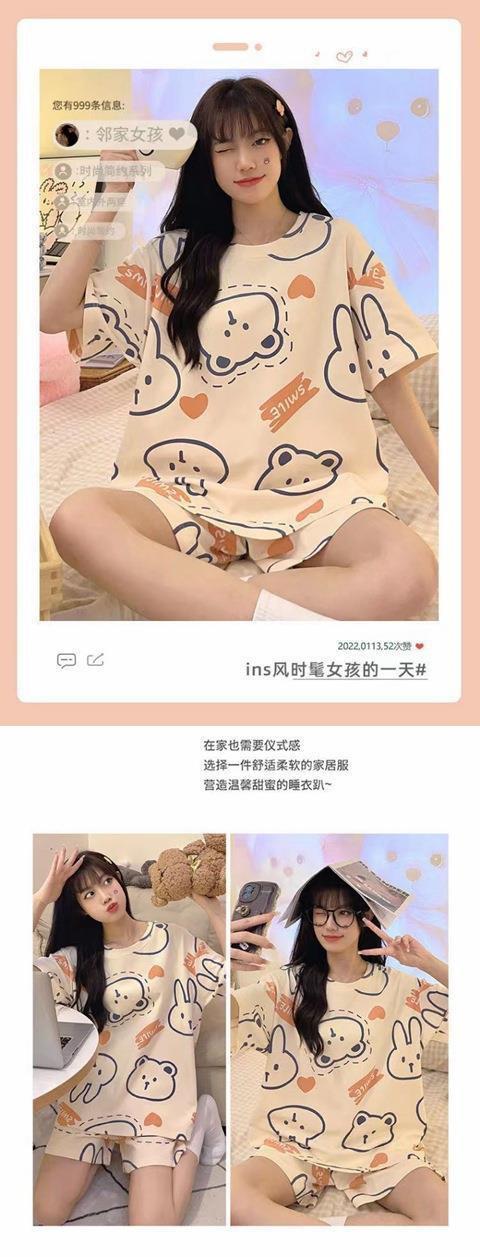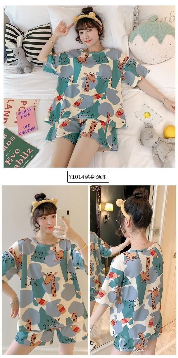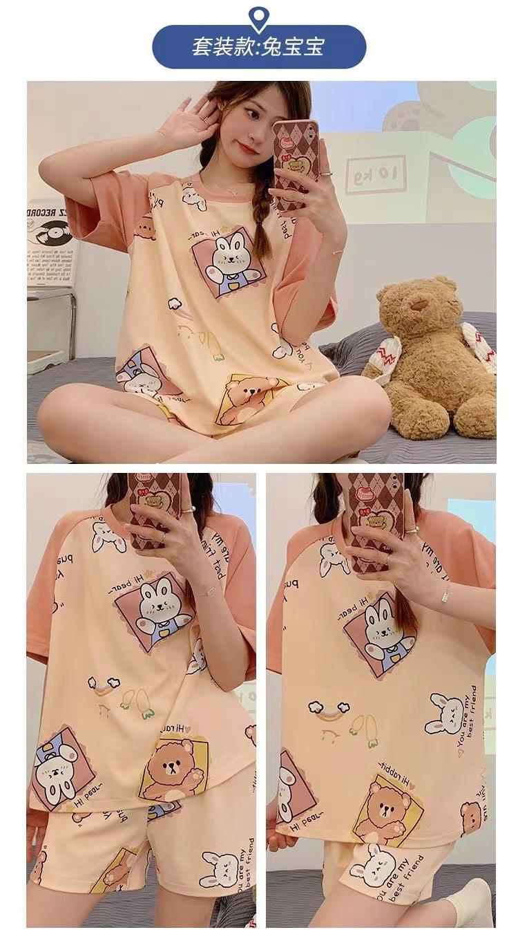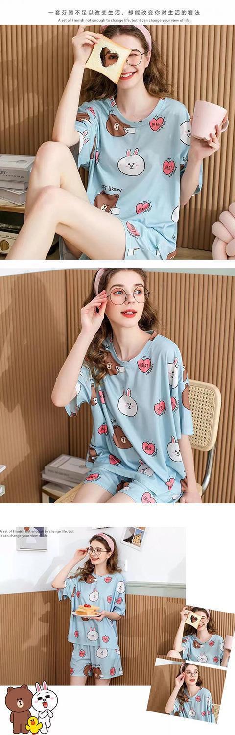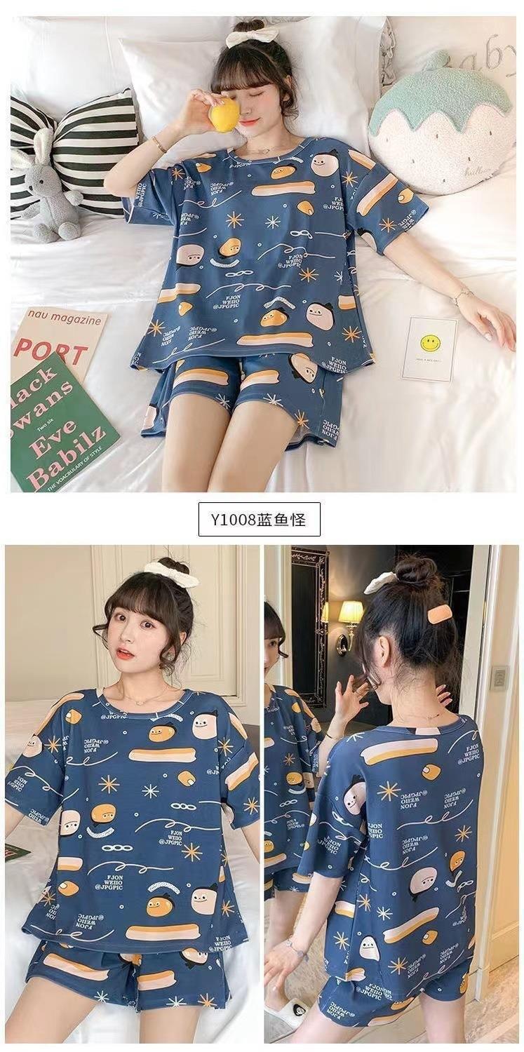 2025 Novos Pijamas Femininos Verão Plus Size Manga Curta Shorts Desenho Animado Bonito Pequenas Roupas de Verão Femininas Terno para Casa