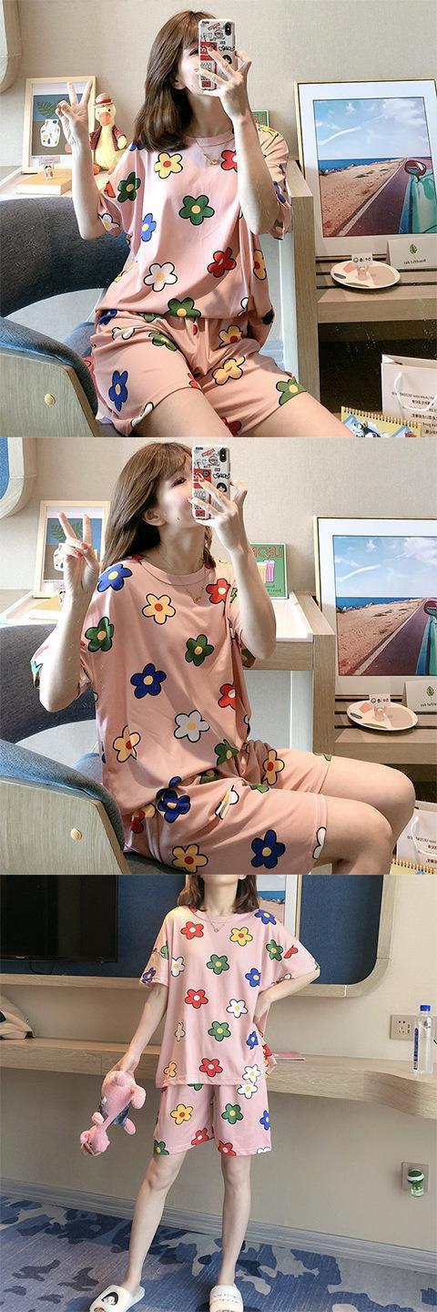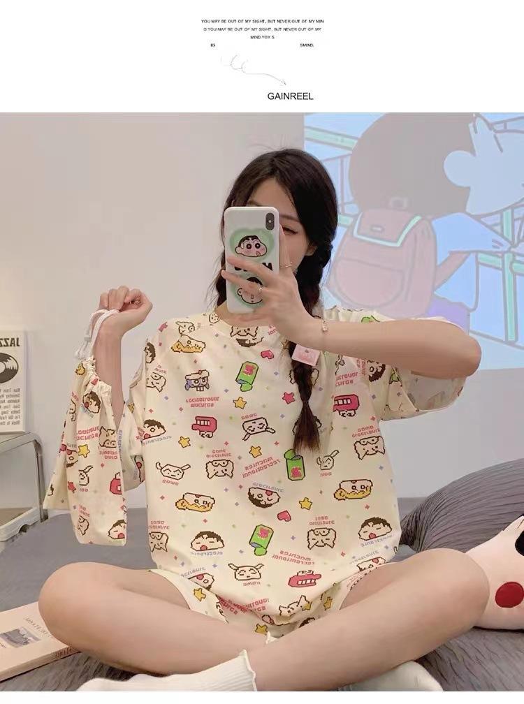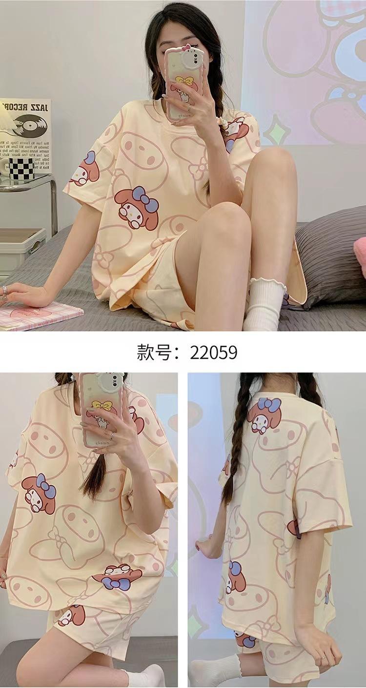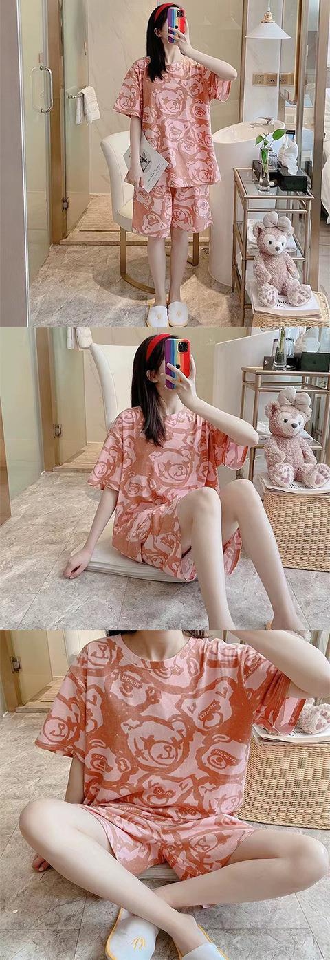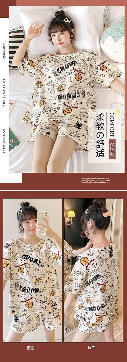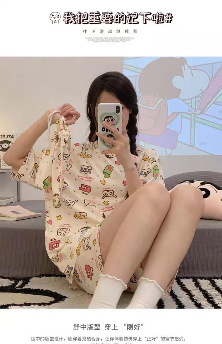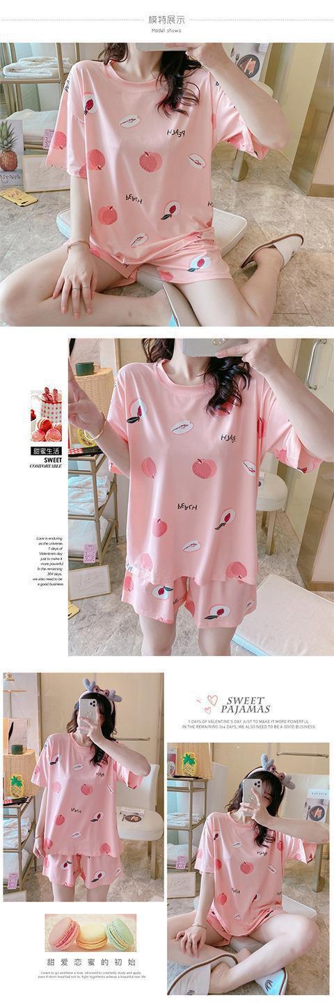 2025 Novos Pijamas Femininos Verão Plus Size Manga Curta Shorts Desenho Animado Bonito Pequenas Roupas de Verão Femininas Terno para Casa