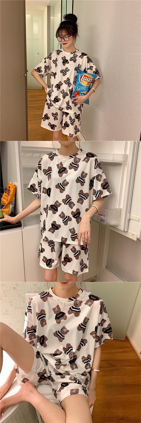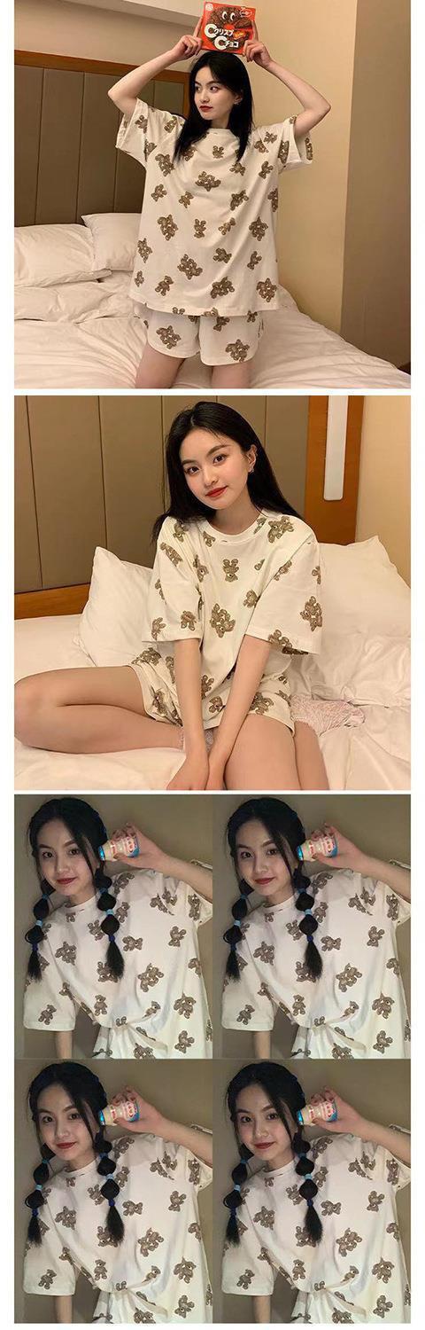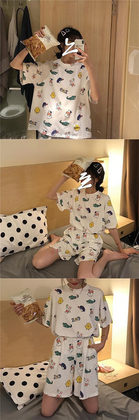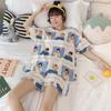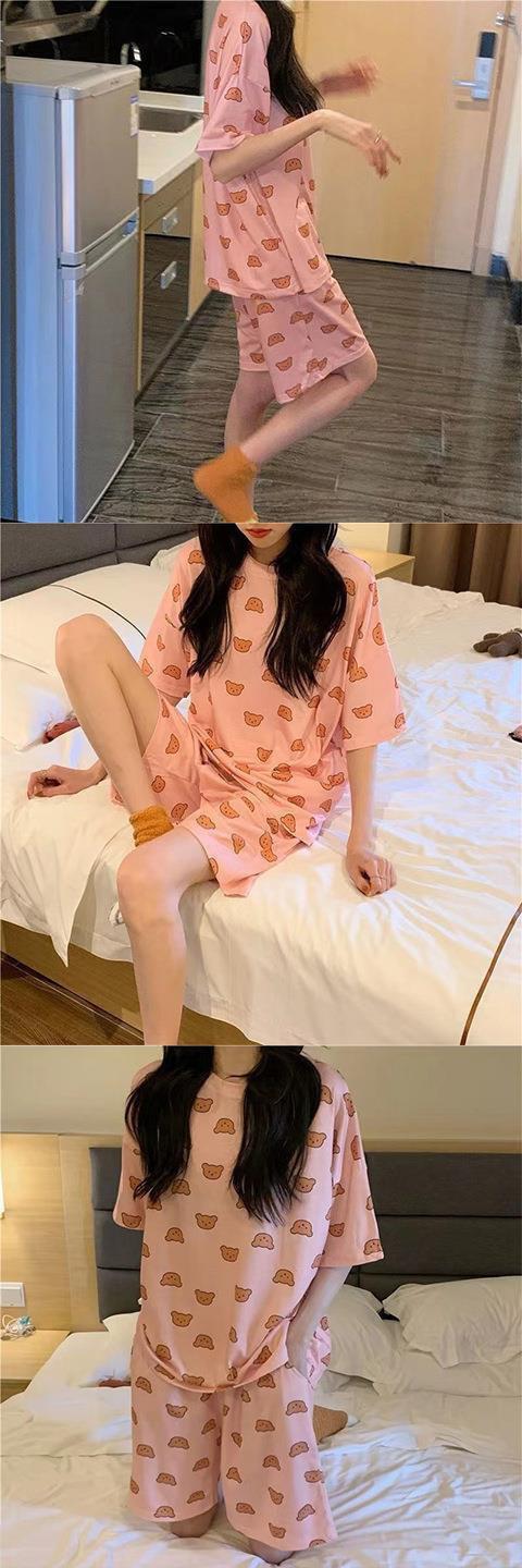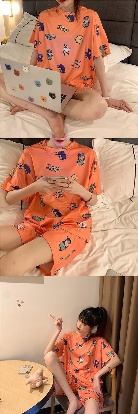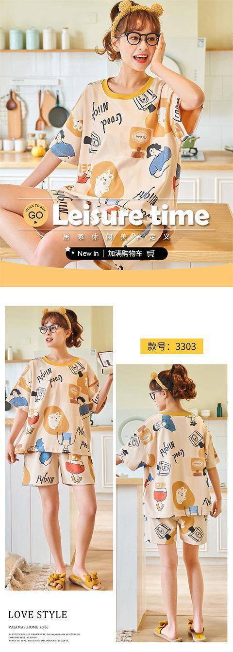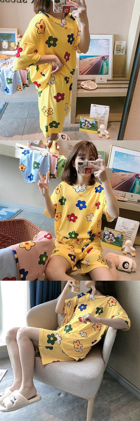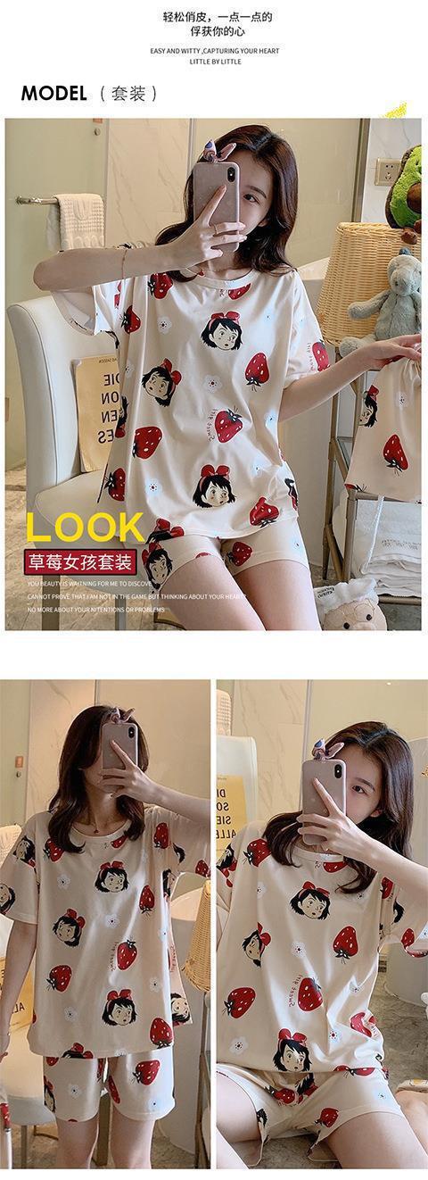 2025 Novos Pijamas Femininos Verão Plus Size Manga Curta Shorts Desenho Animado Bonito Pequenas Roupas de Verão Femininas Terno para Casa