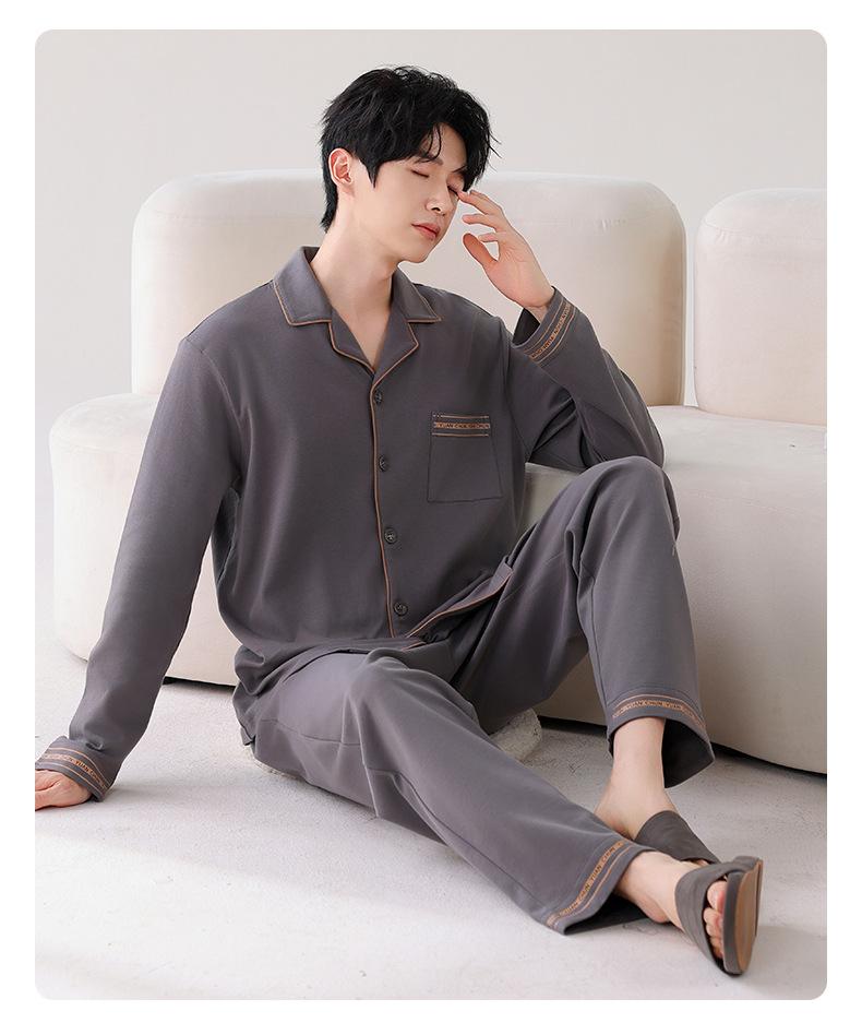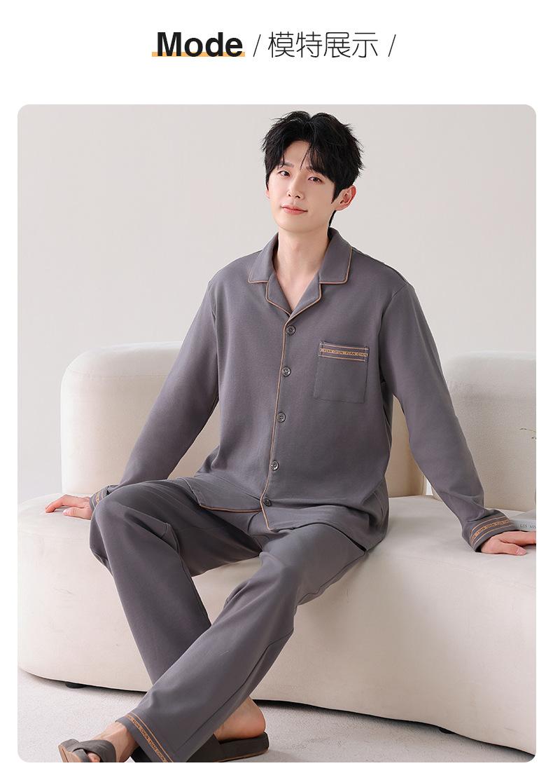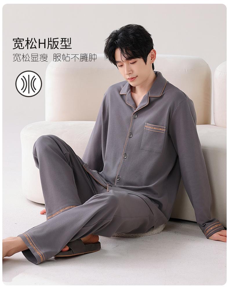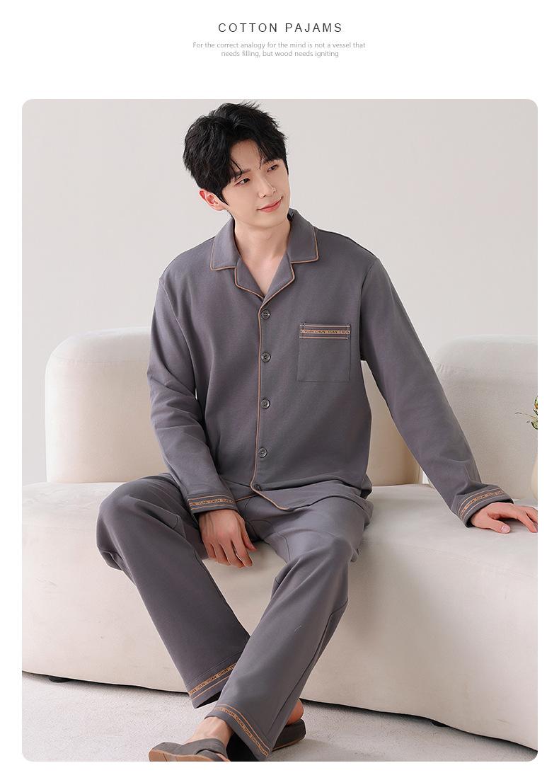Pijama de algodón para hombre, cárdigan de manga larga para primavera y otoño, ropa de abrigo informal de talla grande, ropa de casa de algodón, traje