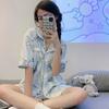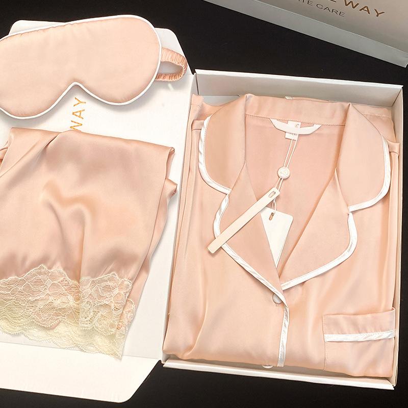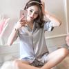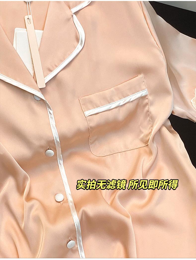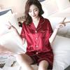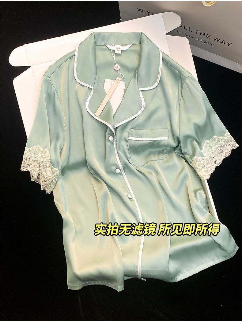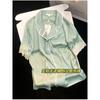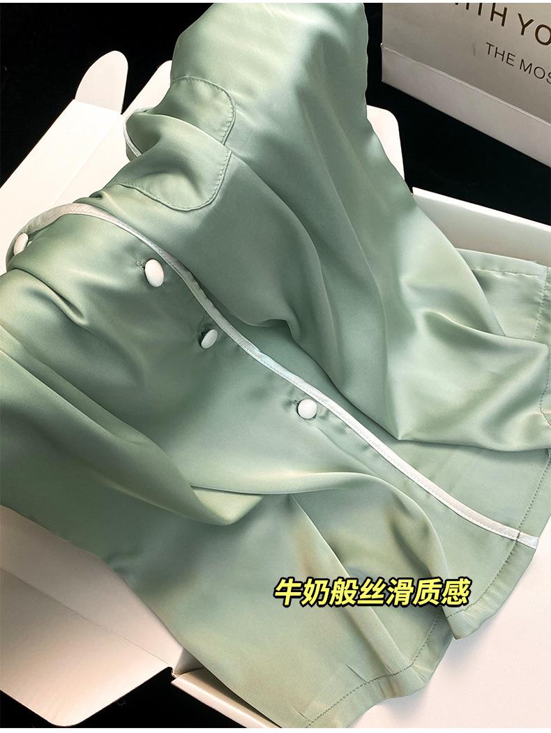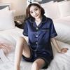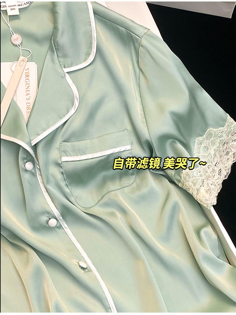 Pijama de Seda de Hielo de Alta Gama para Mujer Verano Manga Corta Shorts Ropa de Casa Dulce y Linda Tipo Seda para Traje Verano