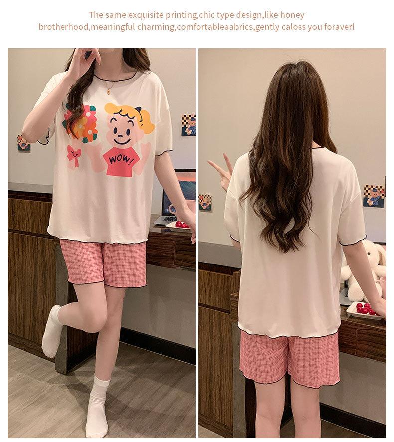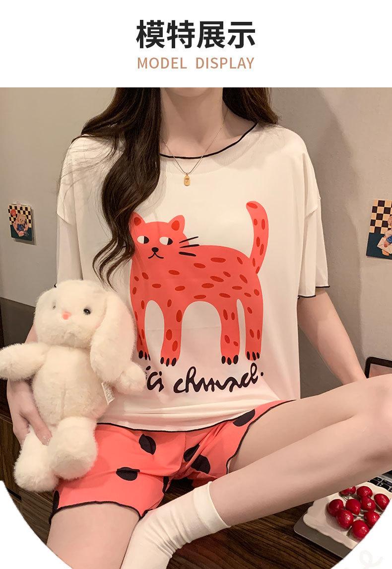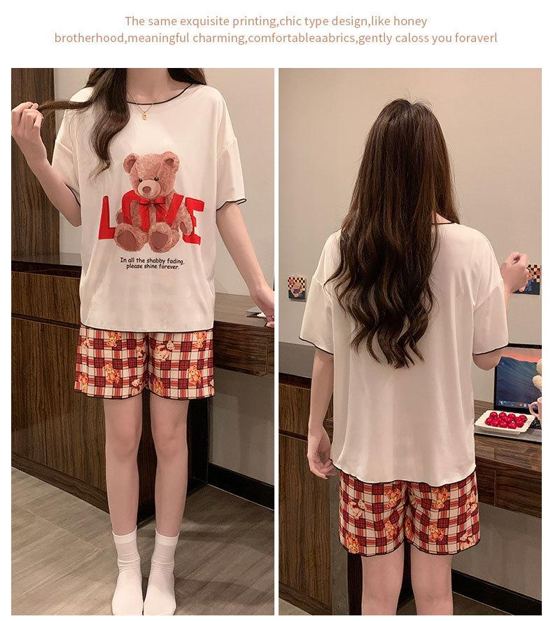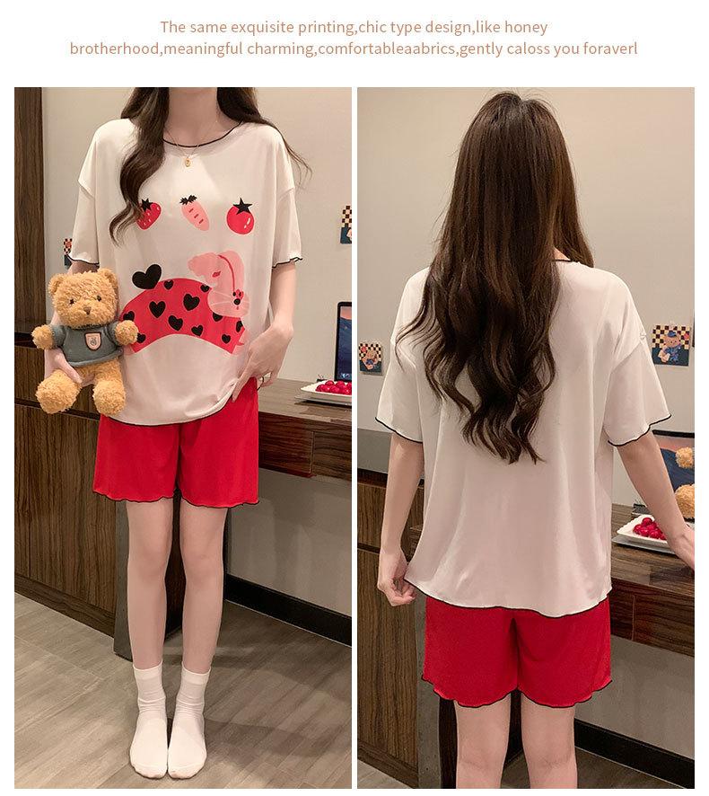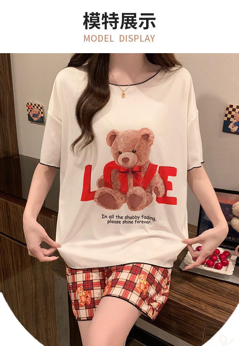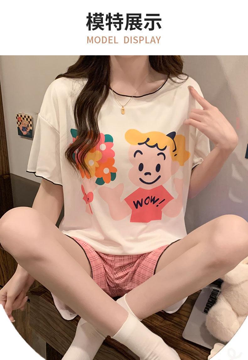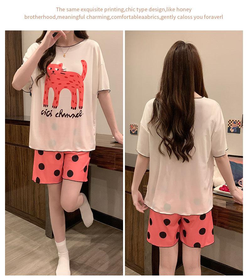 Pijama para Mujer con Almohadillas en el Busto, Pulóver Fino de Verano de Manga Corta, Hilo de Seda Helada, Lindo Conjunto Casual Holgado para el Hogar con Dibujos Animados