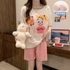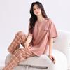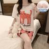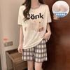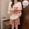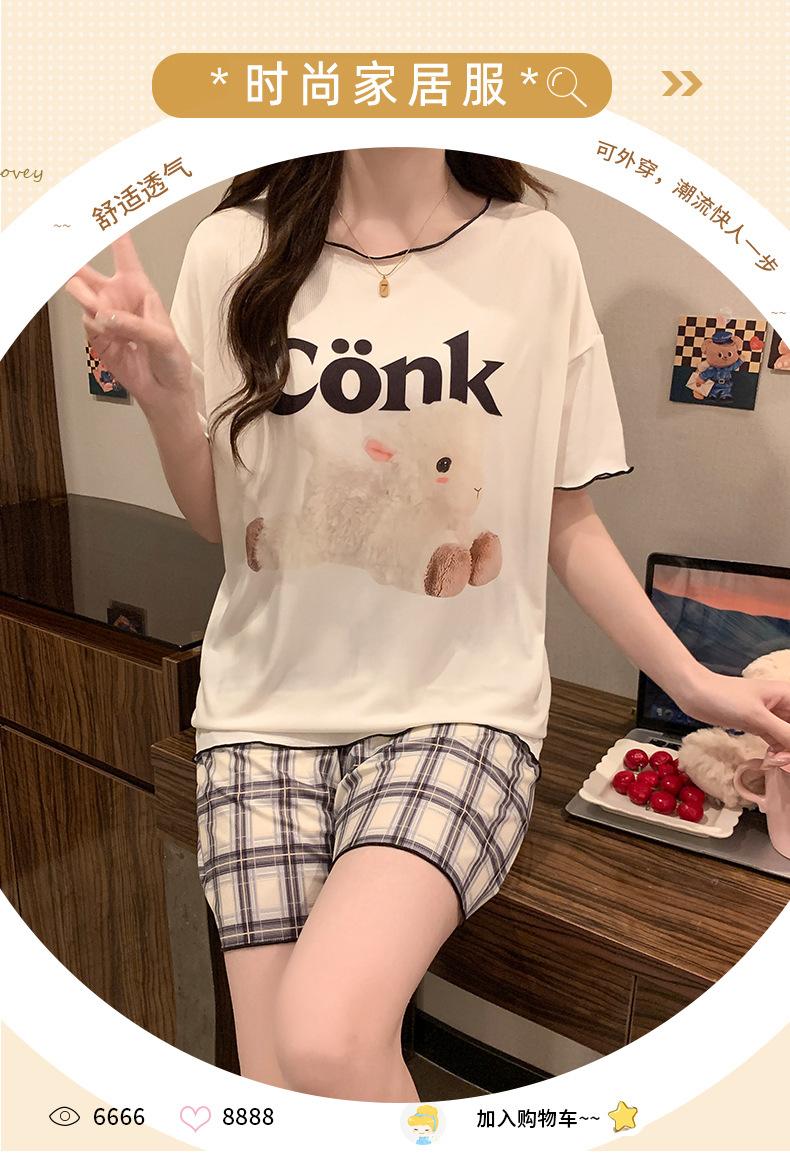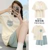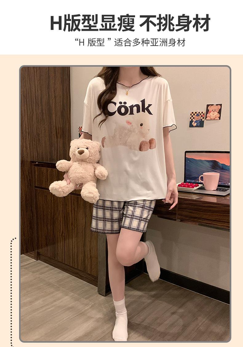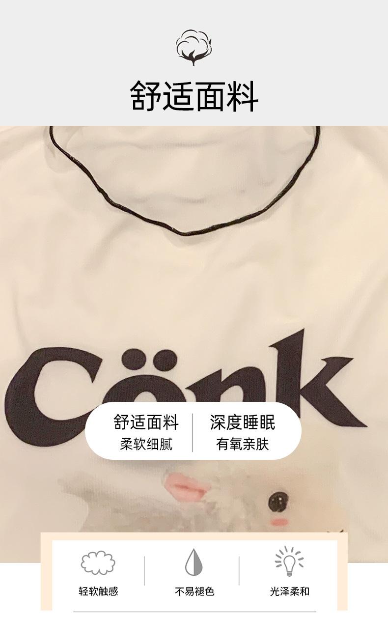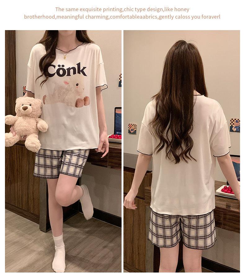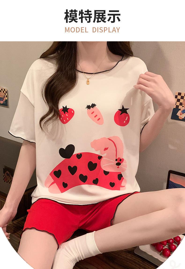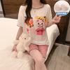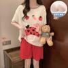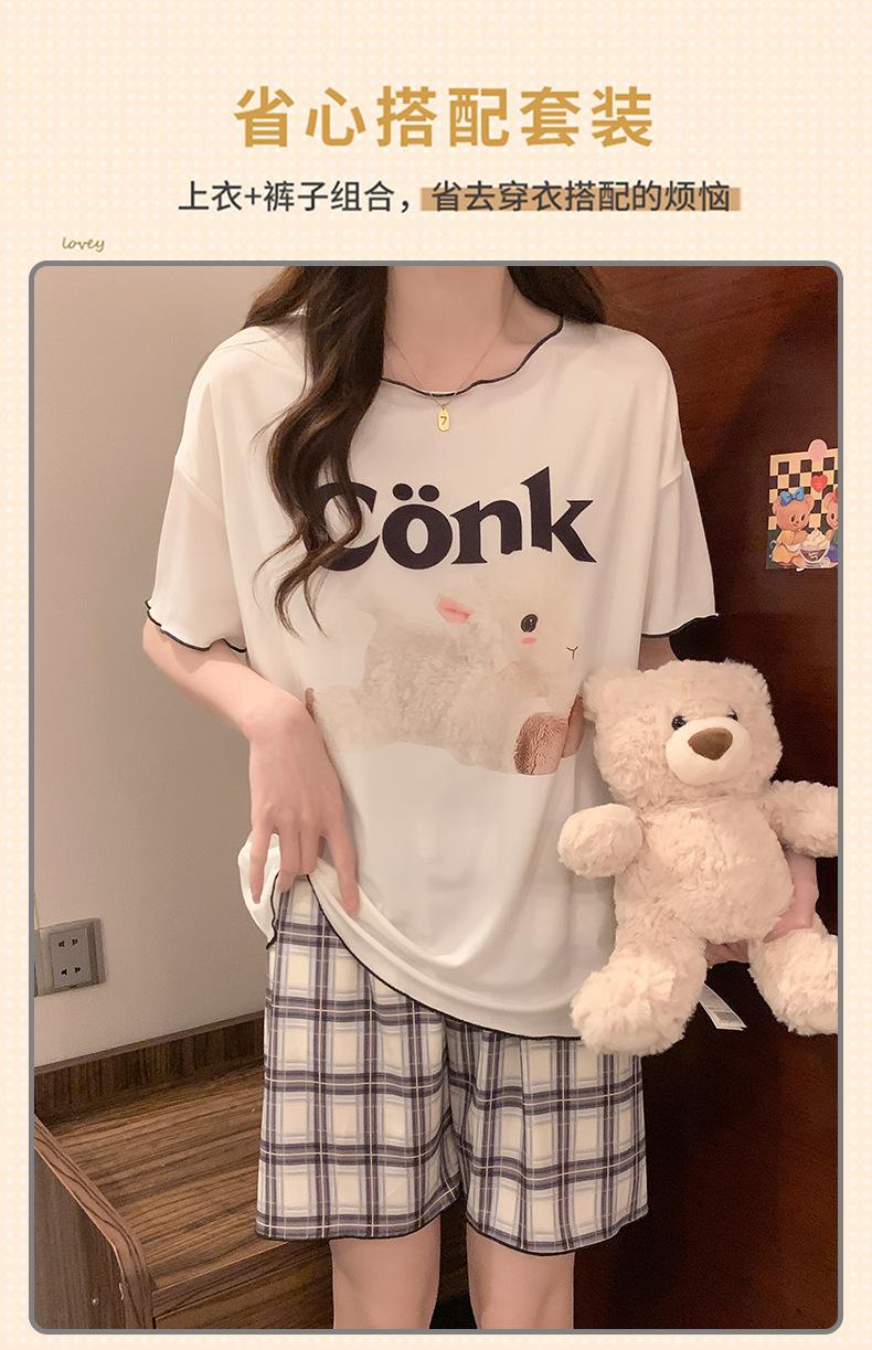 Pijama para Mujer con Almohadillas en el Busto, Pulóver Fino de Verano de Manga Corta, Hilo de Seda Helada, Lindo Conjunto Casual Holgado para el Hogar con Dibujos Animados