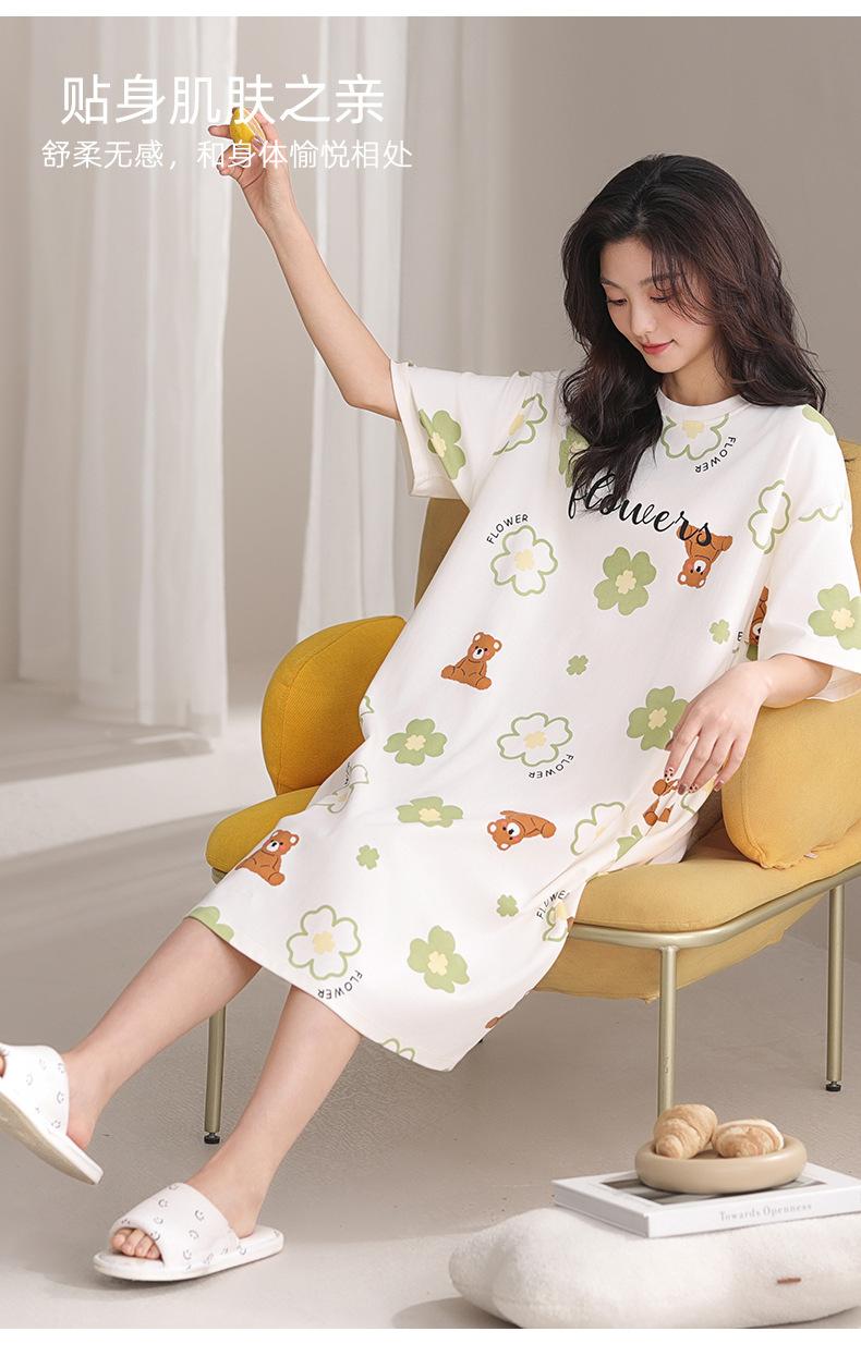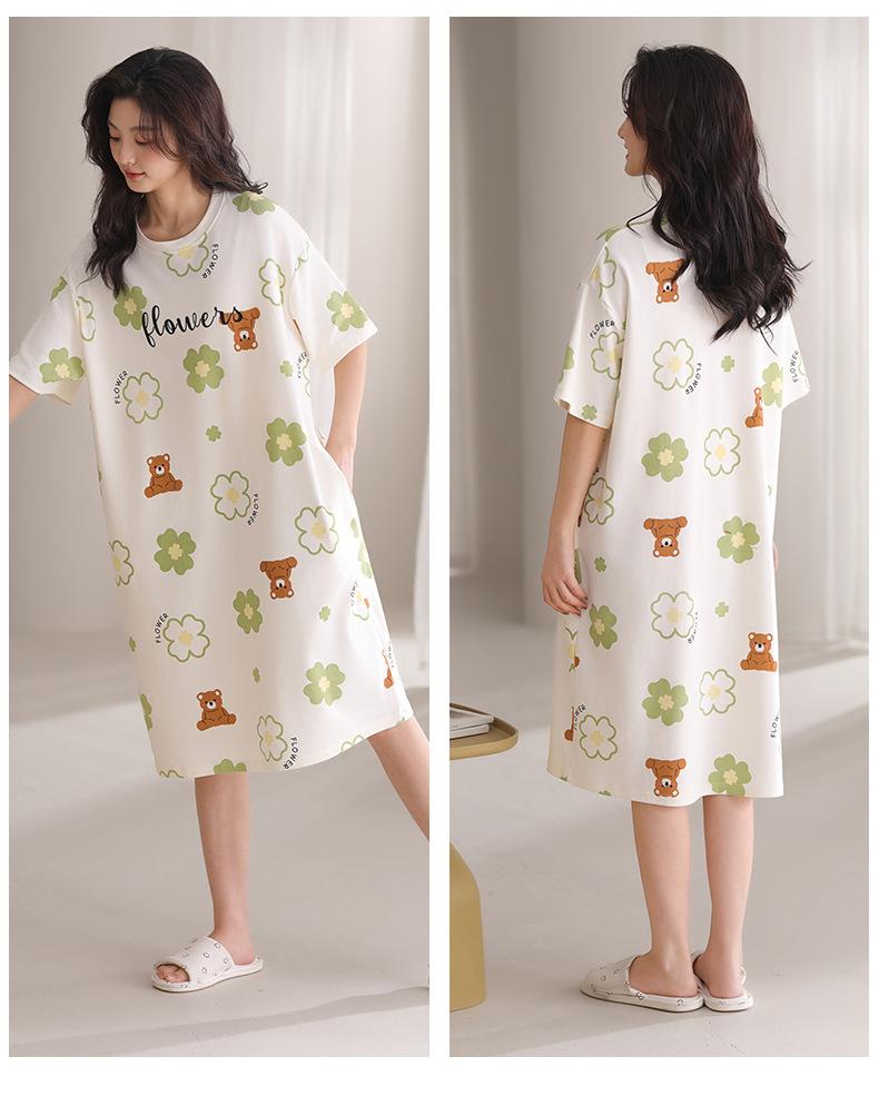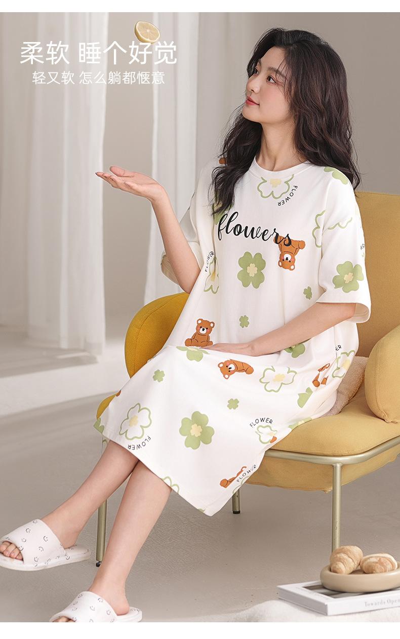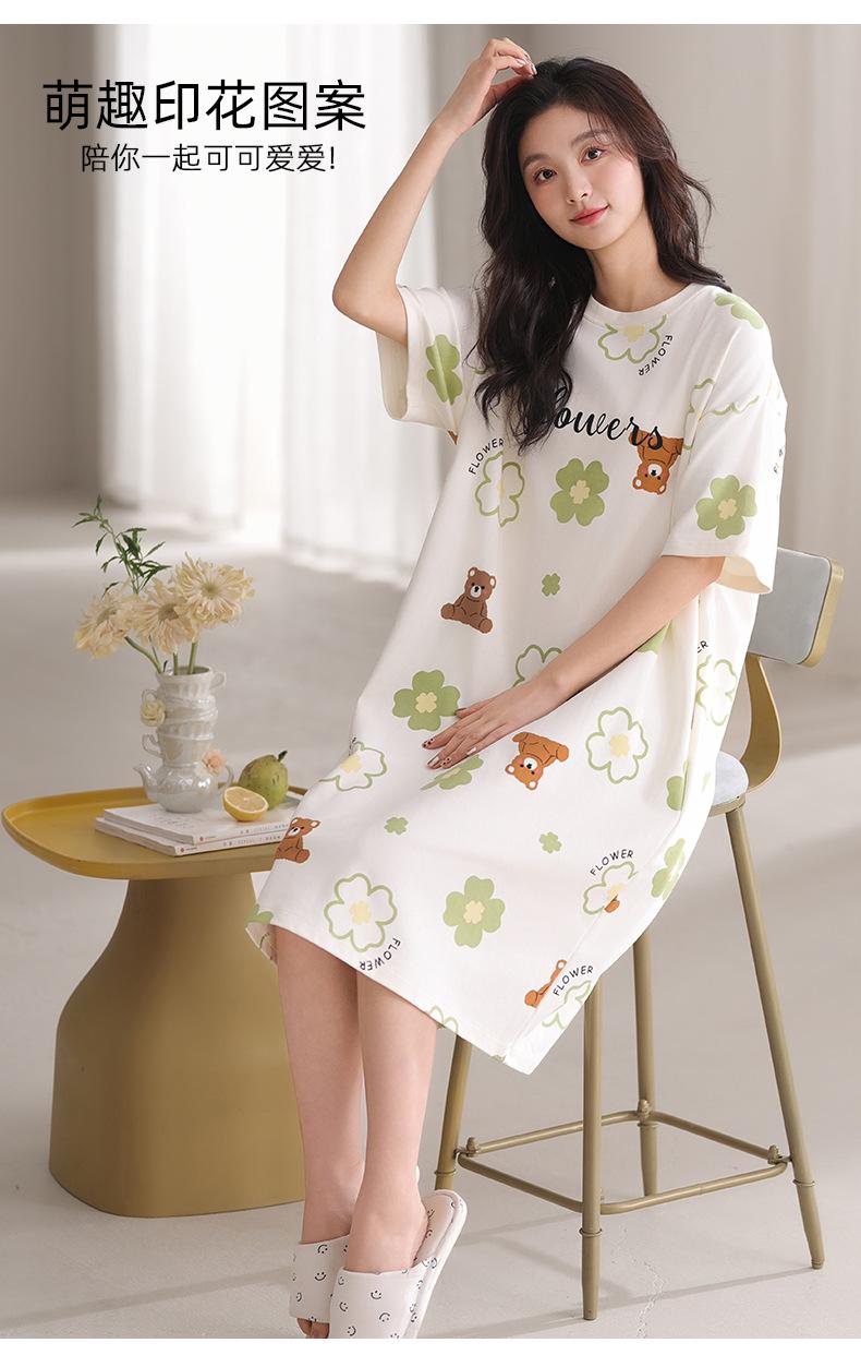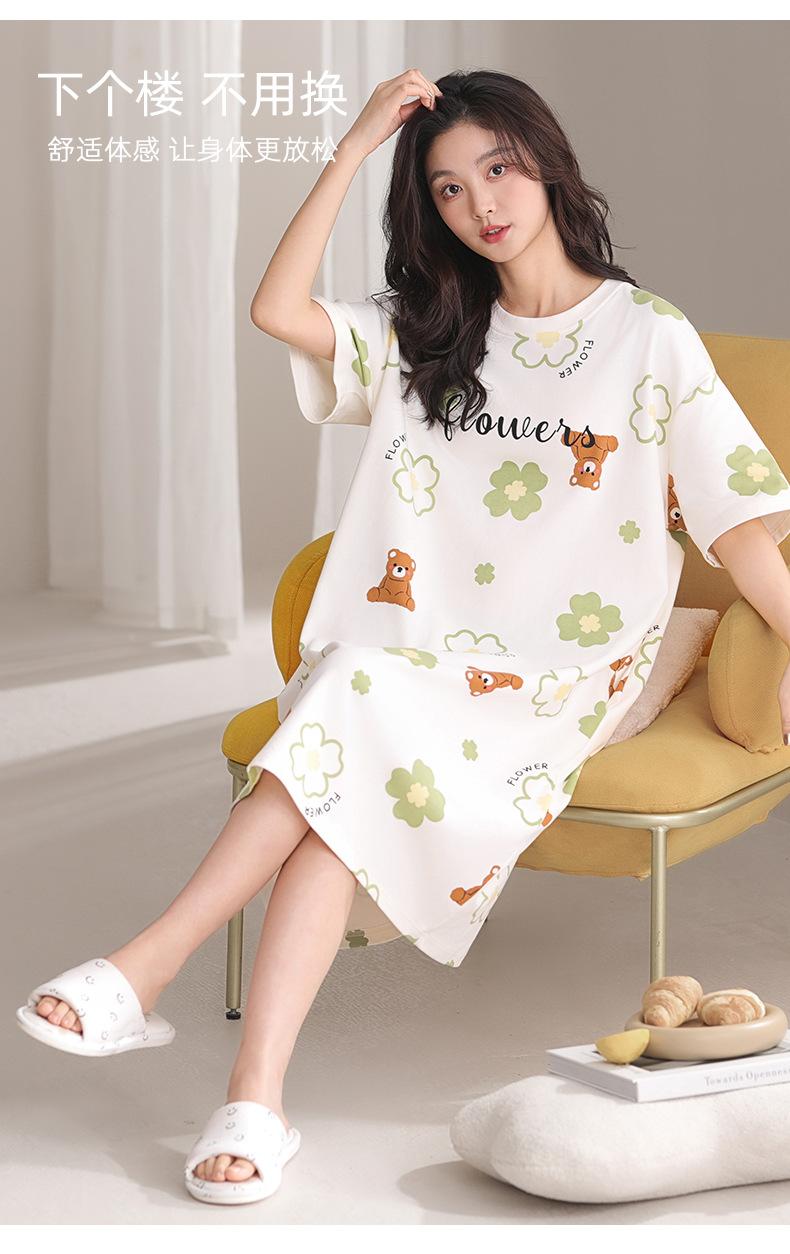 Camisón de Verano para Niña Vestido Casual Holgado Cuello Redondo Estilo Delgado con Almohadilla para el Busto Incorporada Estilo Coreano Rayado Ropa de Casa al por Mayor
