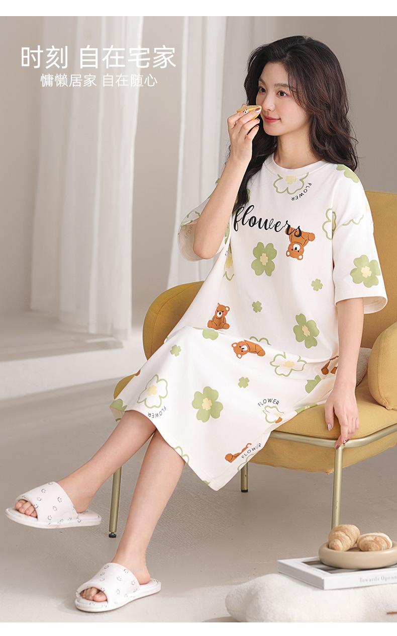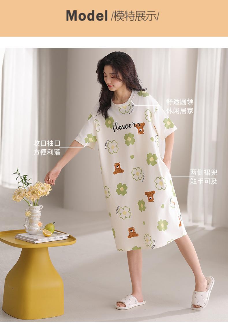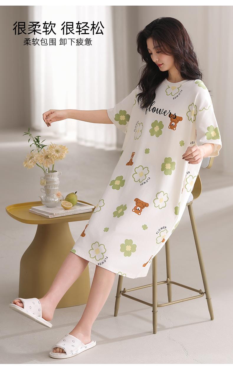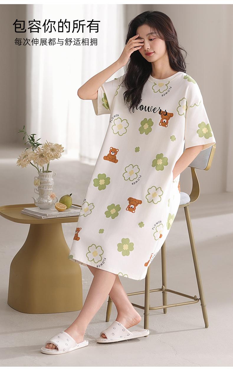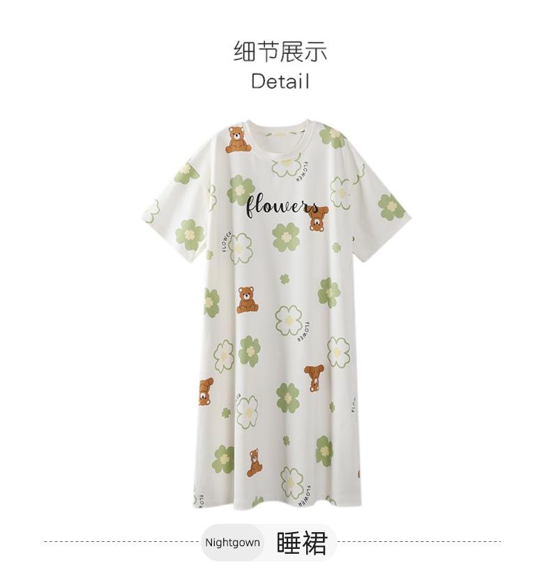 Camisón de Verano para Niña Vestido Casual Holgado Cuello Redondo Estilo Delgado con Almohadilla para el Busto Incorporada Estilo Coreano Rayado Ropa de Casa al por Mayor
