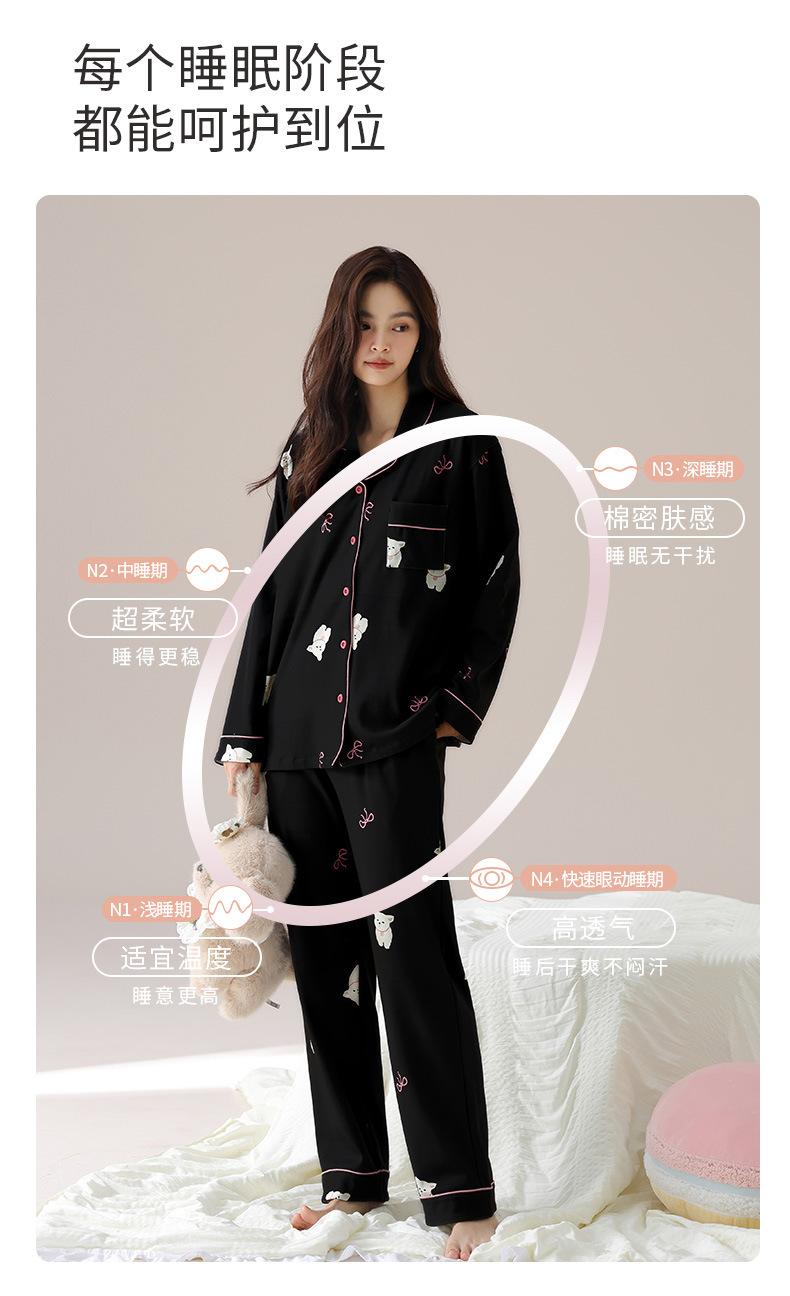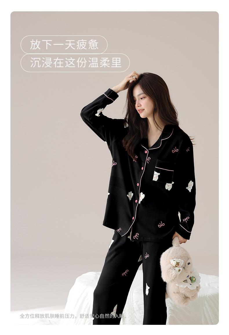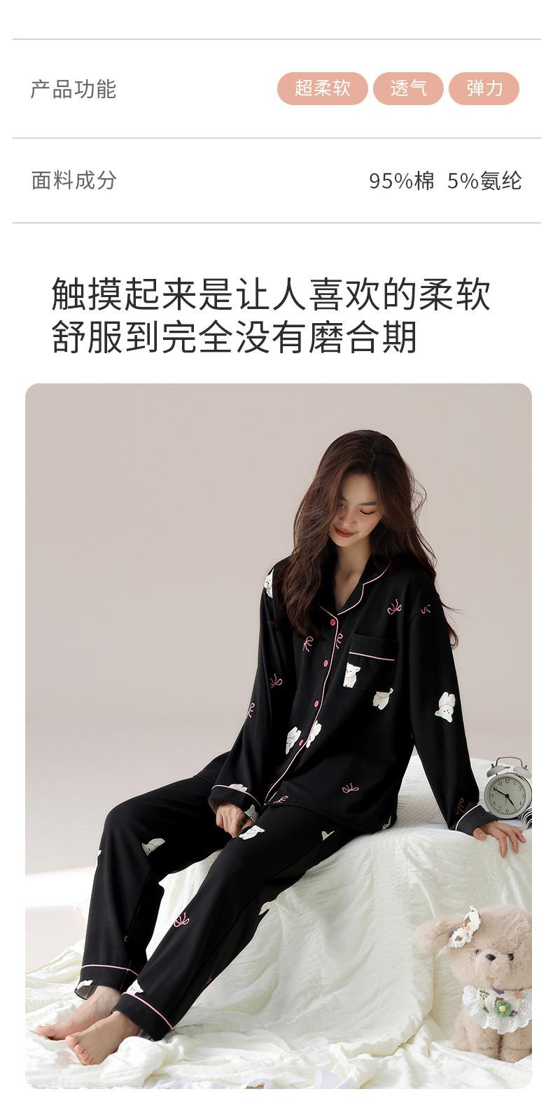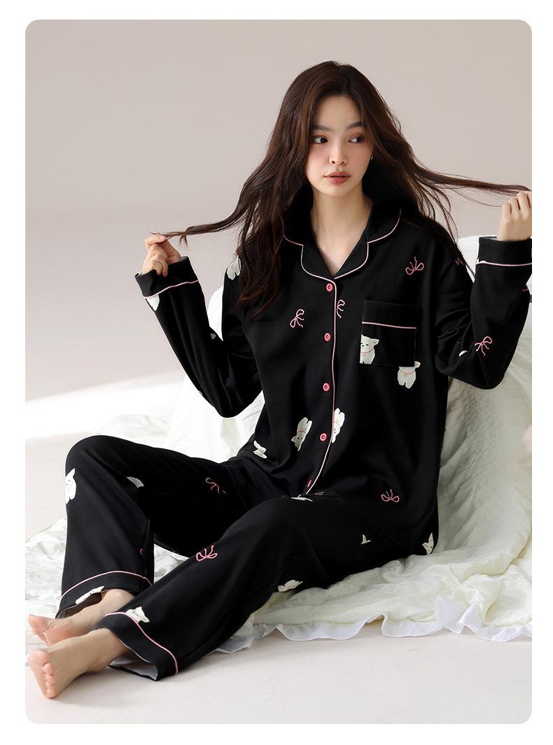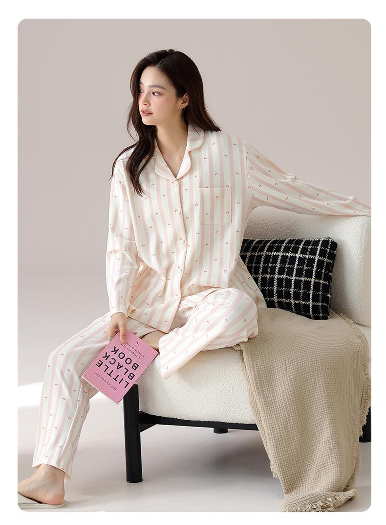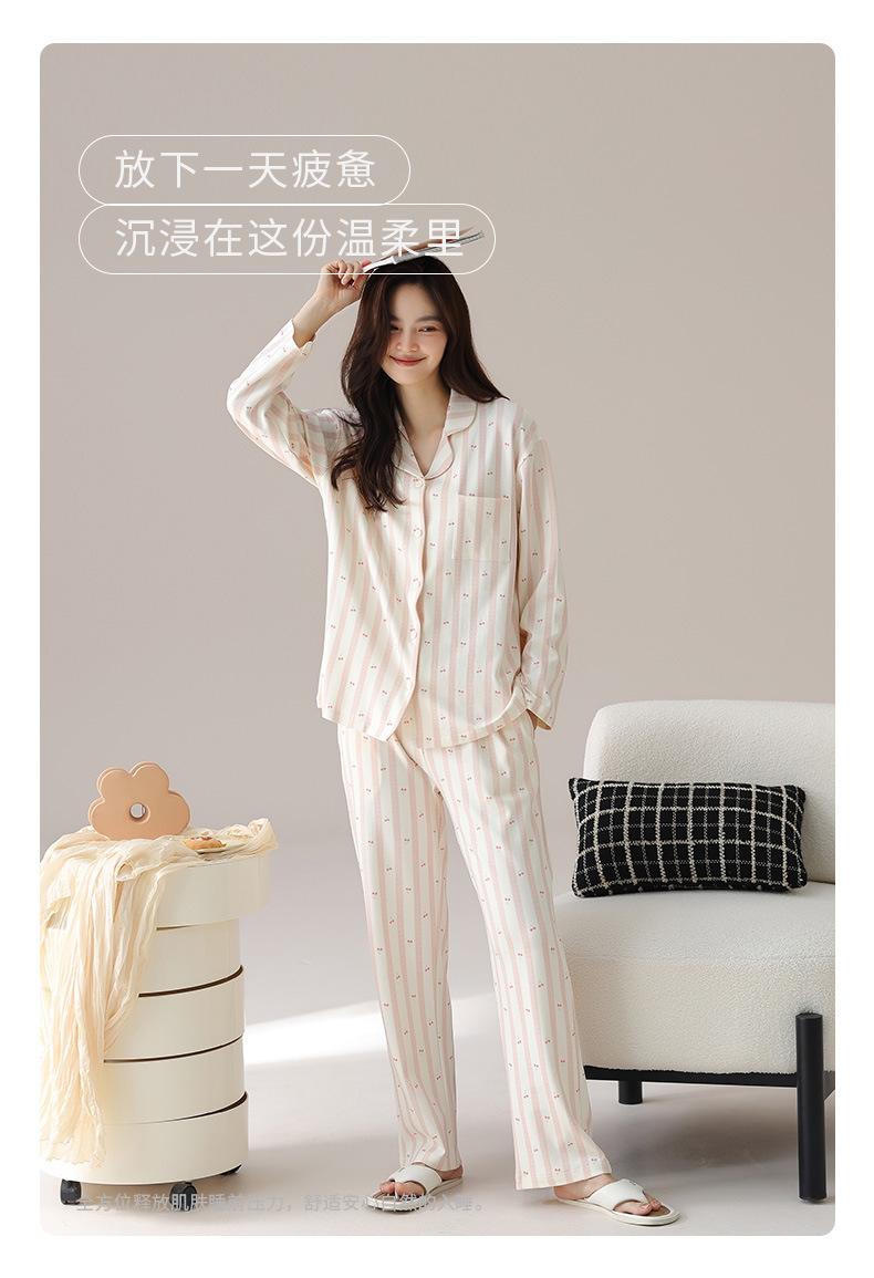 Pijamas de algodón de manga larga para mujer, ropa de casa sencilla y bonita de talla grande, para primavera y otoño, 2025