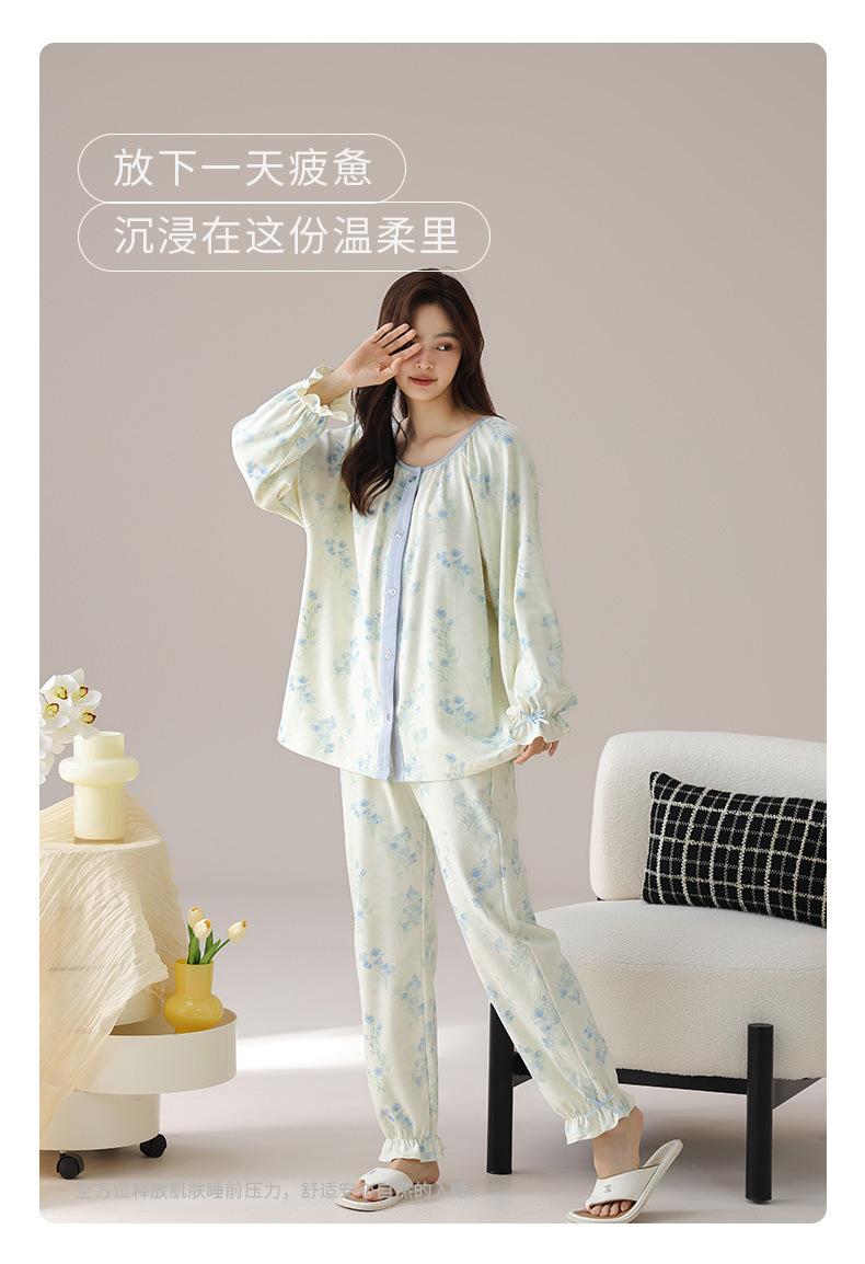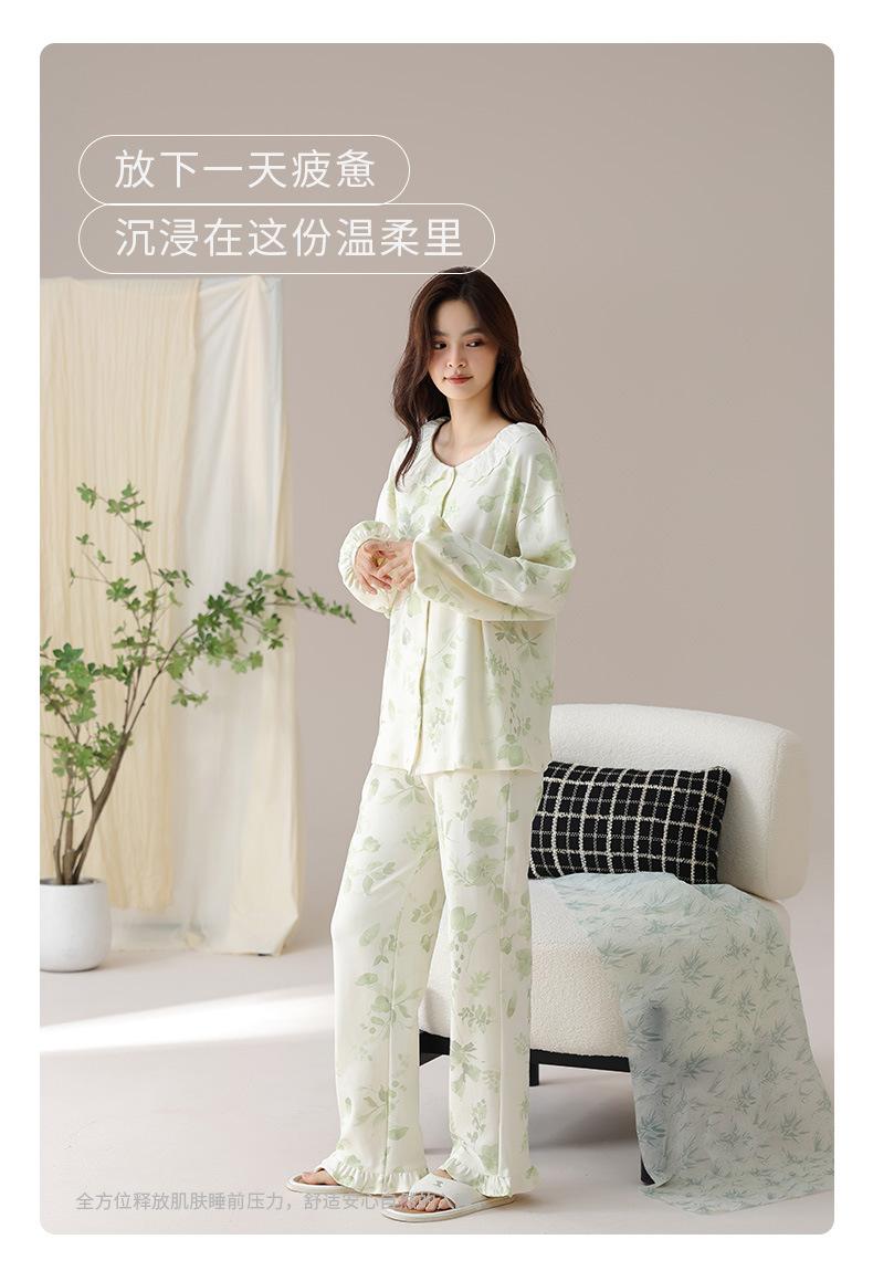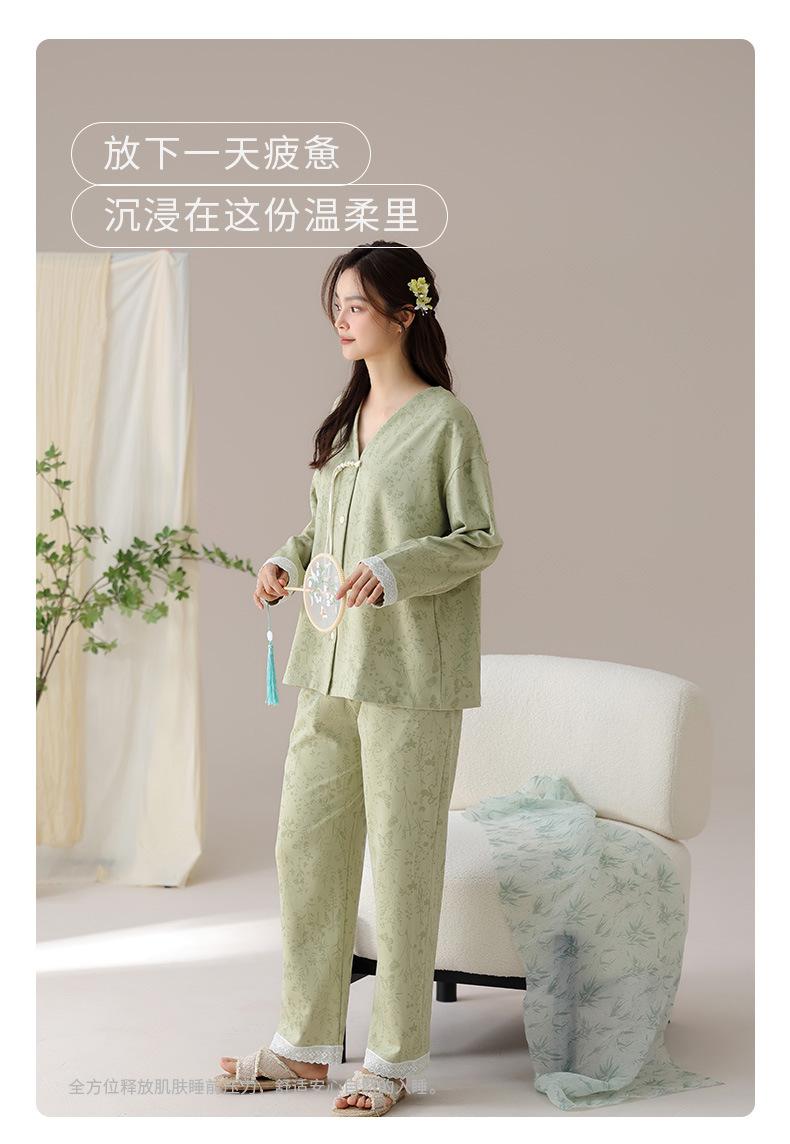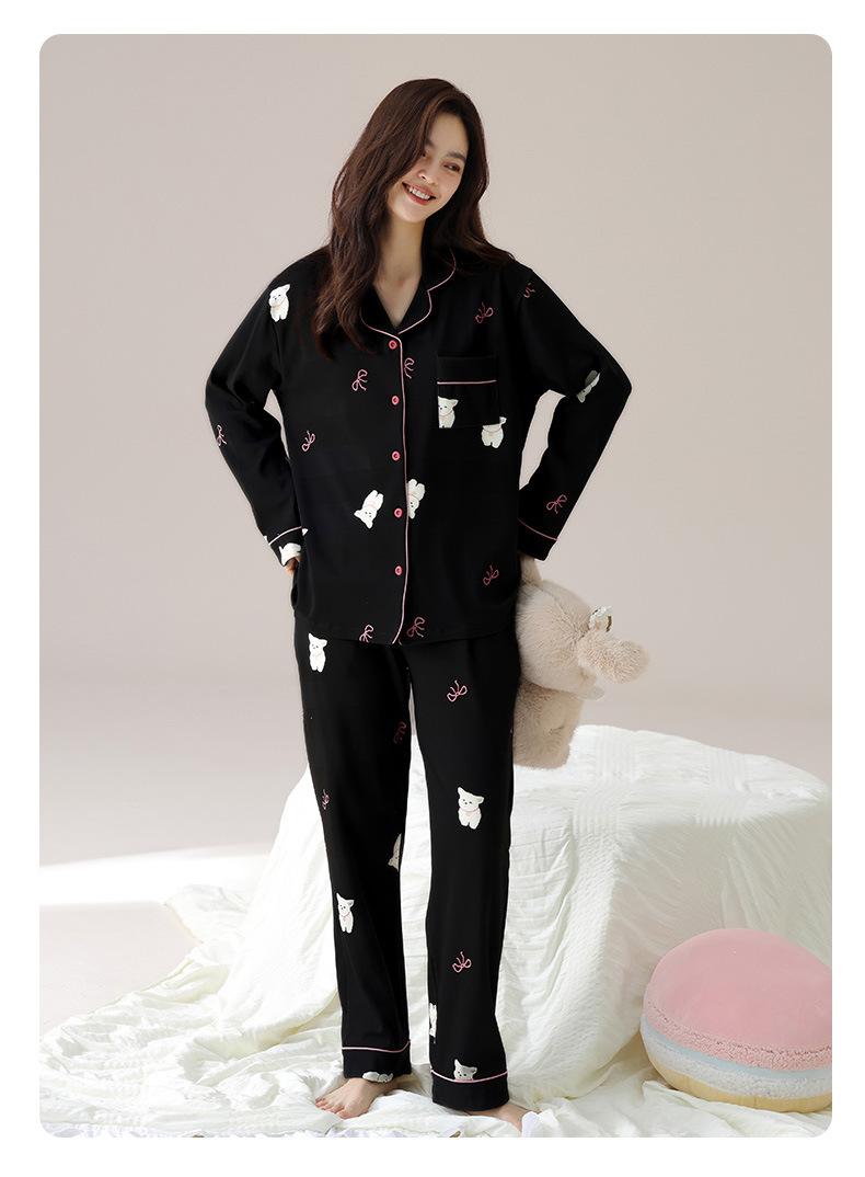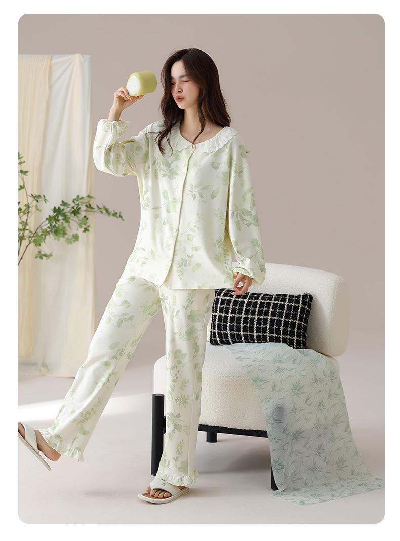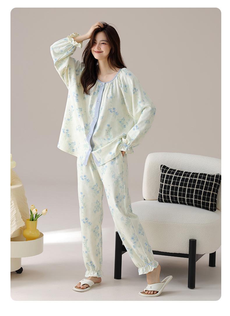 Pijamas de algodón de manga larga para mujer, ropa de casa sencilla y bonita de talla grande, para primavera y otoño, 2025