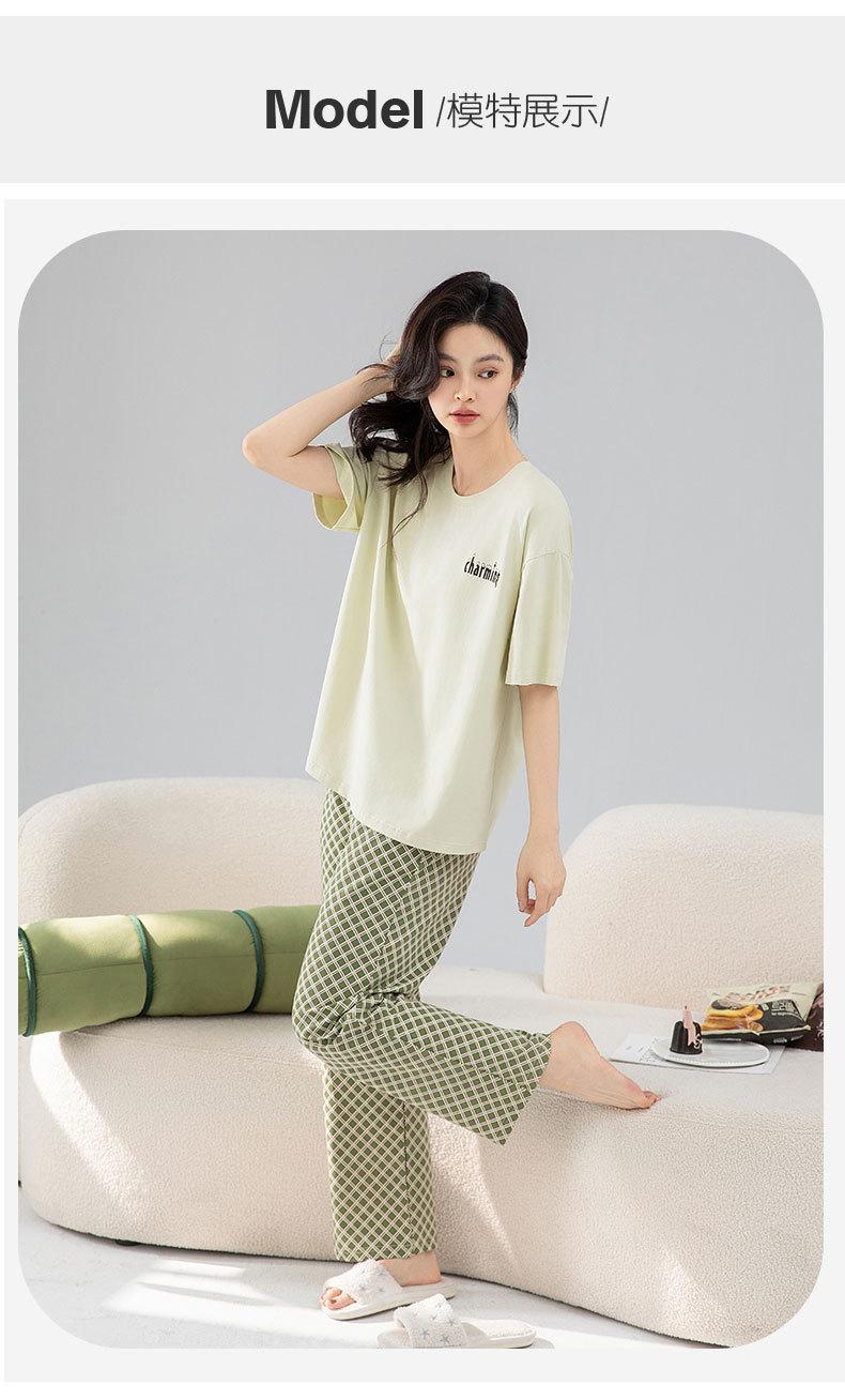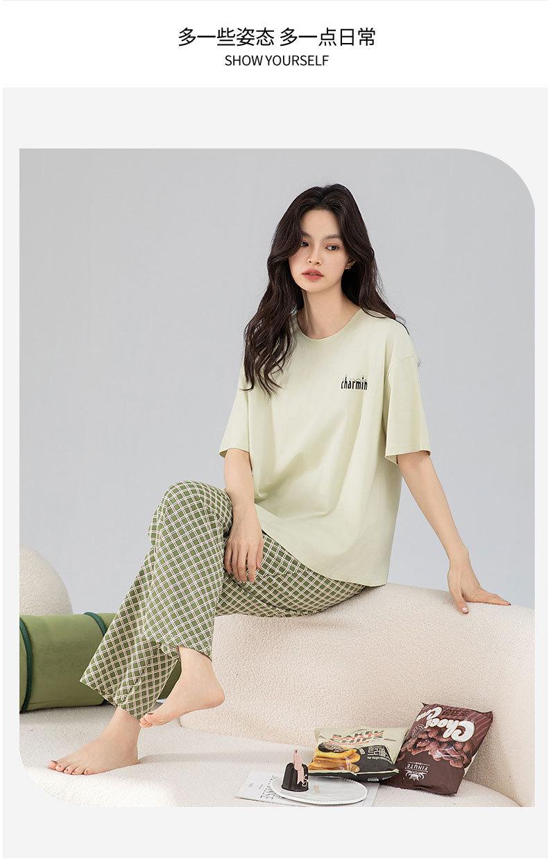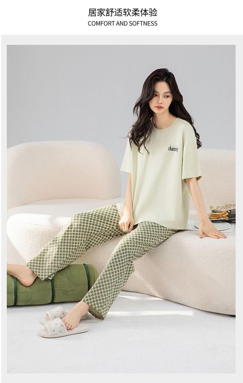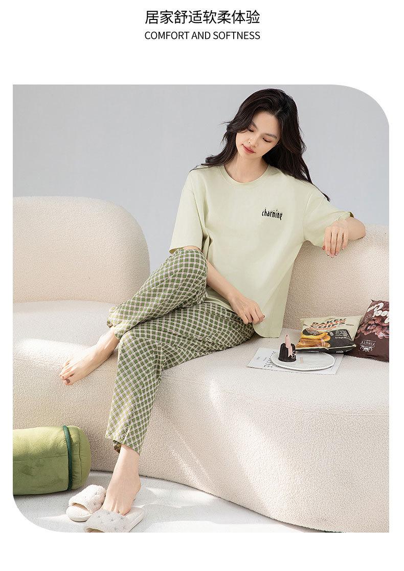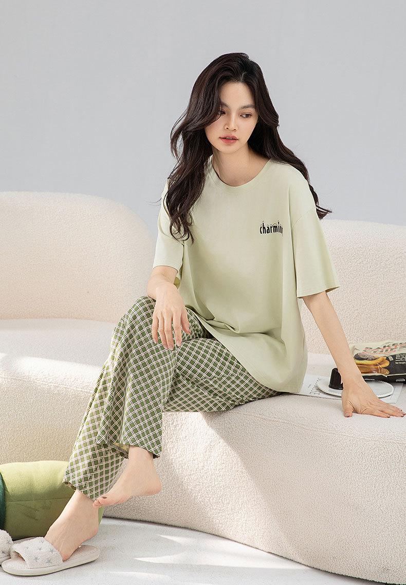 Pijamas de verano de algodón para mujer, pantalones de manga corta, ropa para el hogar, algodón fresco, fino, suave, traje a cuadros, ropa exterior, recién llegado