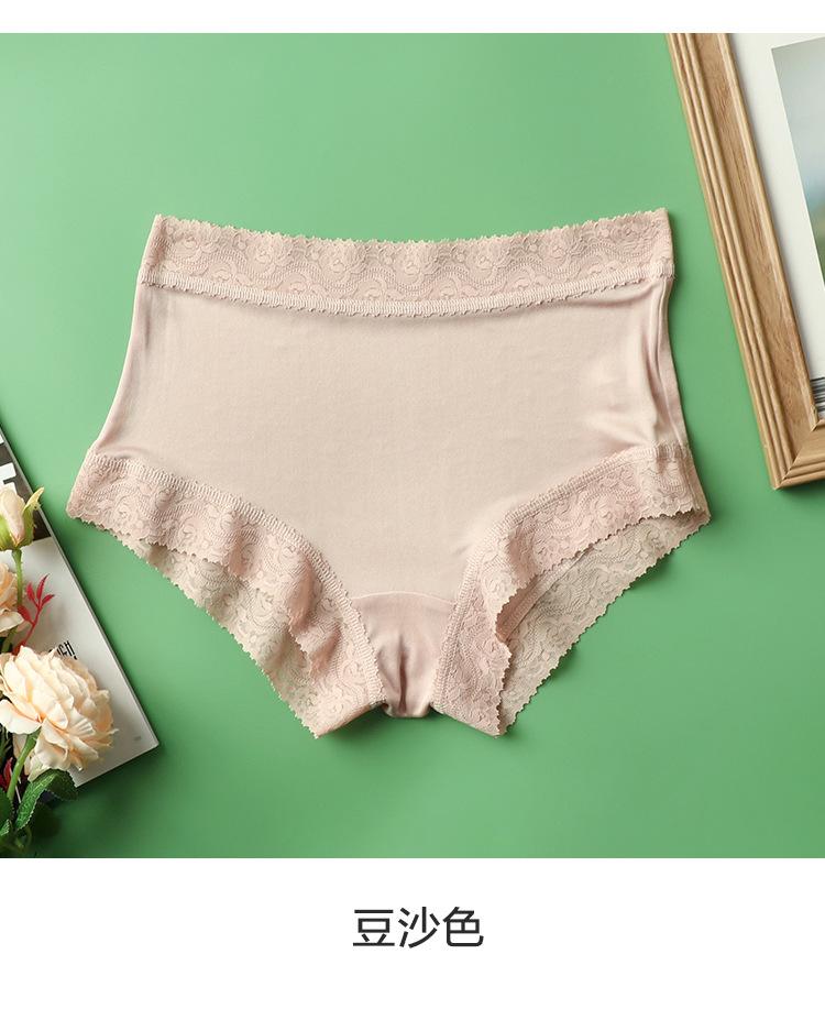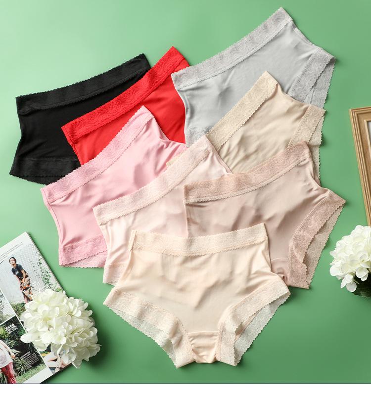 Ropa interior de encaje de seda de cintura baja para mujer Seda de morera tejida talla grande Triángulo Transpirable Sin marcas Shorts Finos de verano