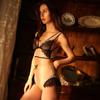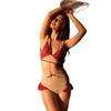 Traje divertido Ropa interior de encaje de tres puntos Tanga libre con entrepierna abierta Tentación sexy Medias de seda negras Ropa interior transparente para mujer