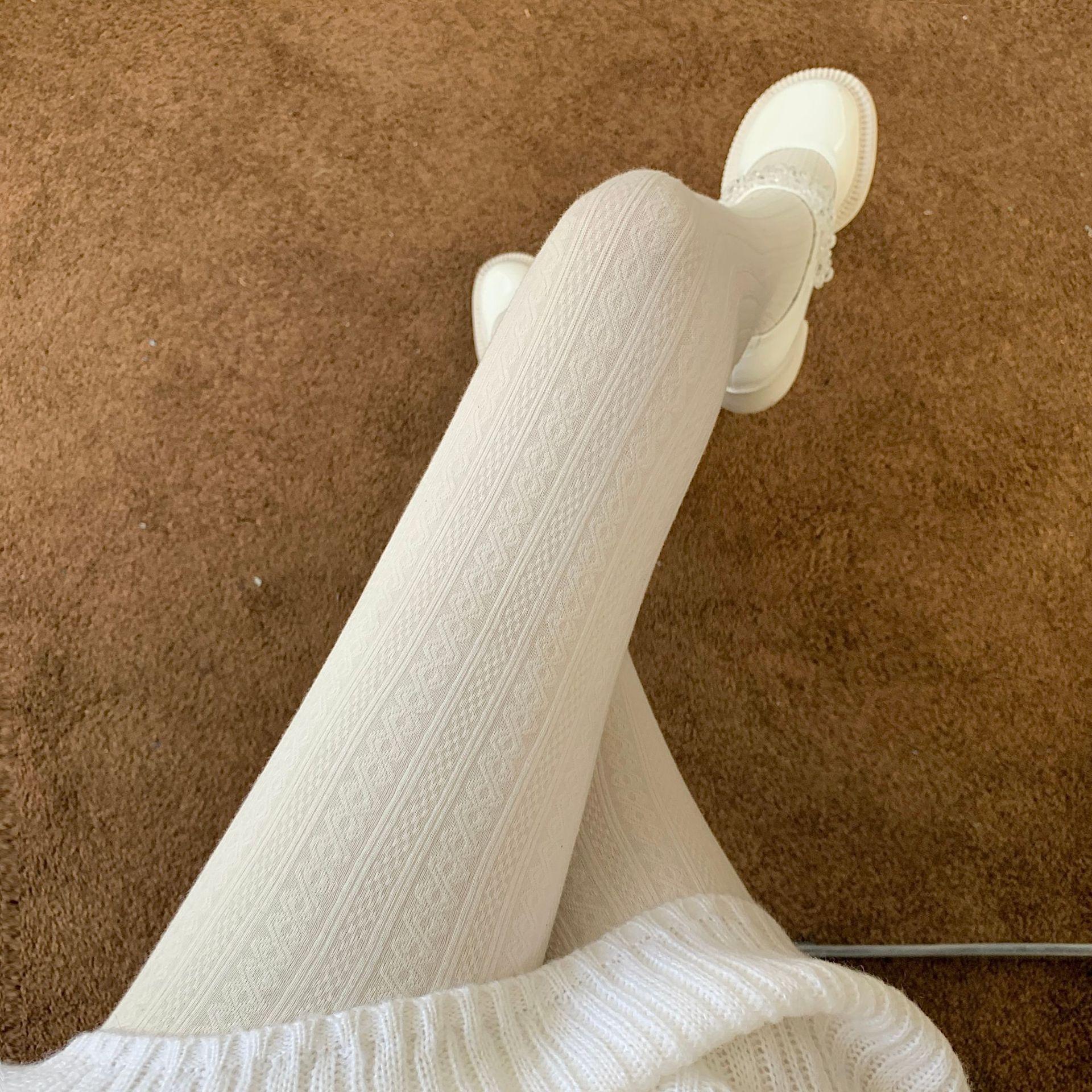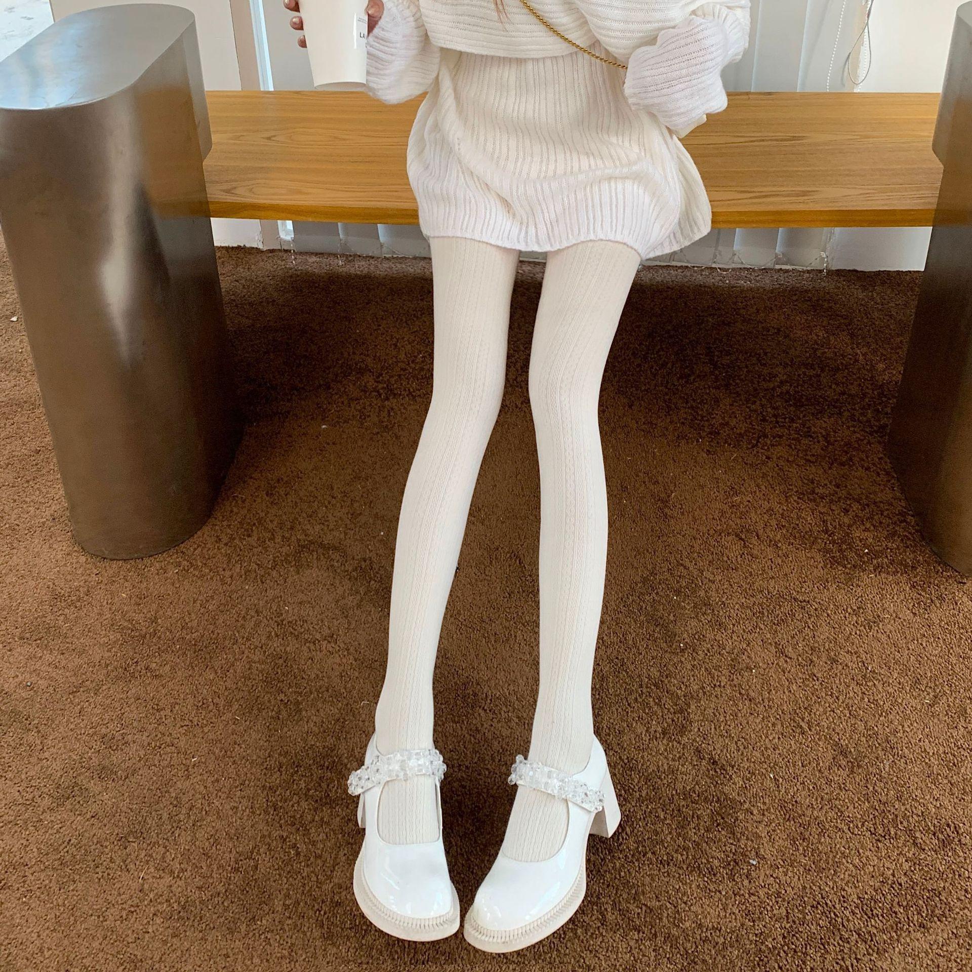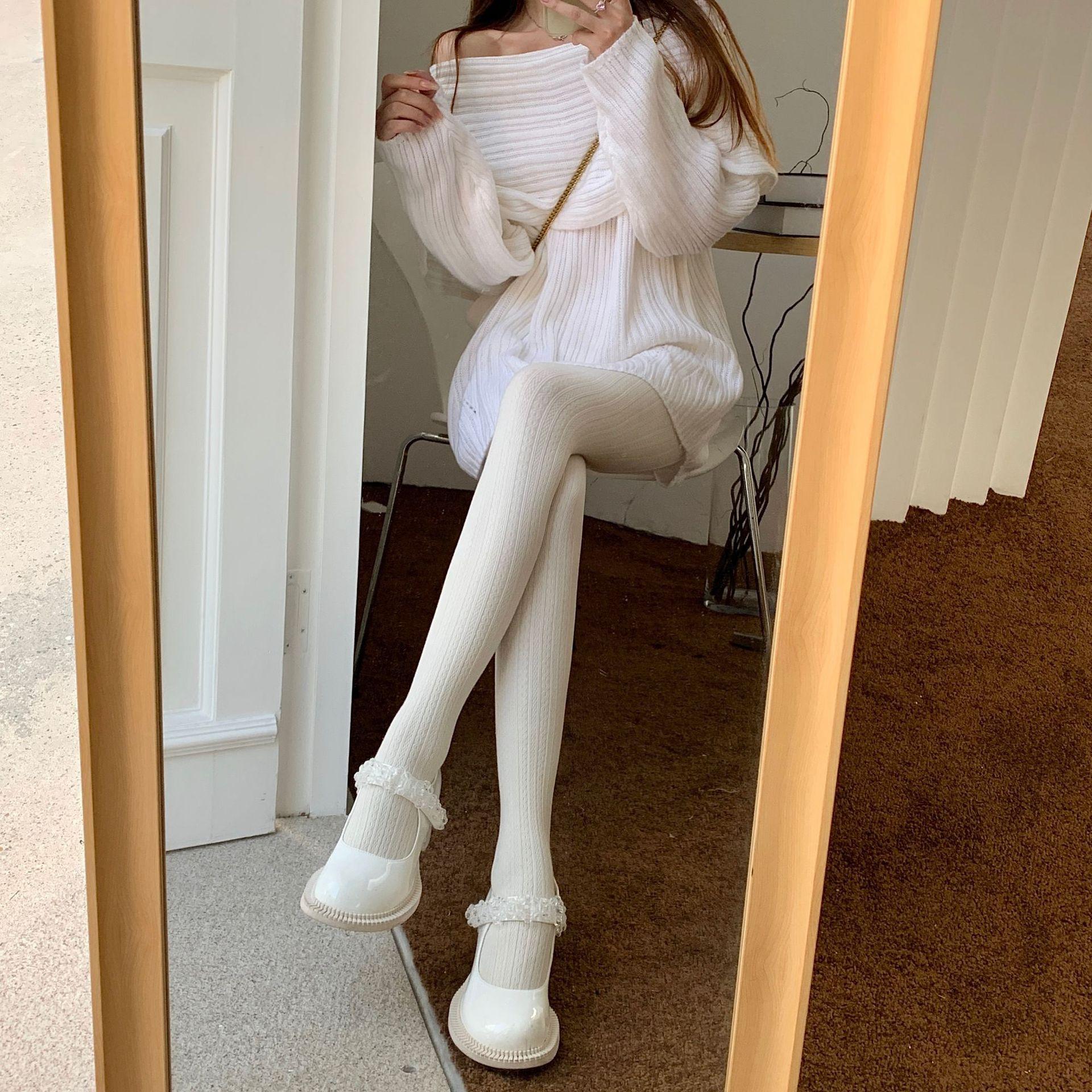 Calcetines japoneses retro de algodón peinado, de punto trenzado, de color blanco avena, con fondo dulce, con forro polar, para otoño e invierno, para mujer