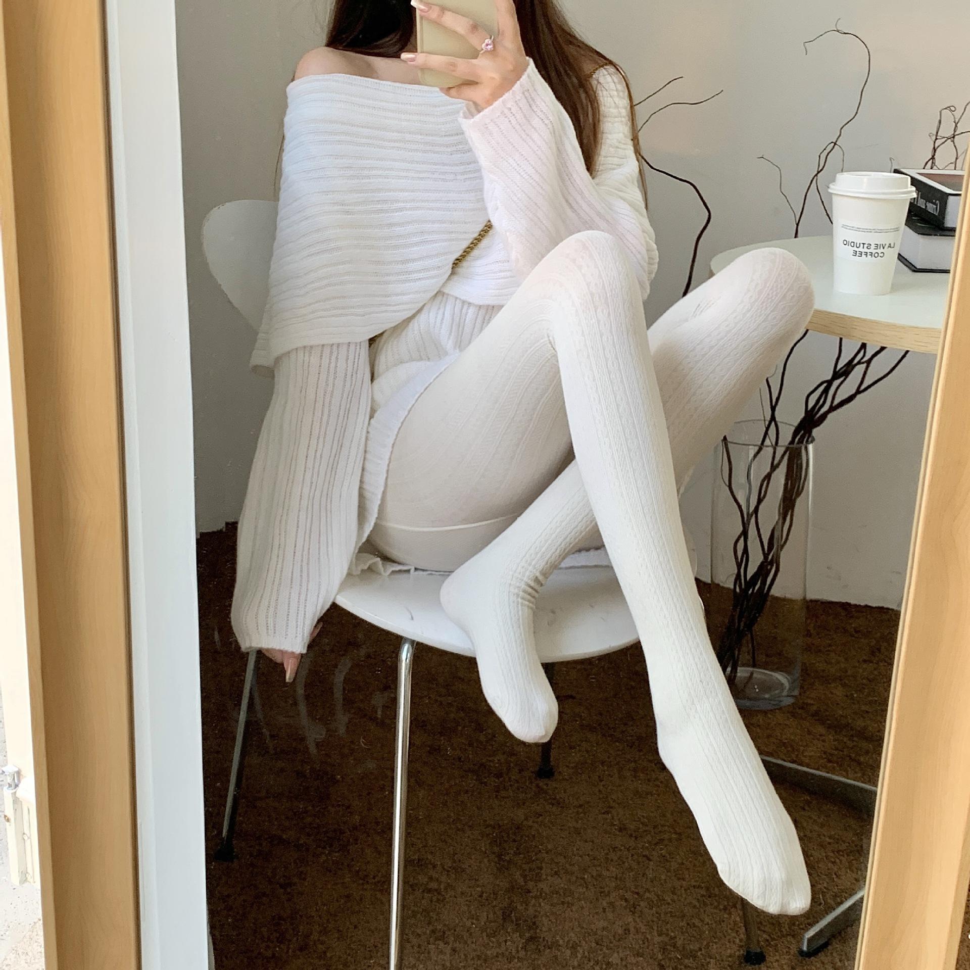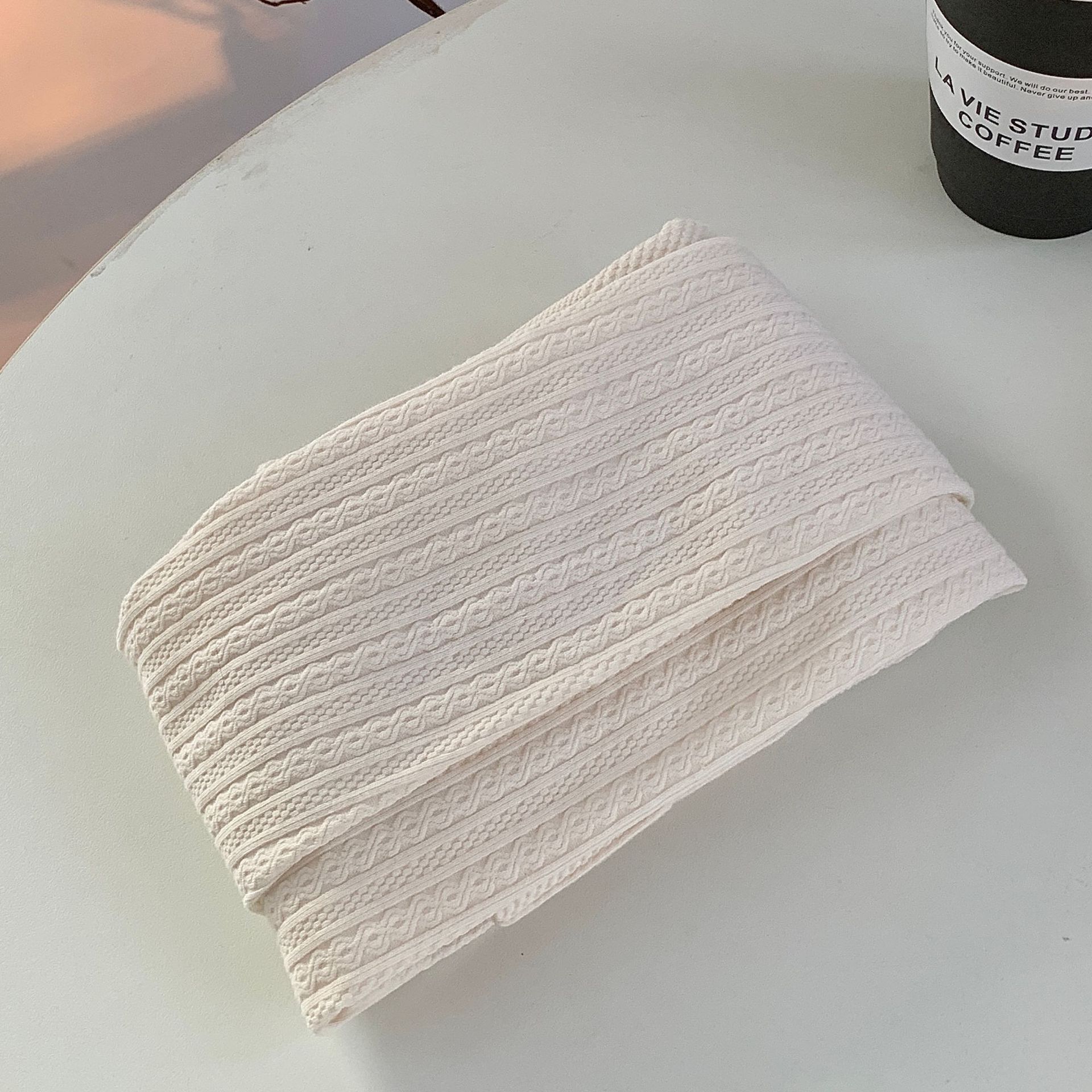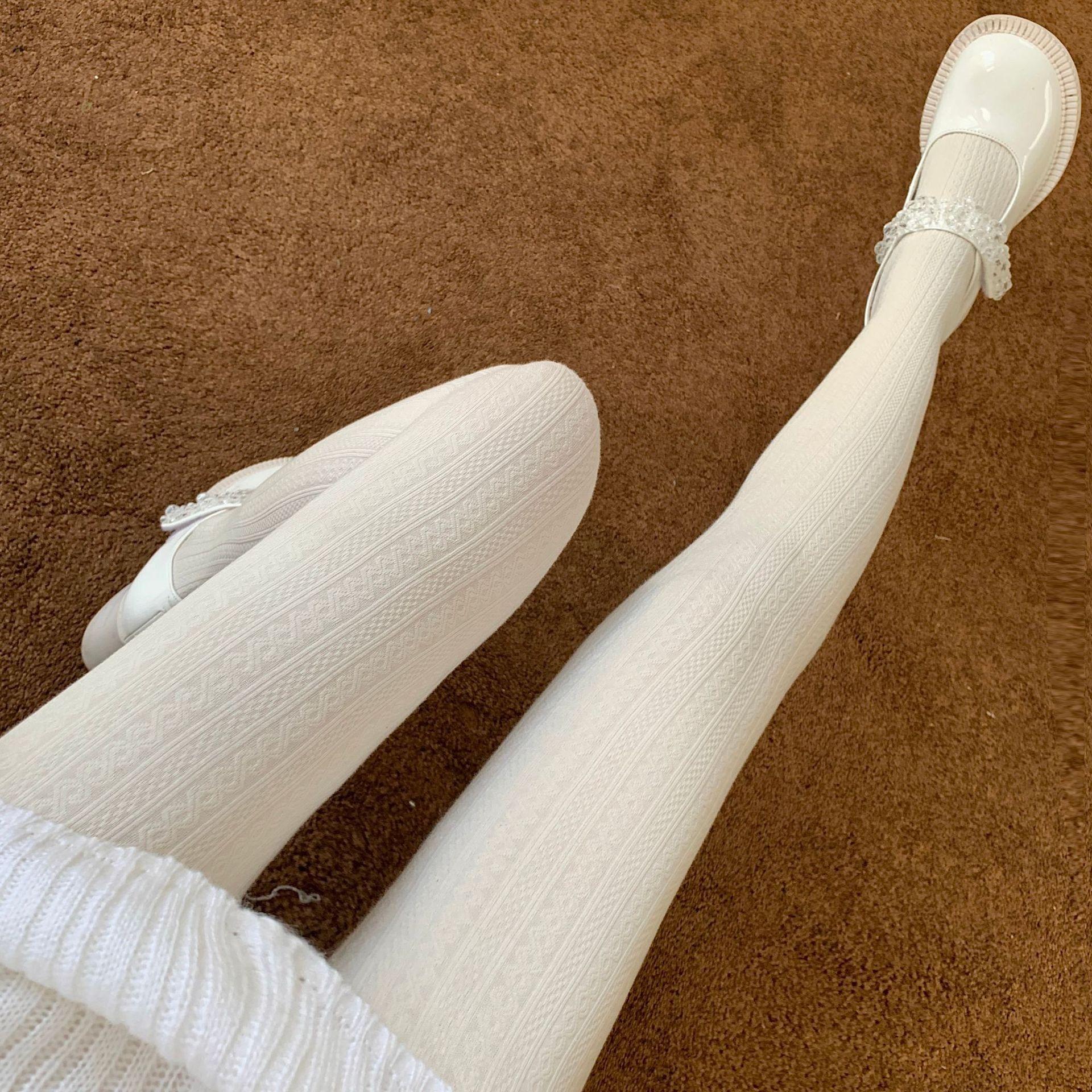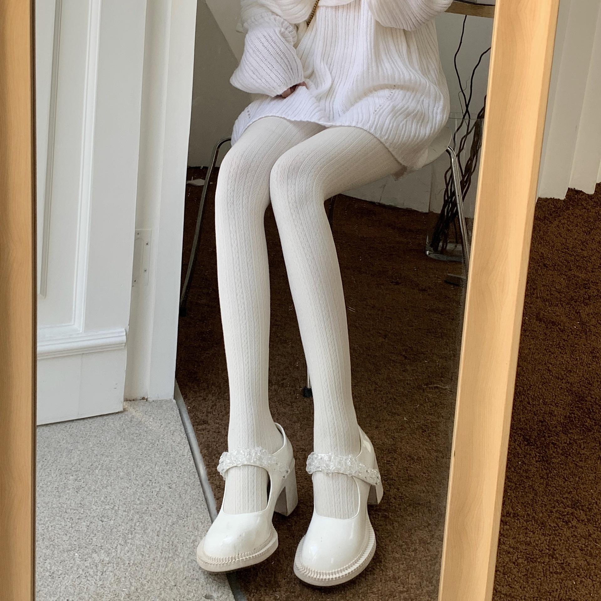 Calcetines japoneses retro de algodón peinado, de punto trenzado, de color blanco avena, con fondo dulce, con forro polar, para otoño e invierno, para mujer
