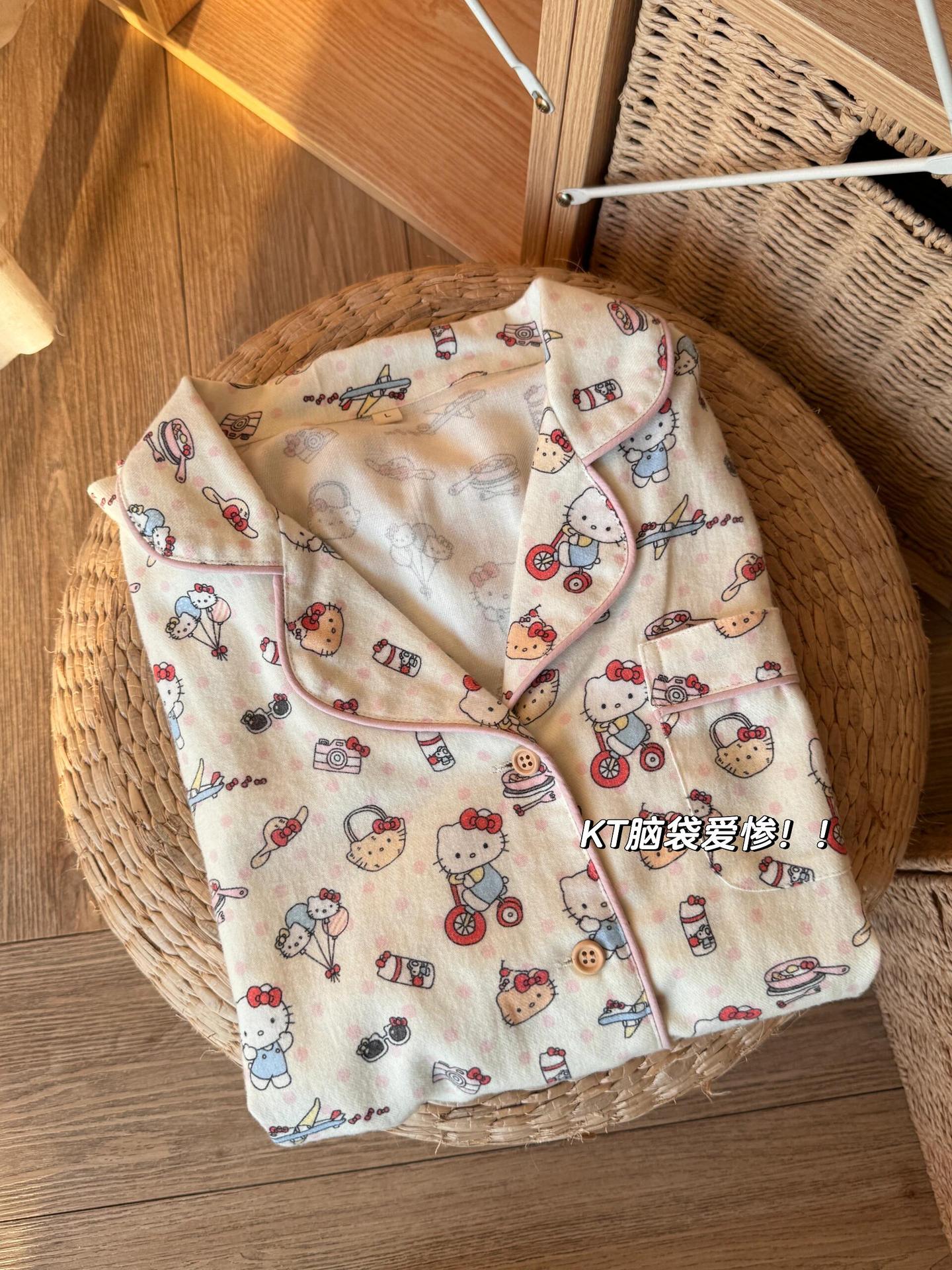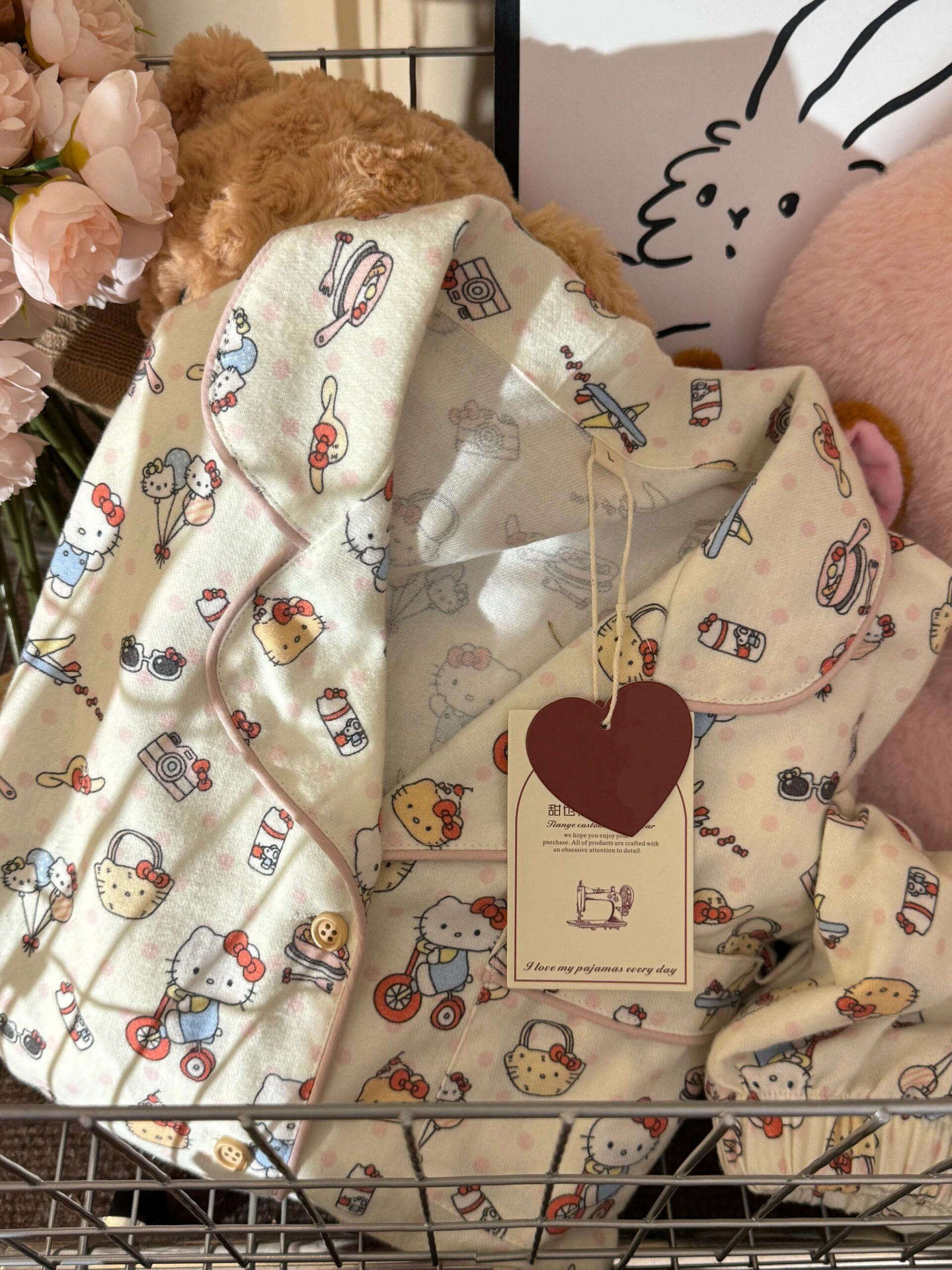 Pijamas con estampado de Hello Kitty para mujer, primavera y otoño 2025, nuevo estilo femenino, pantalones de manga larga, ropa para el hogar.