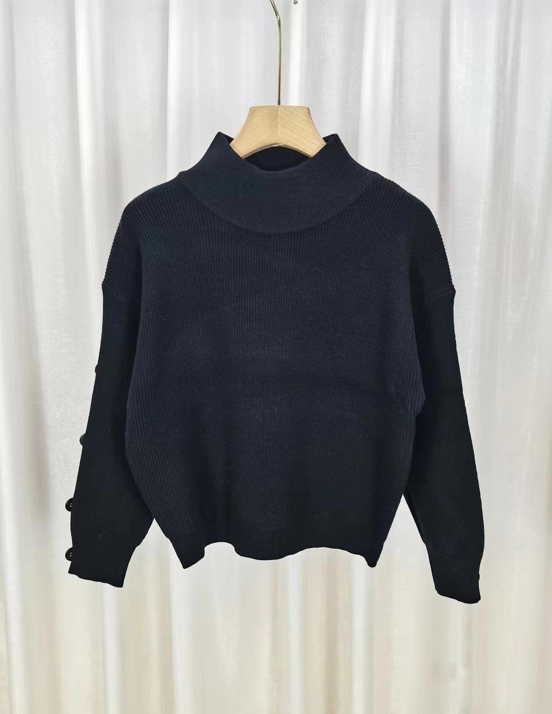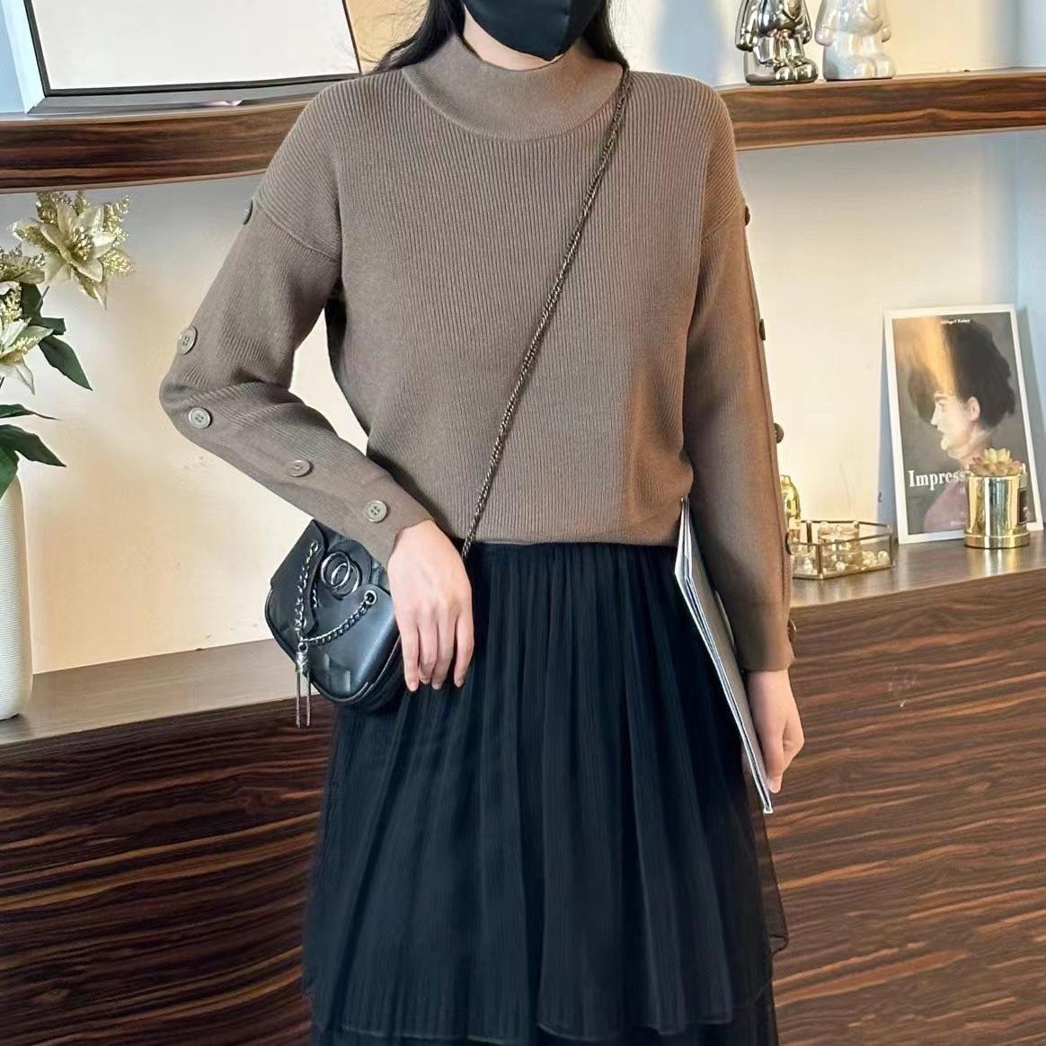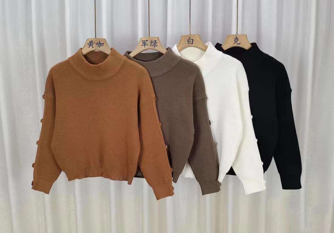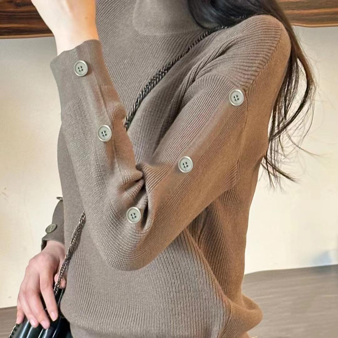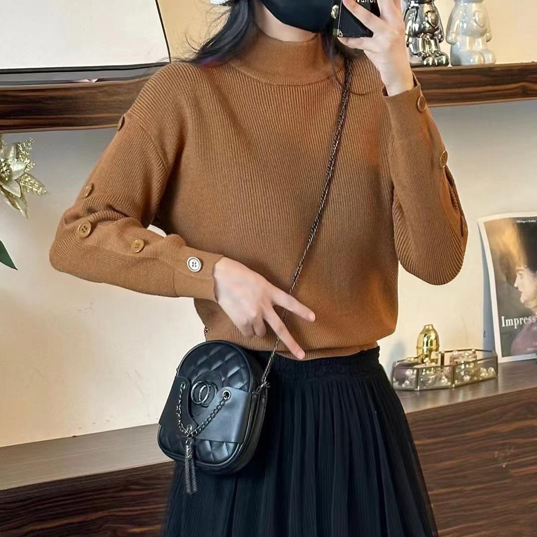 Tejido de Punto Ropa de Punto Nuevo Estilo Transfronterizo Moda Cuello Alto Medio Color Sólido Ropa de Punto Corta Ropa de Punto Versátil para Otoño e Invierno de Mujer