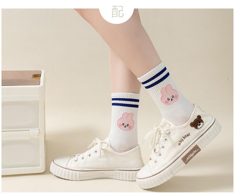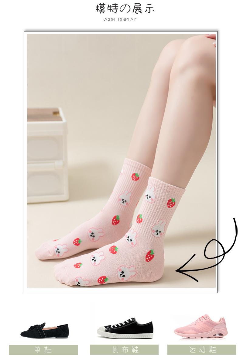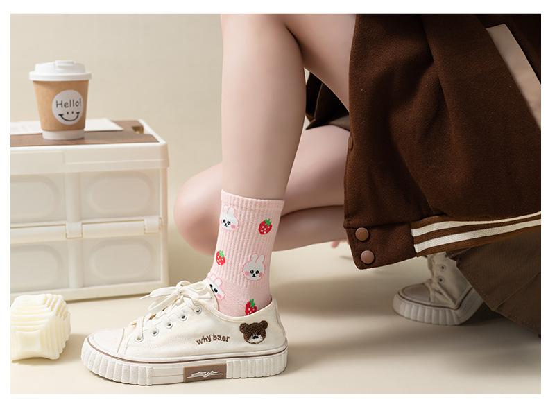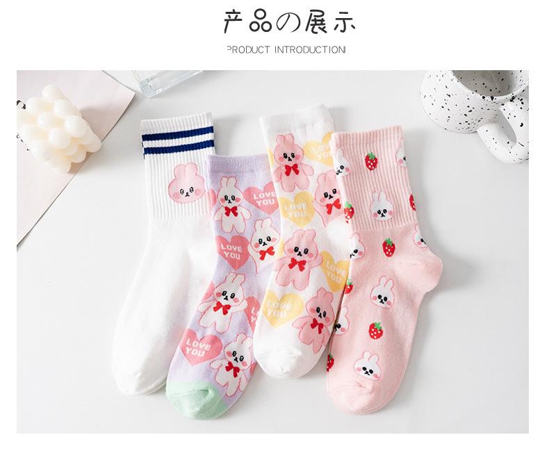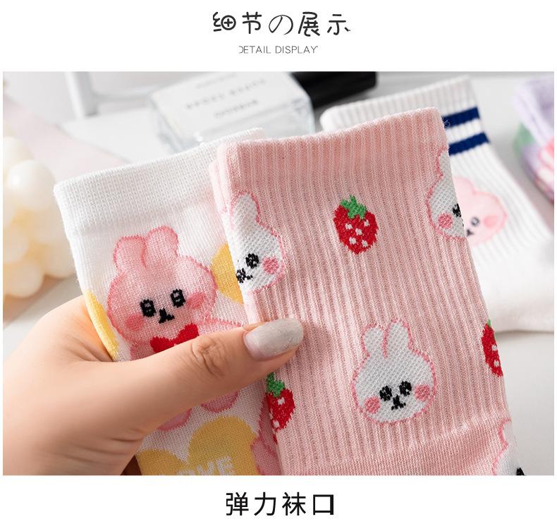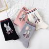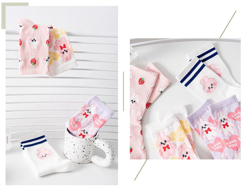 Calcetines de dibujos animados japoneses para mujer, calcetines de media caña de algodón peinado rosa, calcetines dulces y lindos de conejo, medias transpirables que absorben la humedad