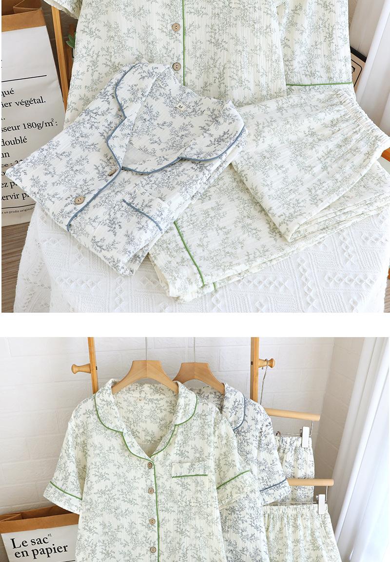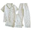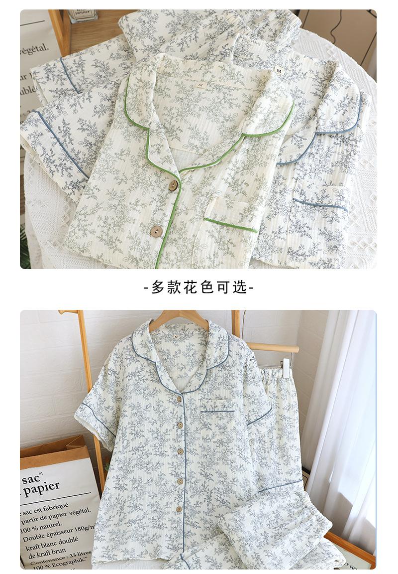 Compra Pijama Nuevo de Algodón Puro Gasa de Doble Capa Estilo Coreano Floral Lazy Manga Corta Pantalón Traje Niñas Cárdigan Ropa para el Hogar al por mayor en Joom.pro