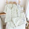 Pijama Nuevo de Algodón Puro Gasa de Doble Capa Estilo Coreano Floral Lazy Manga Corta Pantalón Traje Niñas Cárdigan Ropa para el Hogar