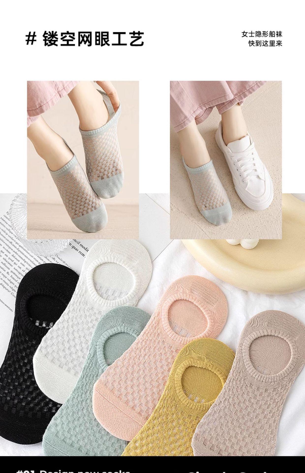 Calcetines cortos de primavera y verano para mujer, finos, de boca baja, invisibles, de malla, transpirables, de silicona, antideslizantes, para barco.