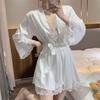 Pijama de encaje blanco para mujer, verano 2025, nuevo camisón sexy de tirantes, traje de dos piezas
