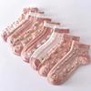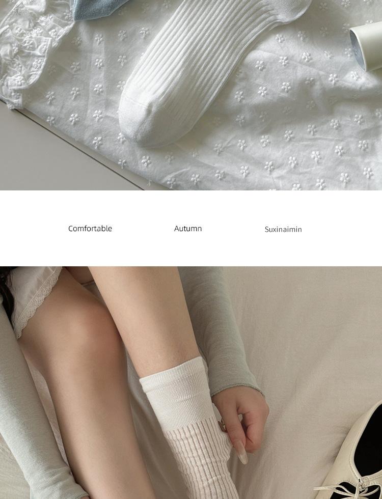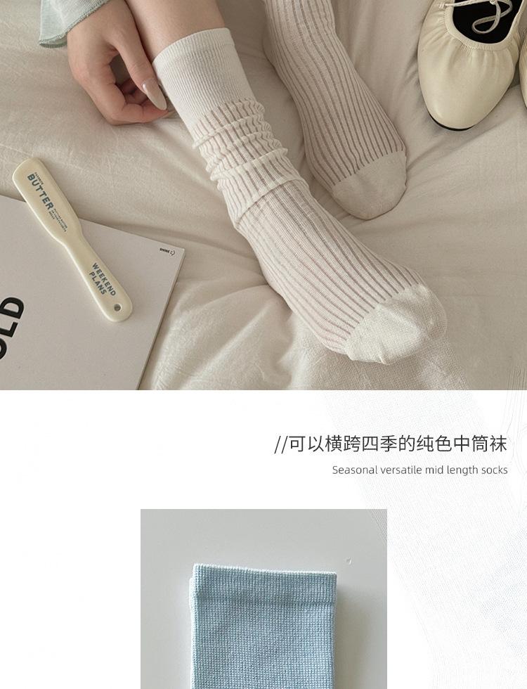 Calcetines dulces de estilo japonés de primavera y verano para mujer, calcetines finos apilados con rayas verticales de primavera y verano, medias de algodón estilo Jk sin hueso