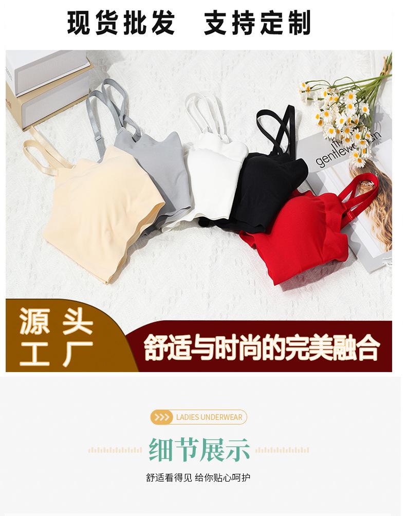 Camisola de seda de hielo sin marcas, tirantes ajustables para los hombros, base con anillos de luz anti-corro, top de tubo, hermoso sujetador con espalda, ropa interior para mujer
