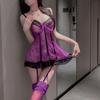 Starry sky purple lace suspender nightgown, Tender pink lace suspender nightgown, Black purple