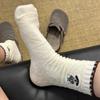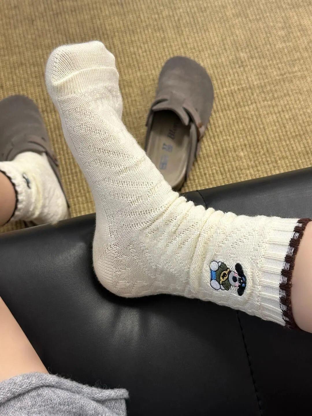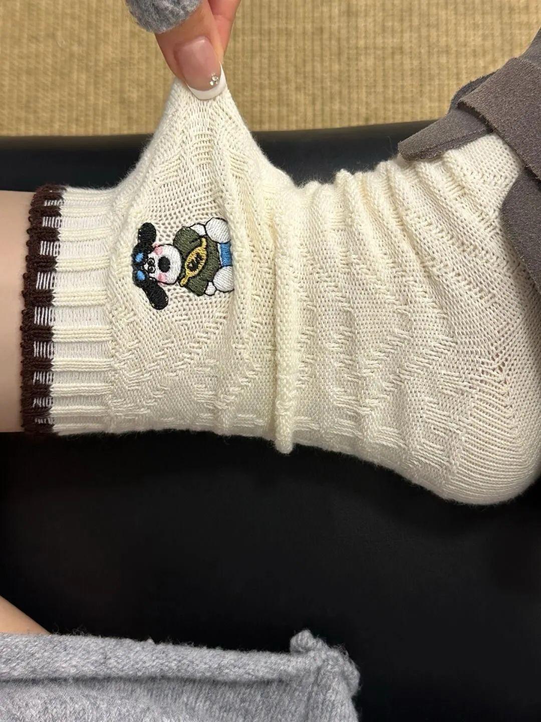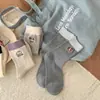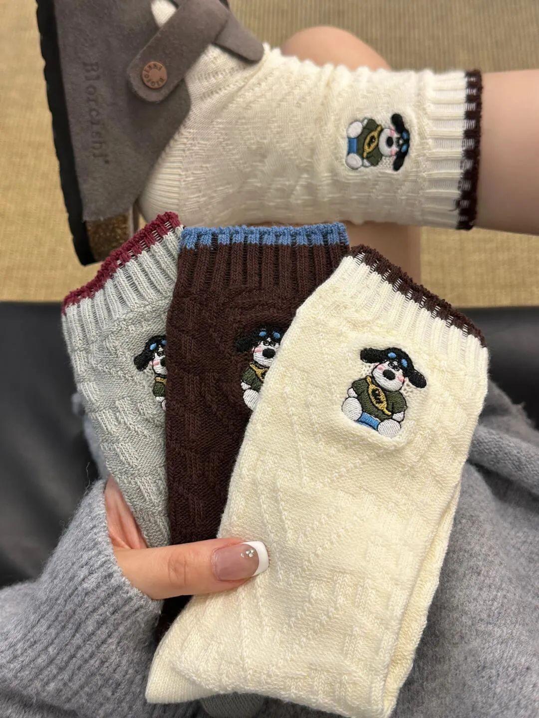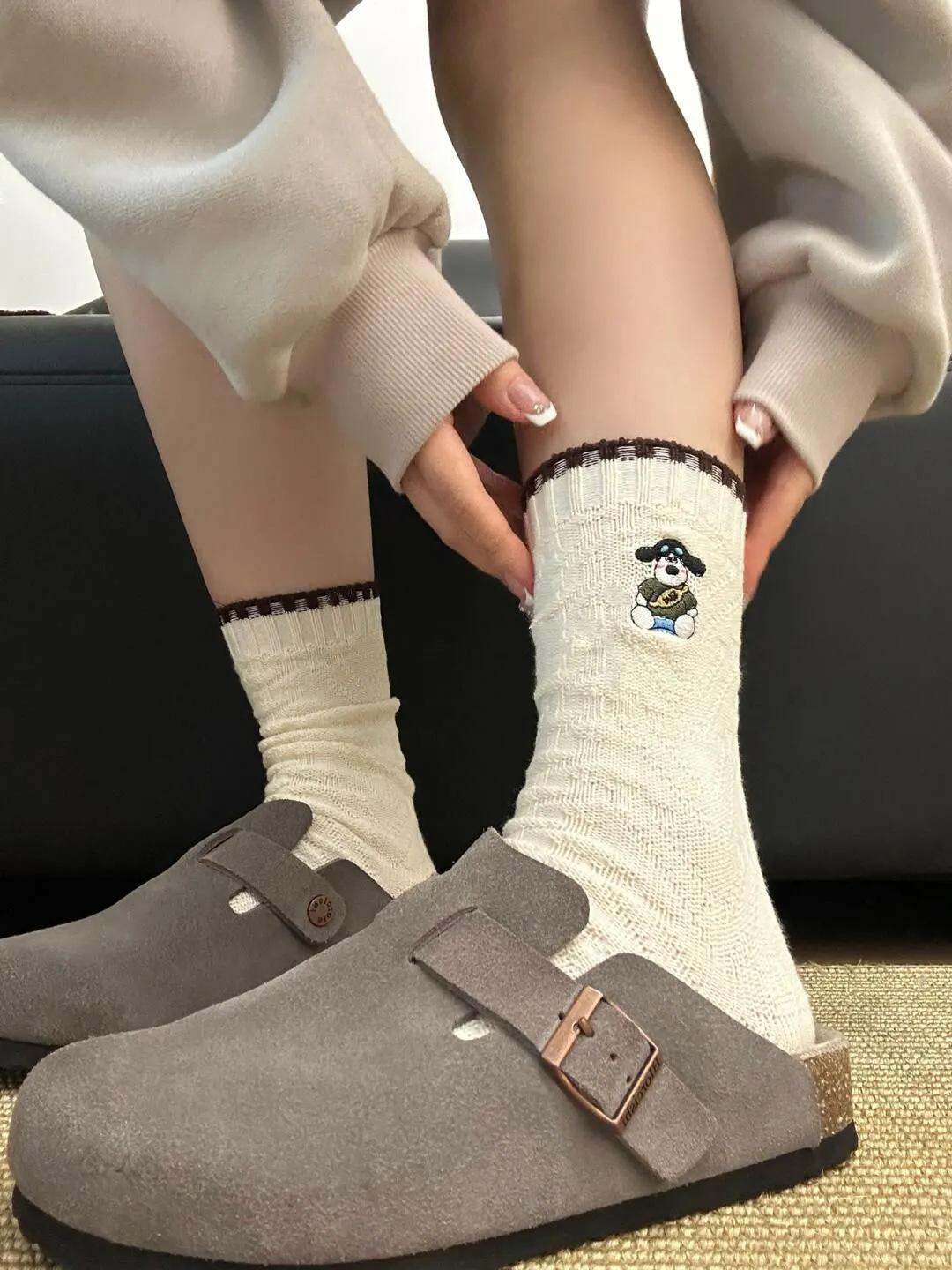 Calcetines para Mujer Estilo Coreano Ins Trendy Lindo Cachorro de Dibujos Animados Calcetines Medios Otoño e Invierno Vintage Color de Contraste Acanalados Apilados