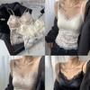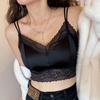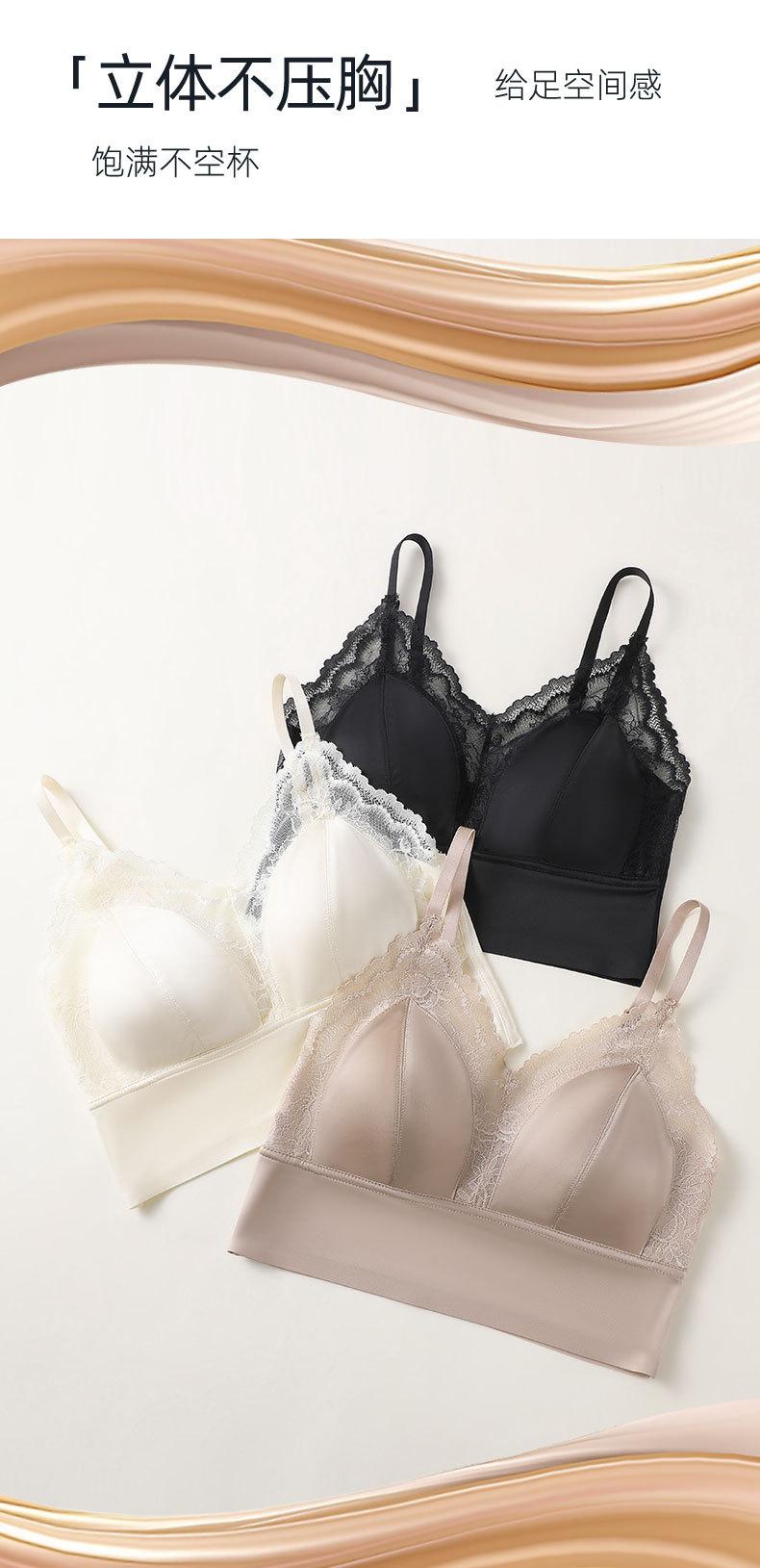 Ropa Interior de Encaje con Puntadas de Satén Francés para Mujer Copa Triangular Fija Transpirable Cómoda Recogida Camisola Interior Chaleco