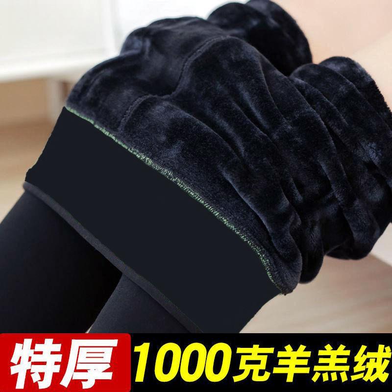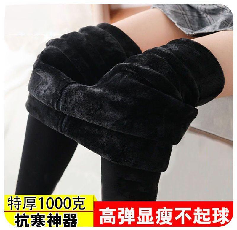 Pantalones negros de algodón cálidos extra gruesos para mujer, leggings de otoño e invierno, forro polar de cordero ultra grueso, resistente al frío, forro polar de una pieza, ropa exterior gruesa, adelgazante